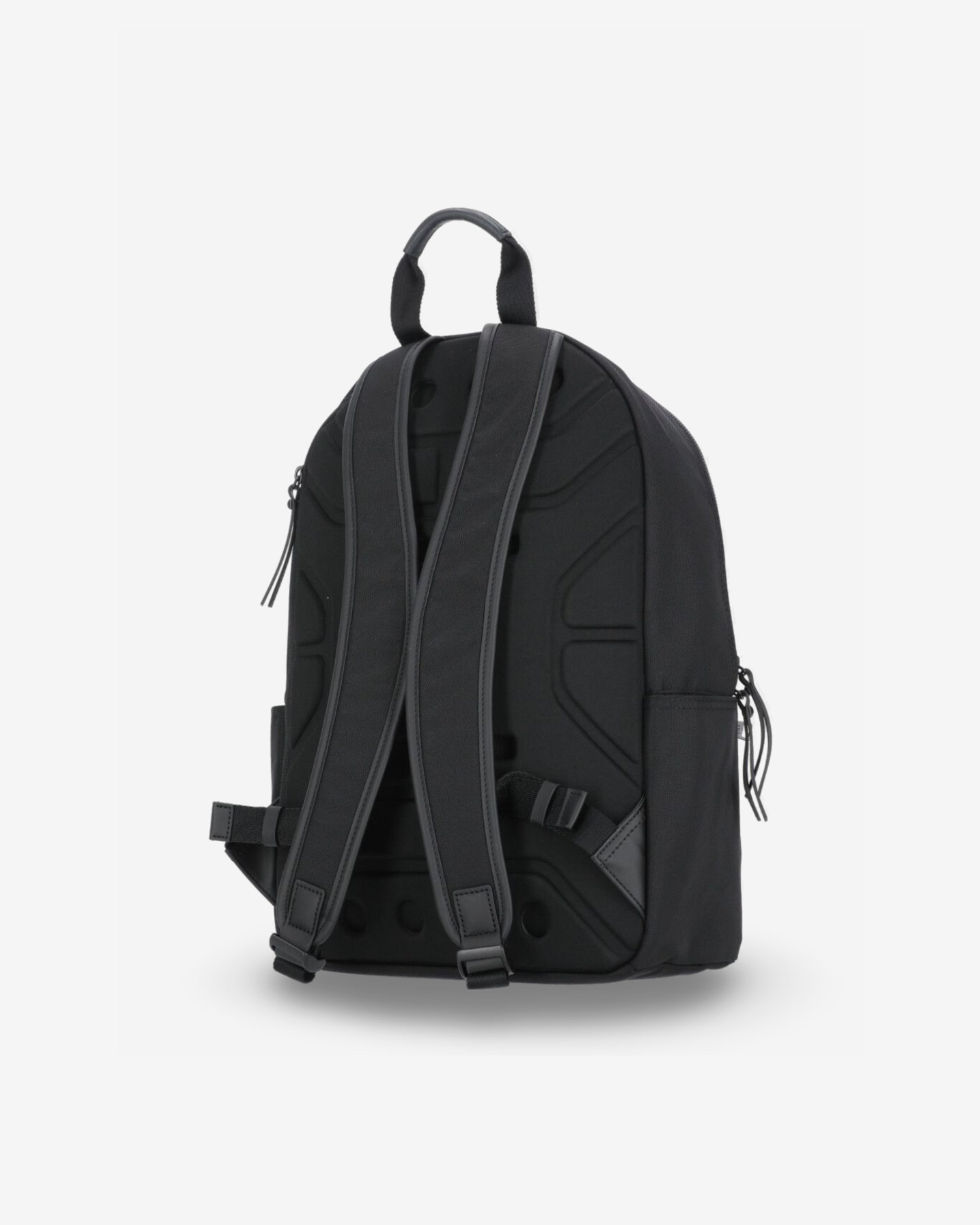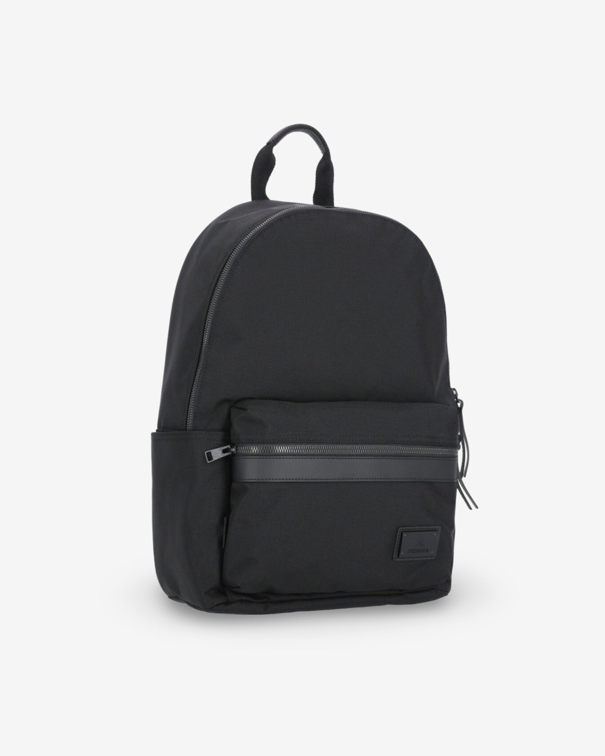 A capacious and versatile model made of premium nylon gabardine with anti-fray and water-repellent treatment. Padded EVA shoulder straps for added comfort. Waterproof front pockets with calfskin leather trim and matte metal closures.