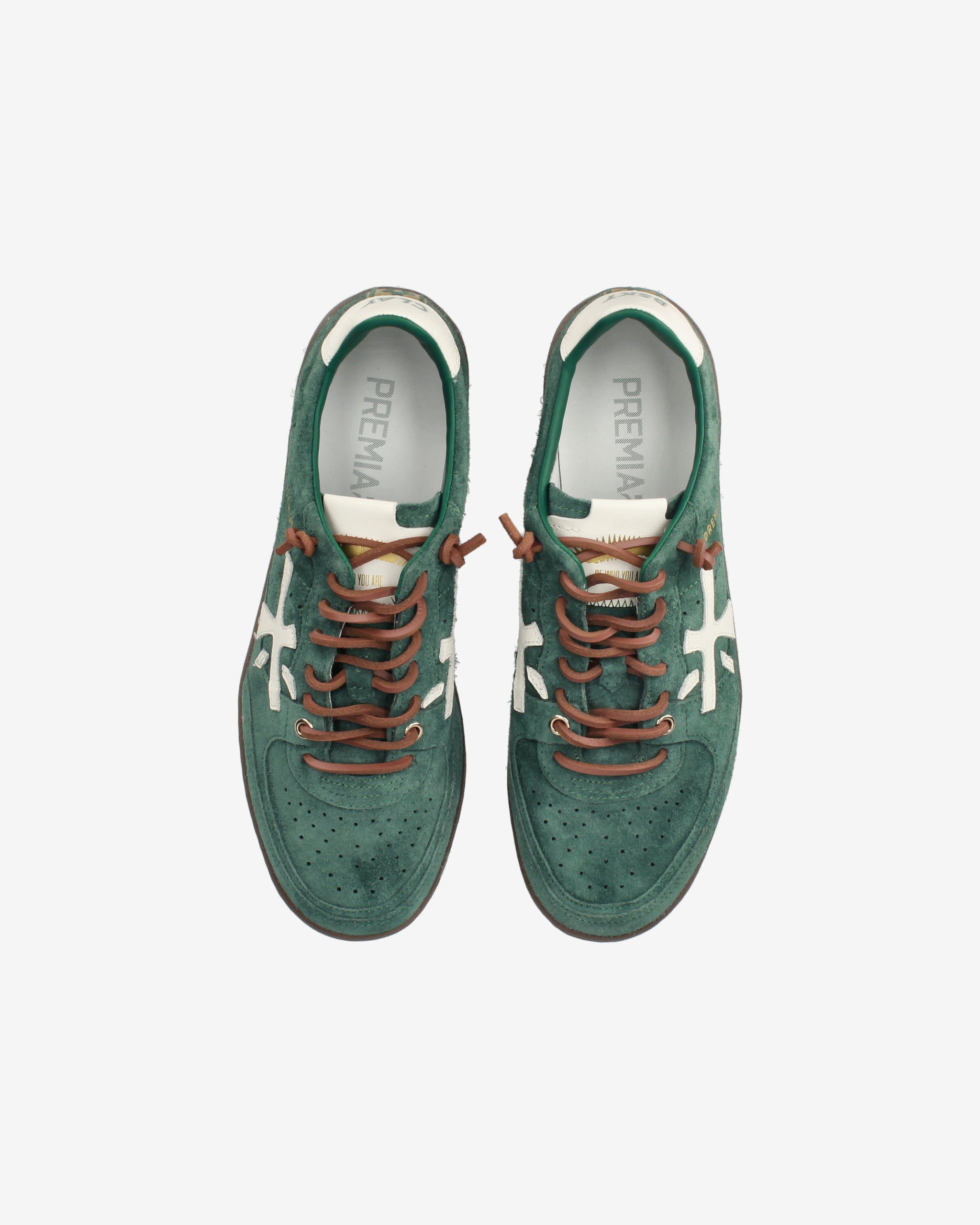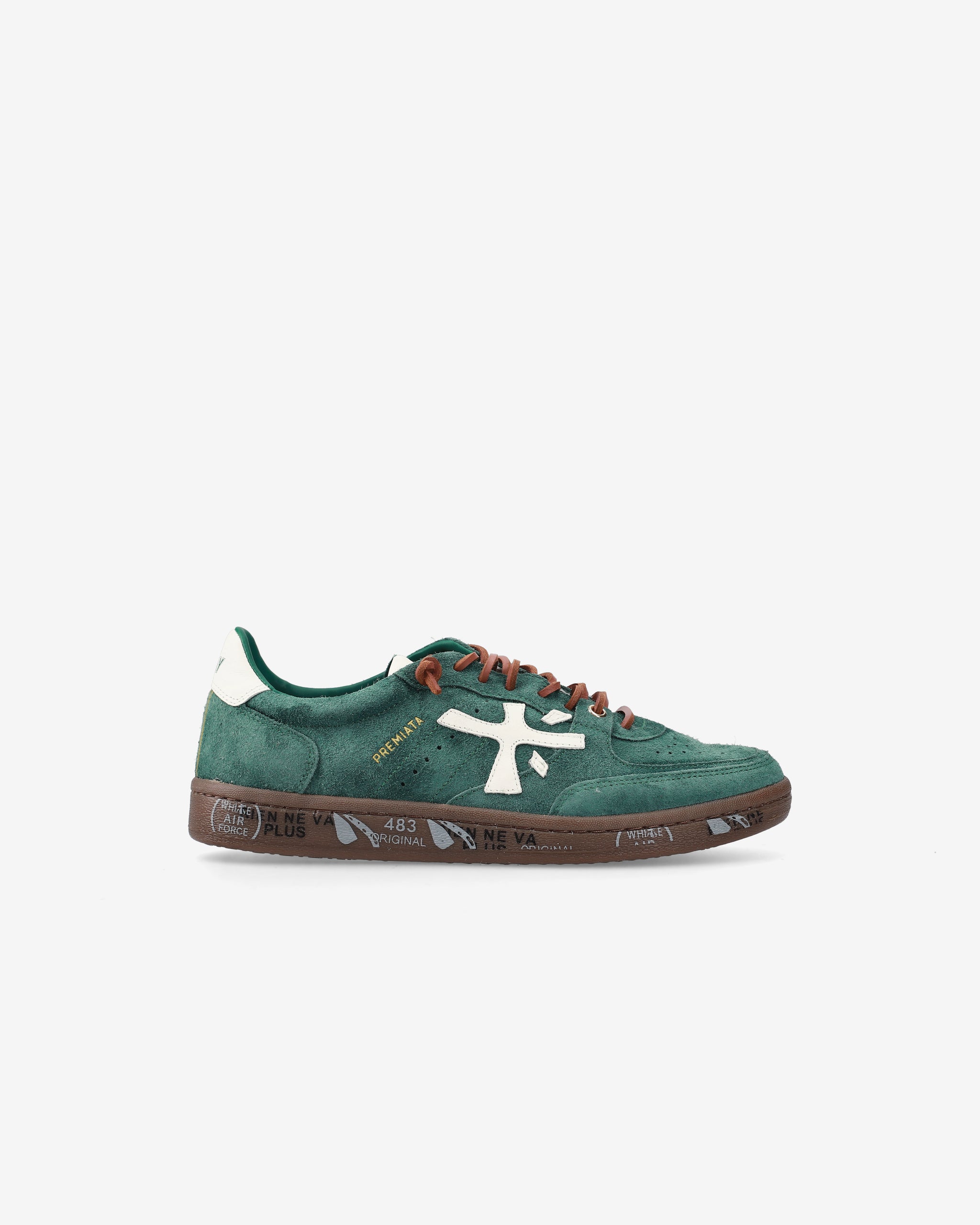 Vintage aesthetic and contemporary spirit. This sneaker combines essential lines and bold details, such as the oversized side logo and the Premiata custom sole. A model designed for those who want to stand out, without sacrificing everyday versatility.