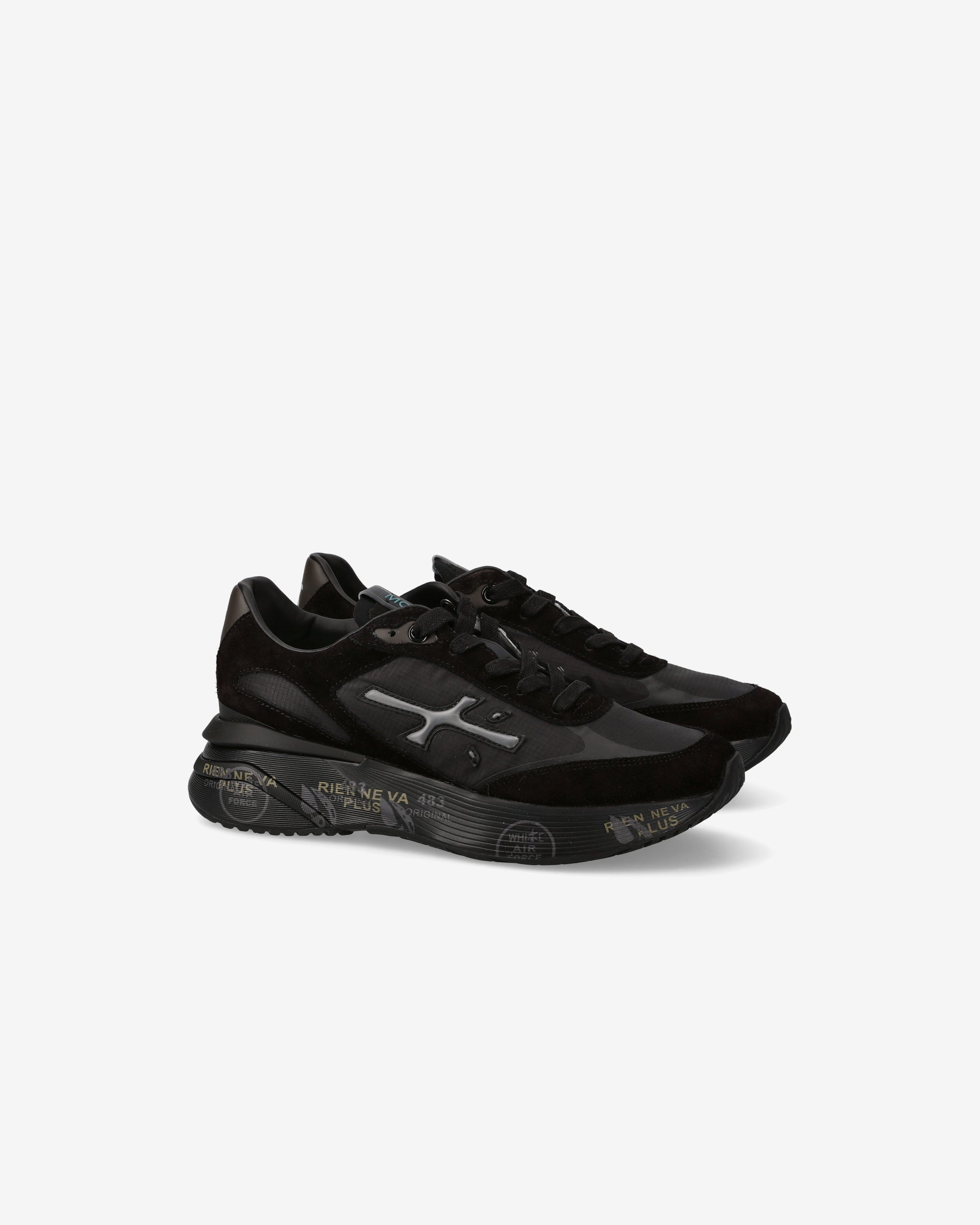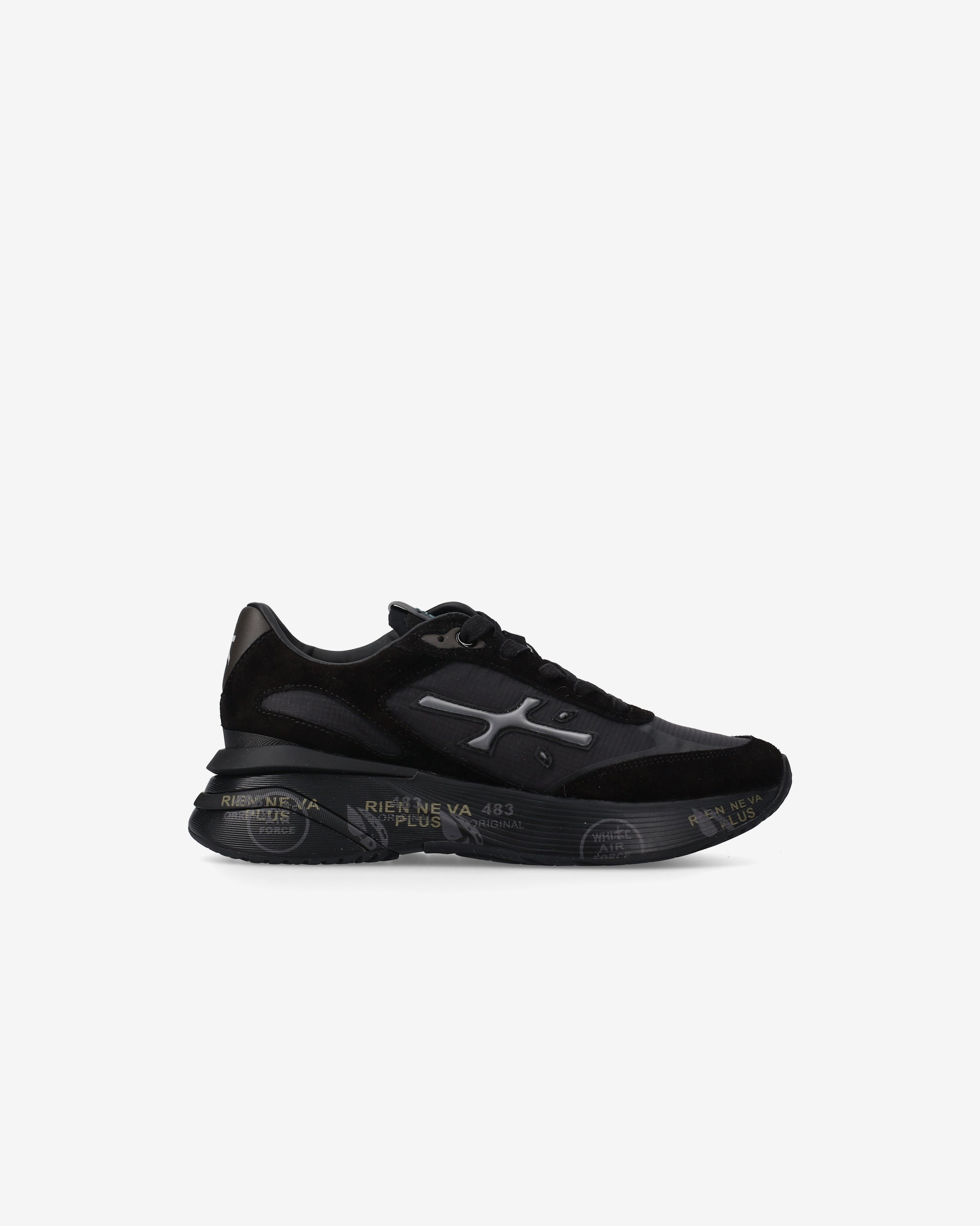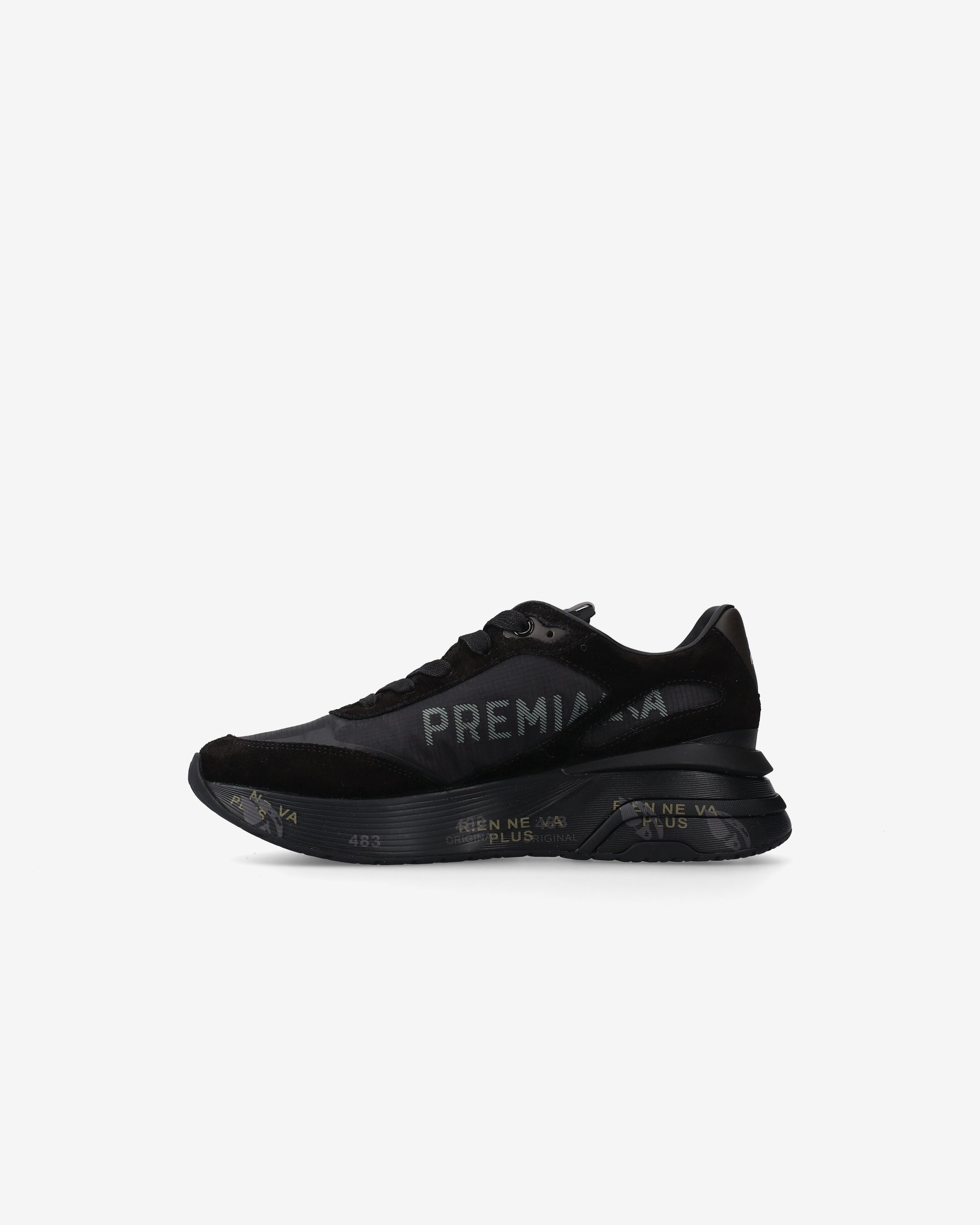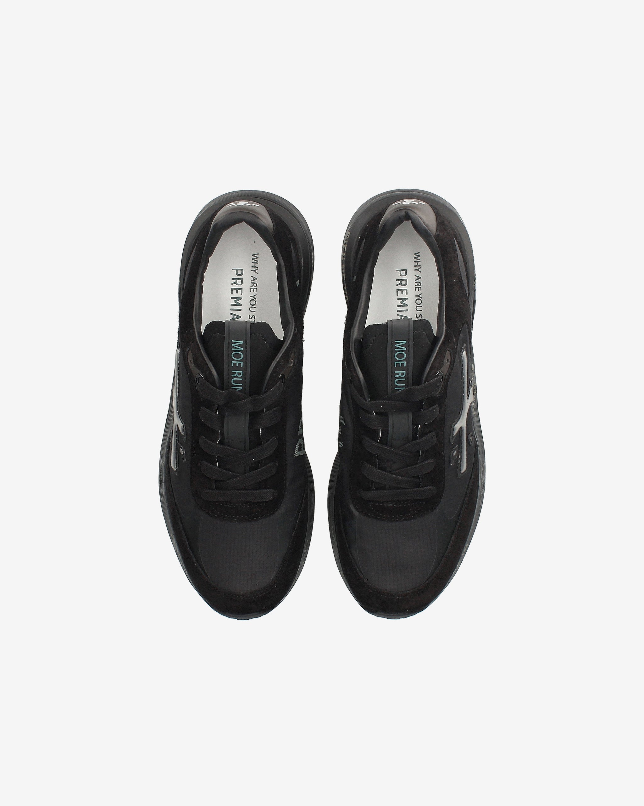 Designed to impress. The Moerun is based on the lightness of movement, stability and cushioning sensation provided by the innovation of the bottom. The new silhouette is rich in details: logo on the outer side, PREMIATA lettering on the inner side, and model name on the label.