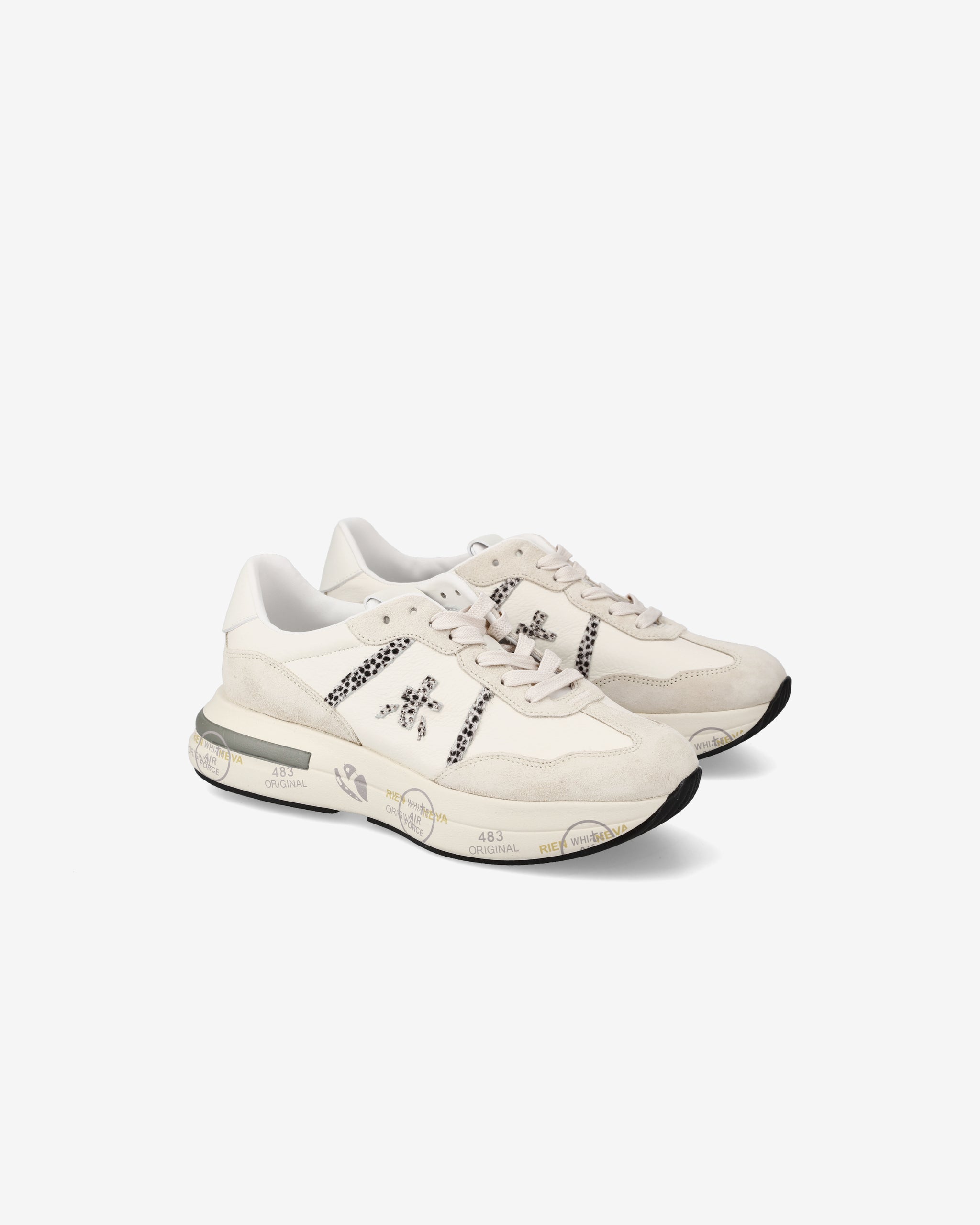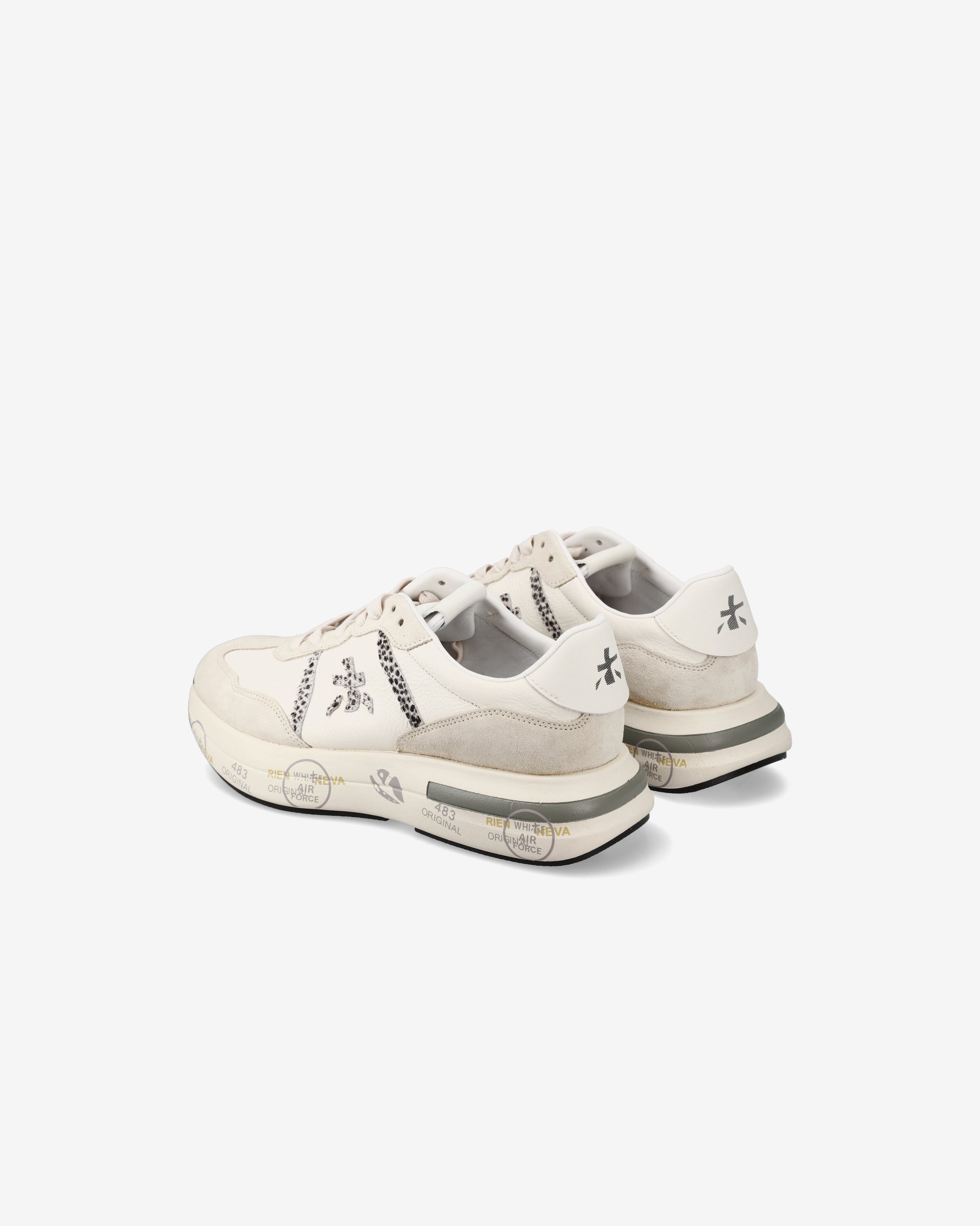 Premiata sneaker in beige and off-white hues with suede and fabric upper.Side logo and sole with distinctive brand stamps.Clean and versatile design, ideal for a refined casual look.