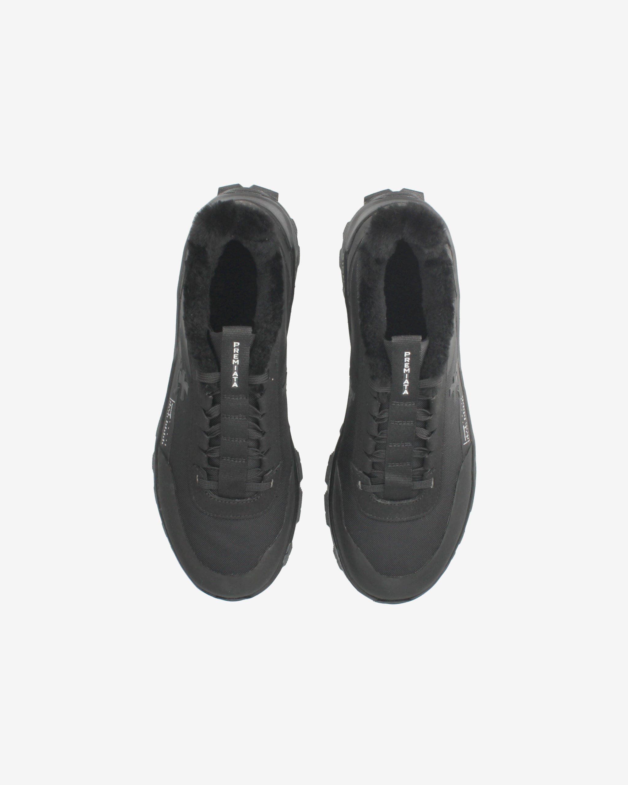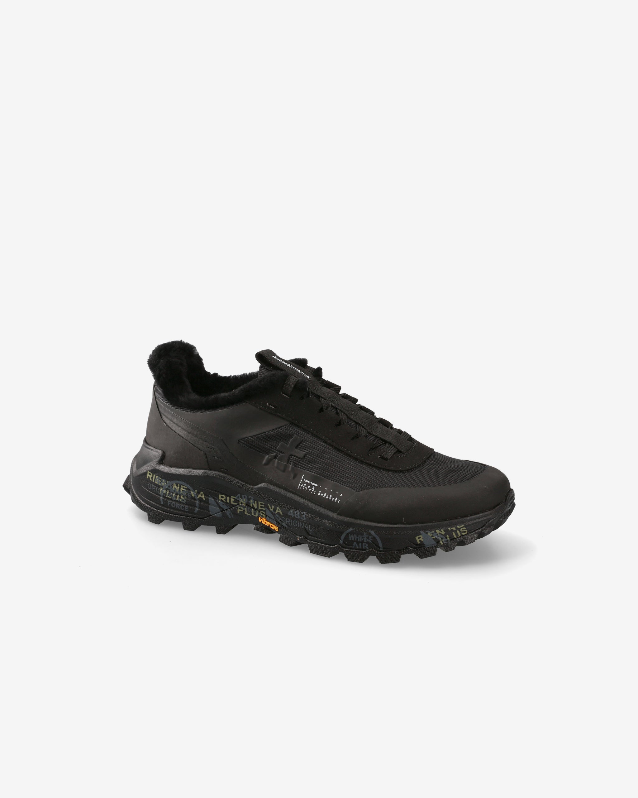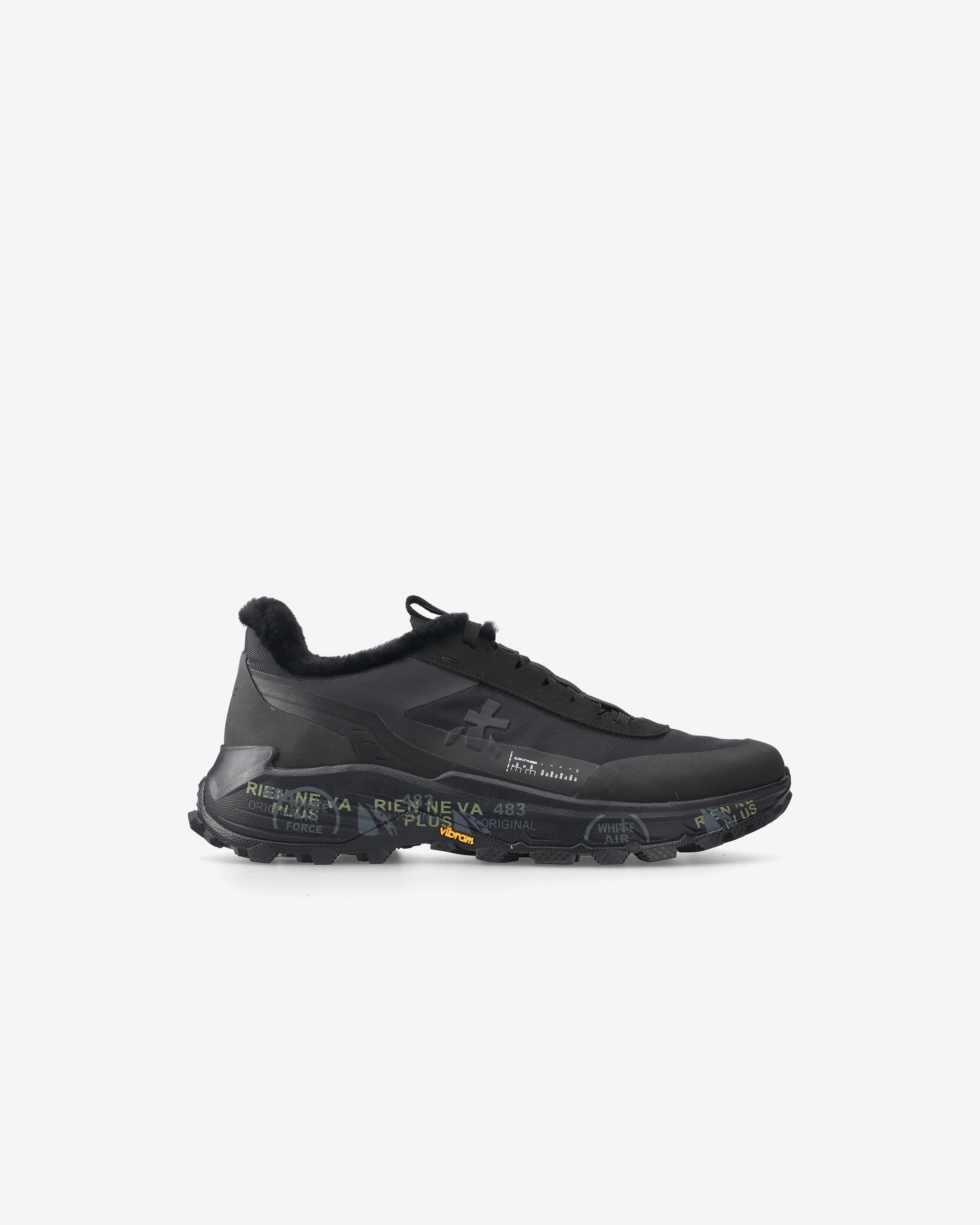 A sharp-looking hiking shoe designed for those seeking style and comfort even in outdoor adventures. The sheepskin lining provides a warm and soft feel, while the sole with distinctive lettering adds an original touch to the design.