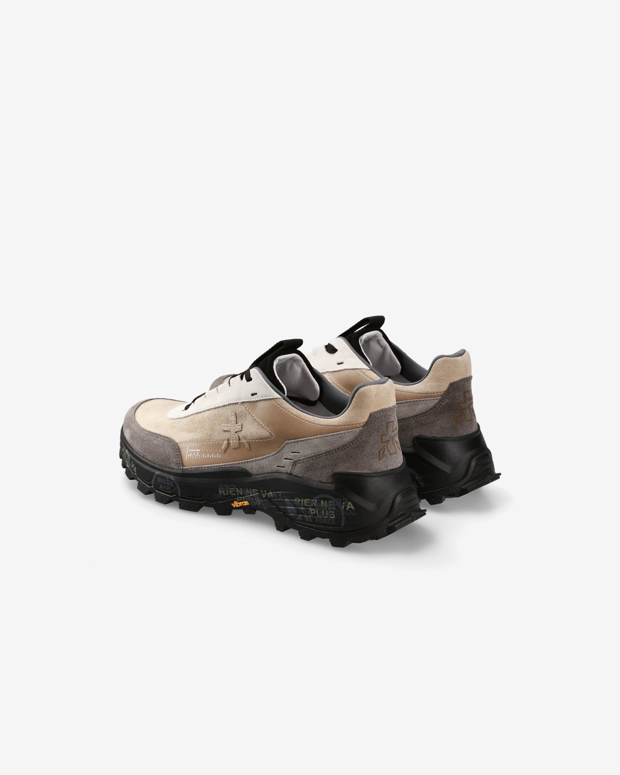 This sneaker combines style and functionality, designed for hiking and outdoor activities. The contrast between beige and black enhances the design, while the decorated sole gives a distinctive and dynamic touch.