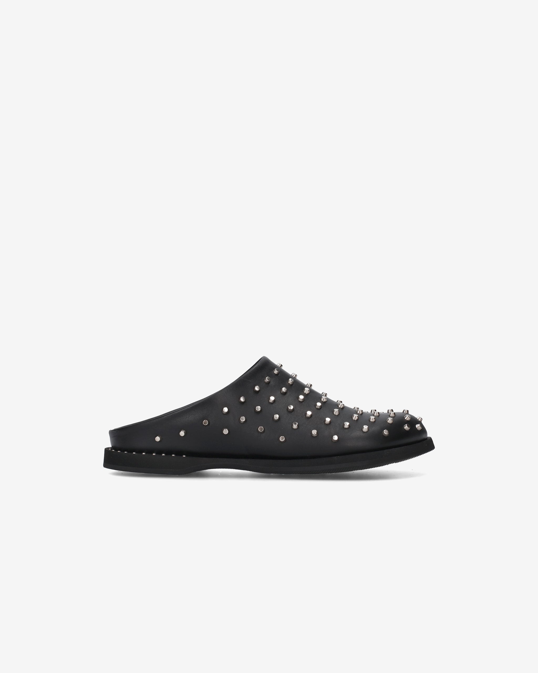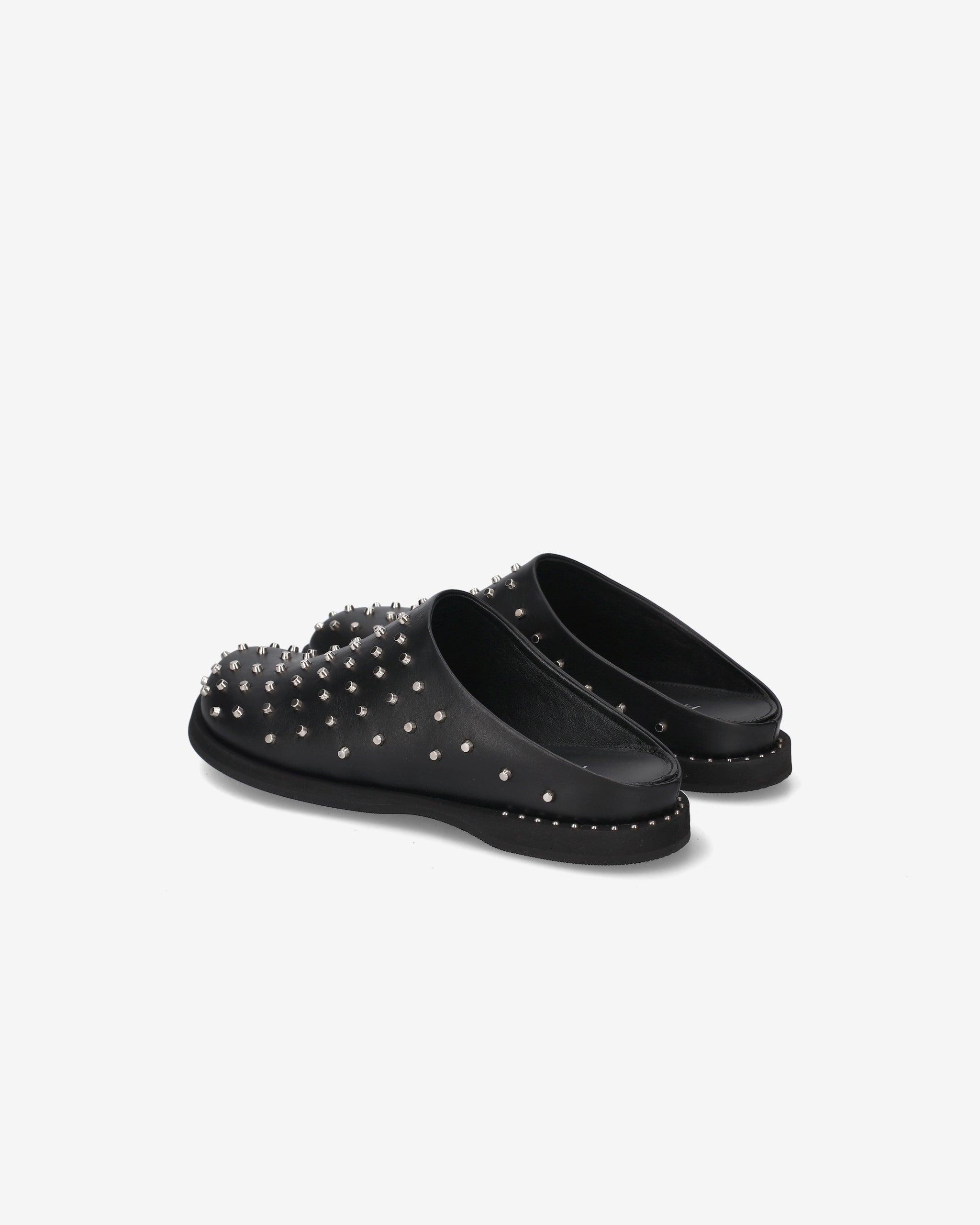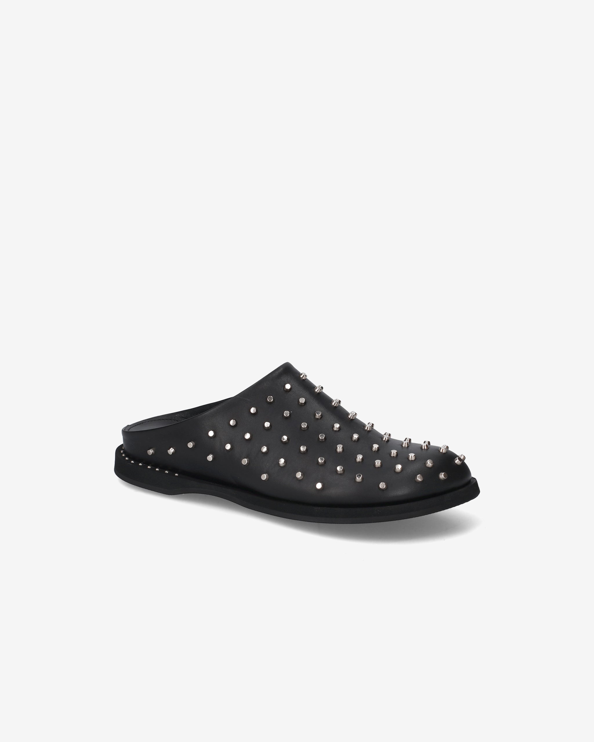 Women's Slippers with a modern and gritty design, perfect for those who want to combine style and practicality. Made of black leather with studded details, they are ideal for completing casual or urban looks with a bold touch.