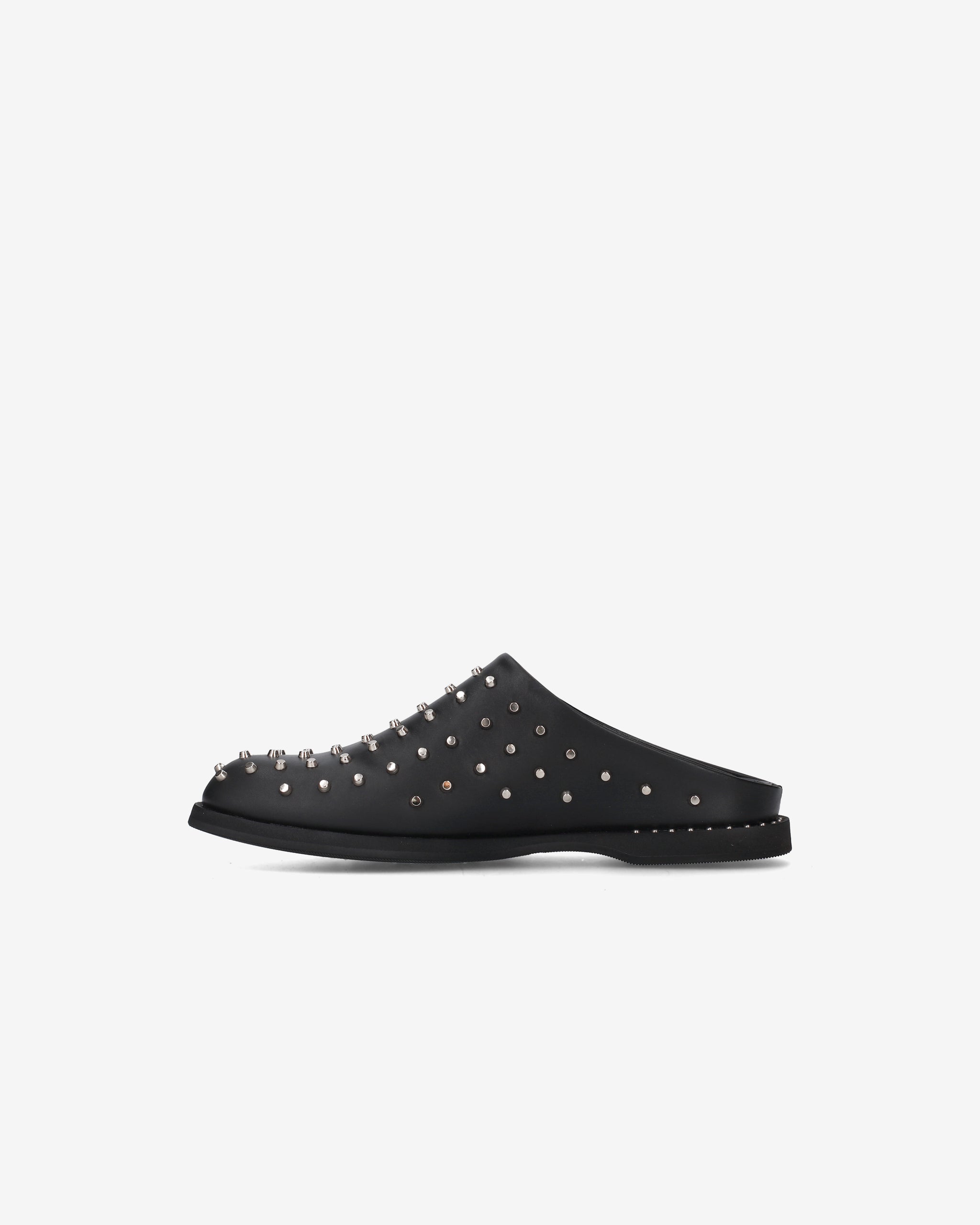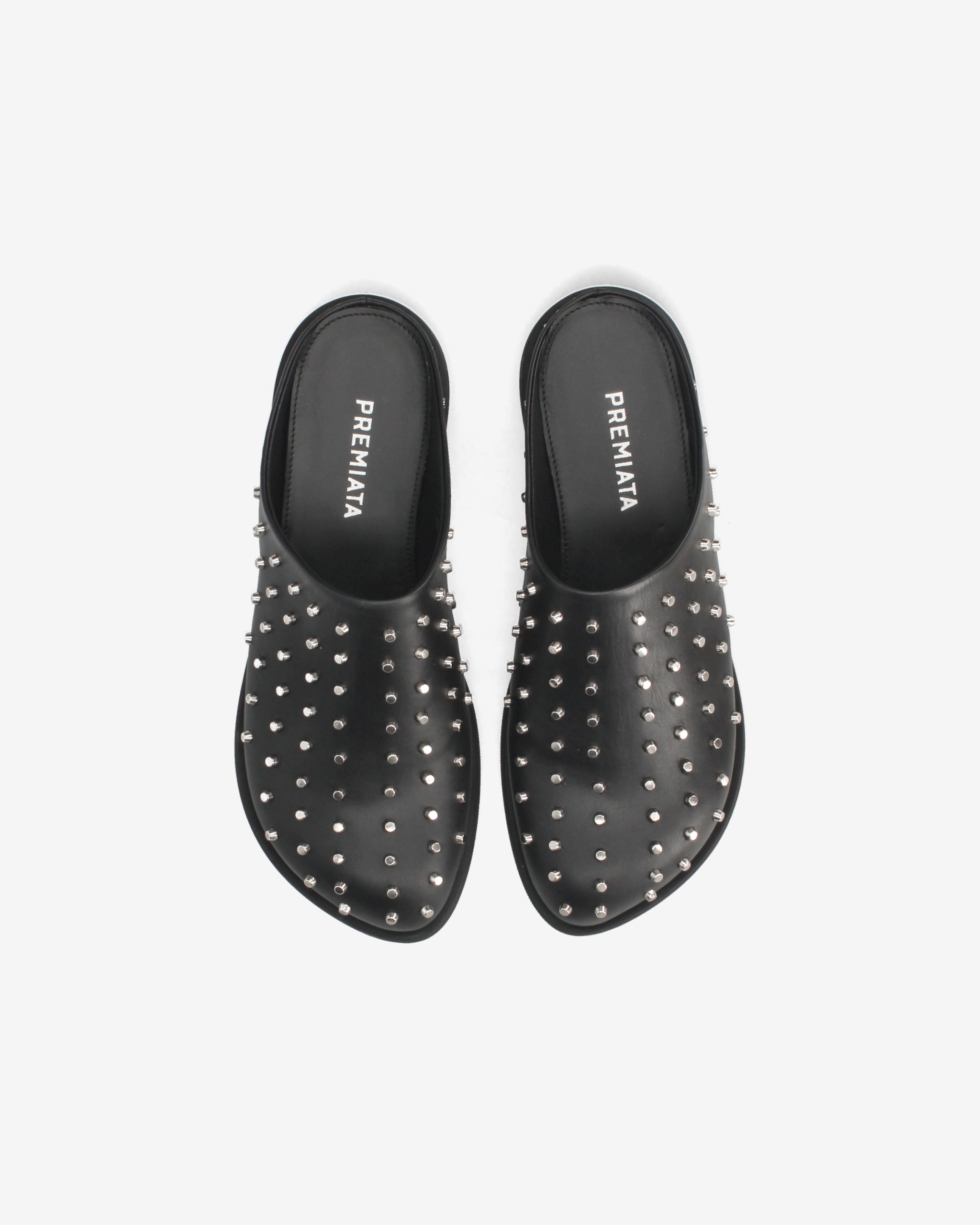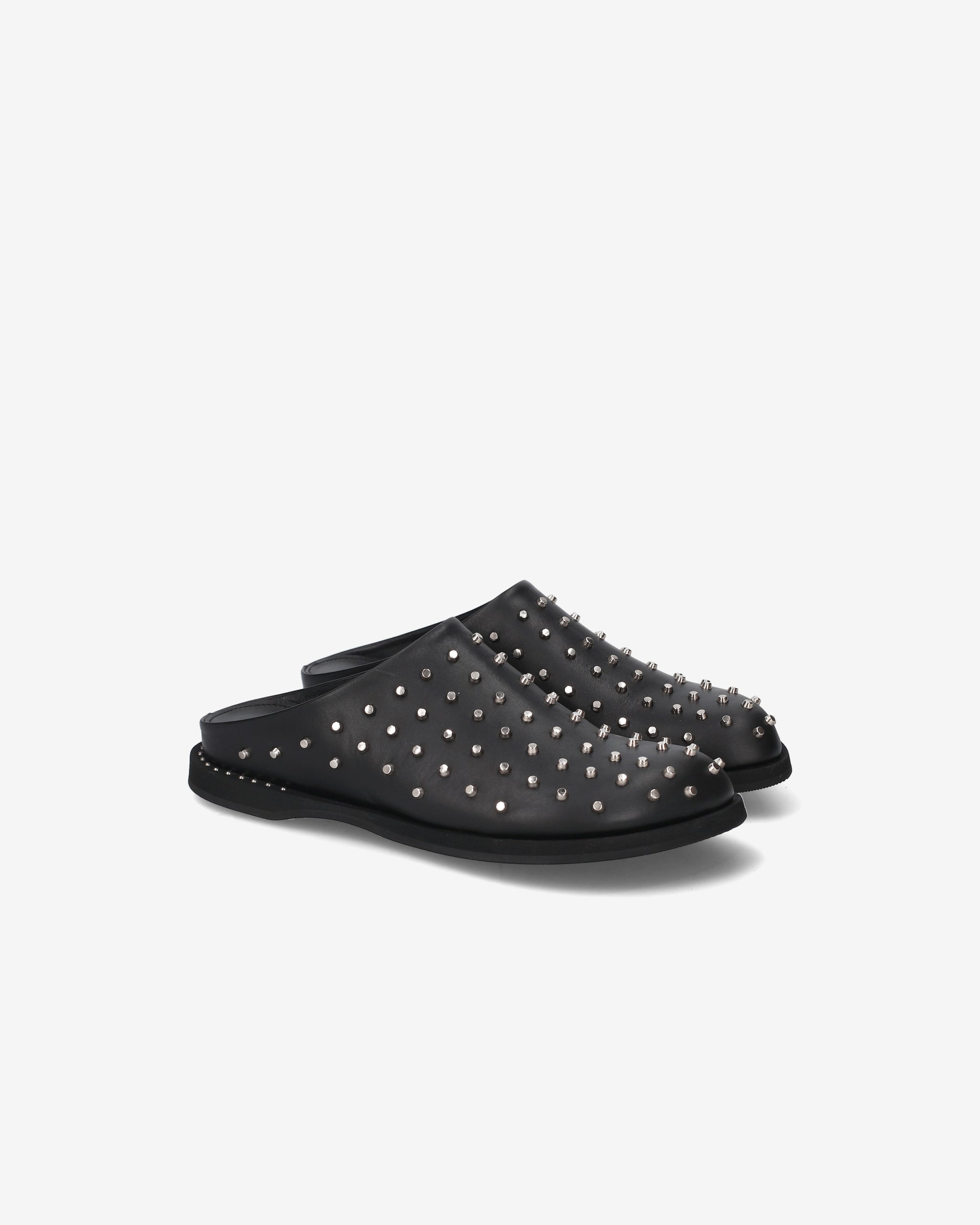 Women's Slippers with a modern and gritty design, perfect for those who want to combine style and practicality. Made of black leather with studded details, they are ideal for completing casual or urban looks with a bold touch.