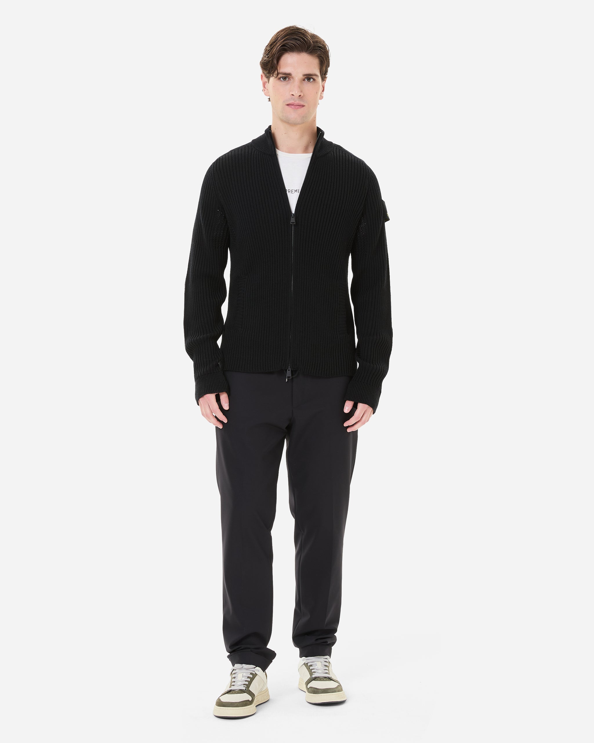 - Collar with 1X1 double rib on fineness 7