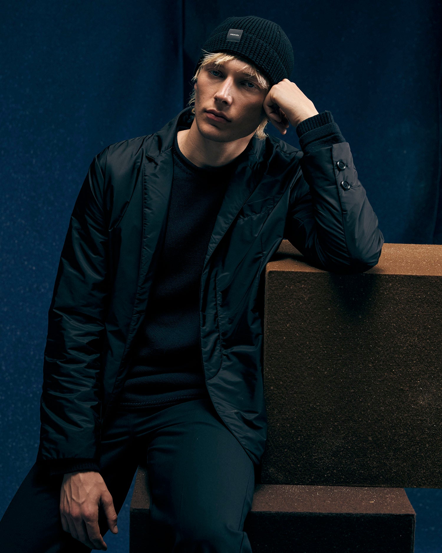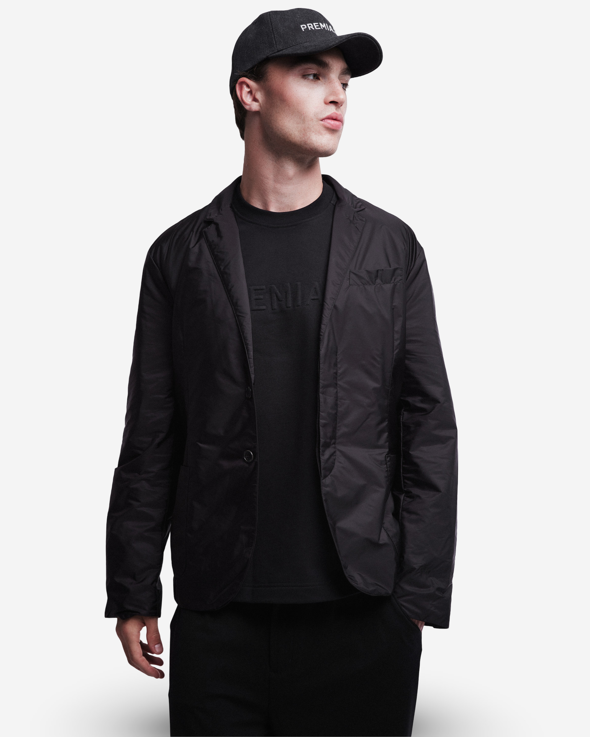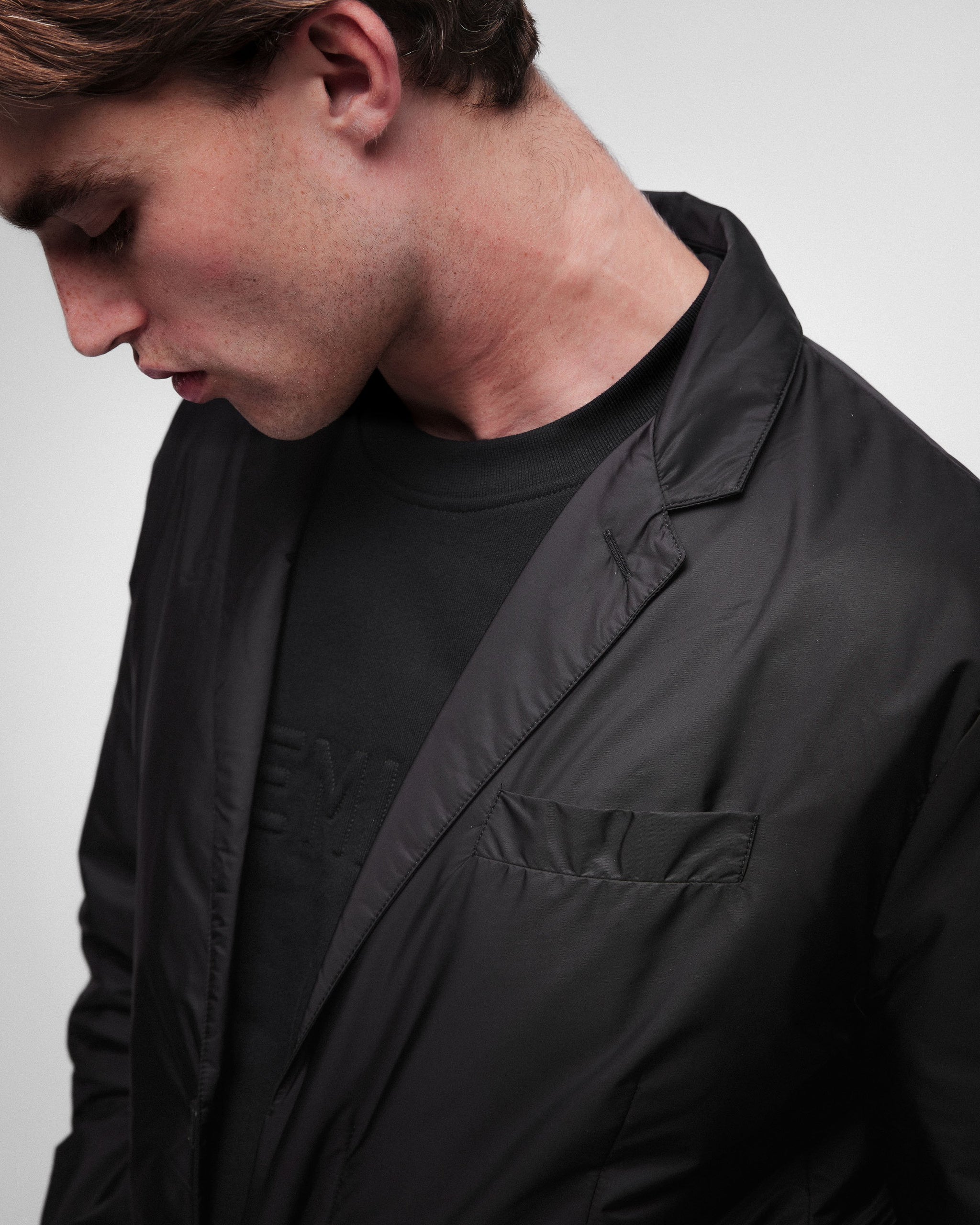 - Tailored-inspired men's jacket with a close fit, padded with wadding and lined with the same nylon.