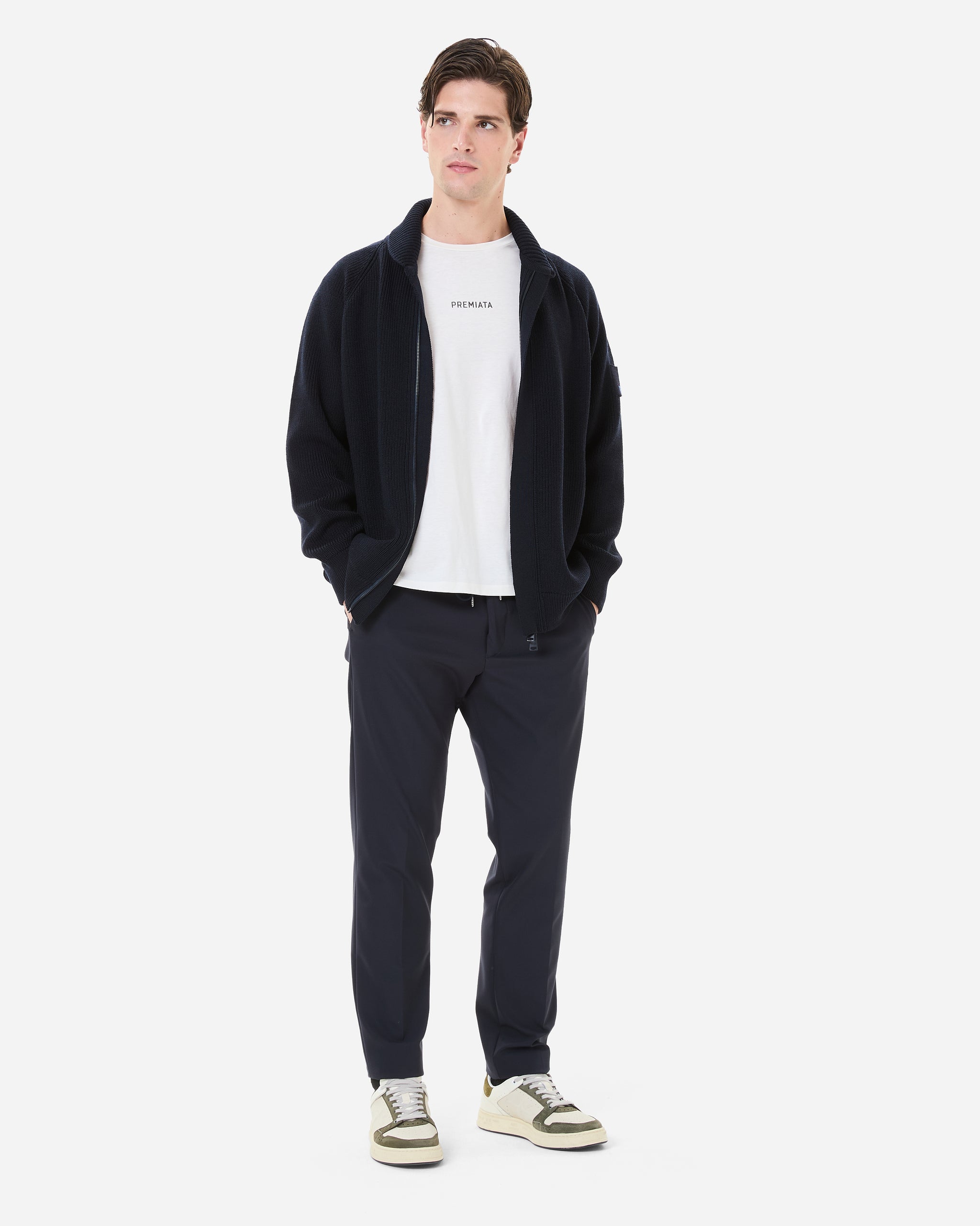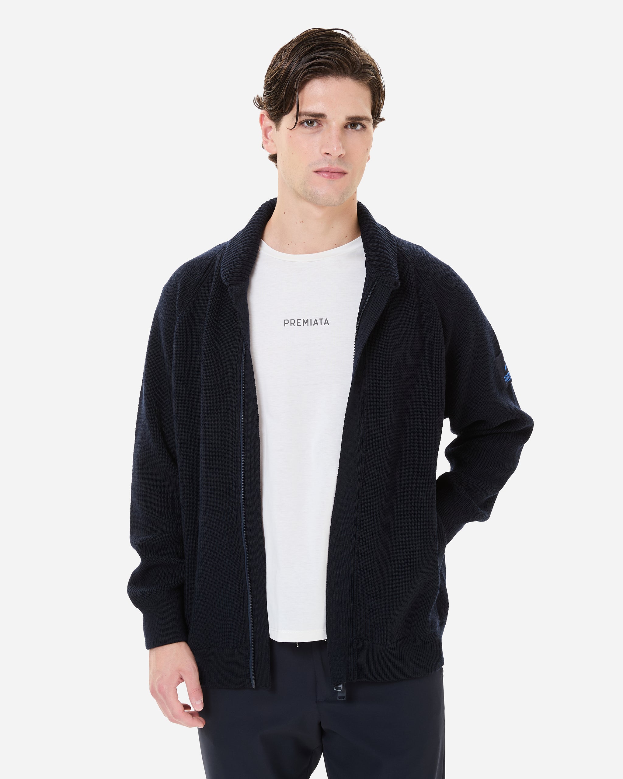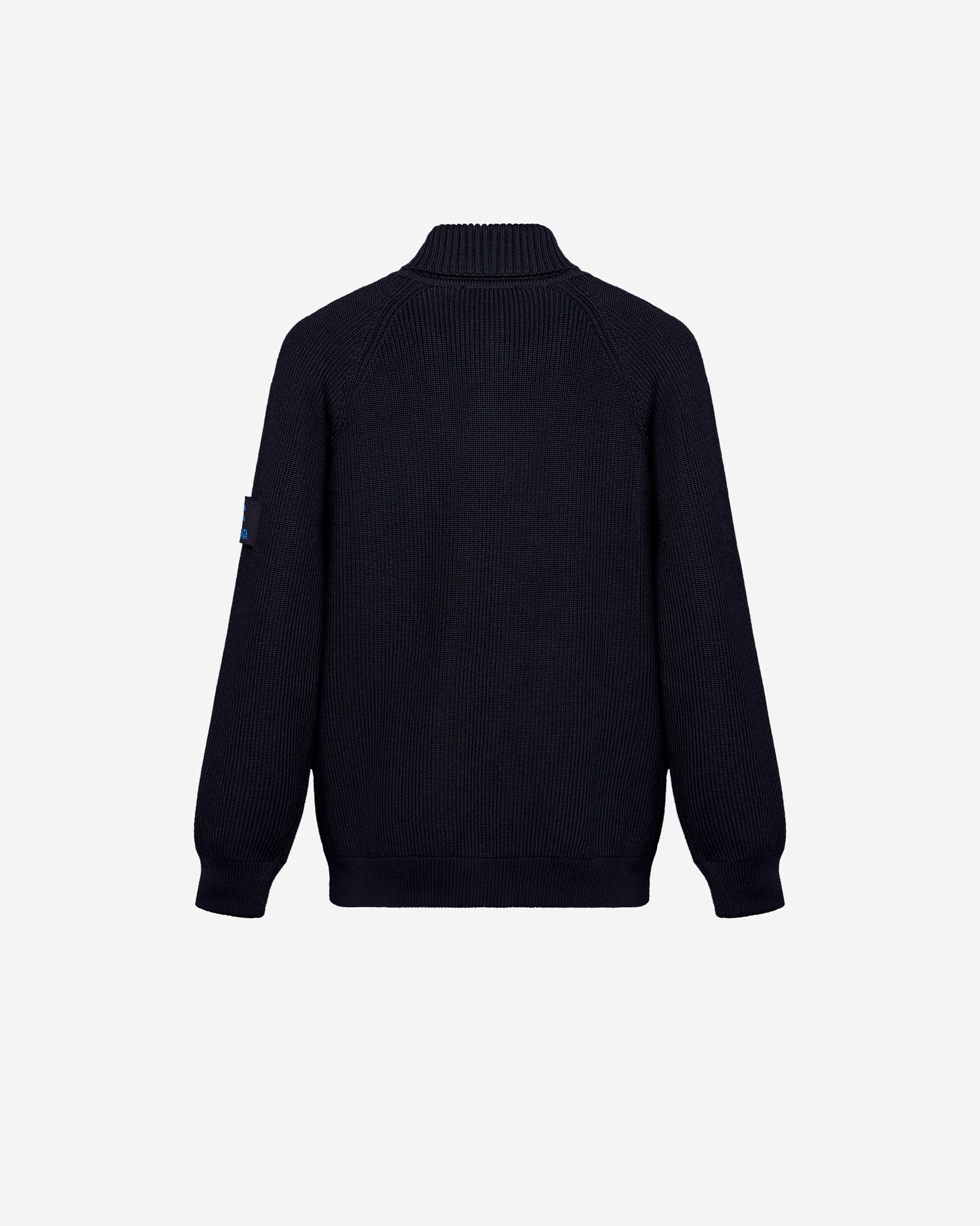 - Shawl collar with 2X2 English knit rib attached with Peter Pan knitting