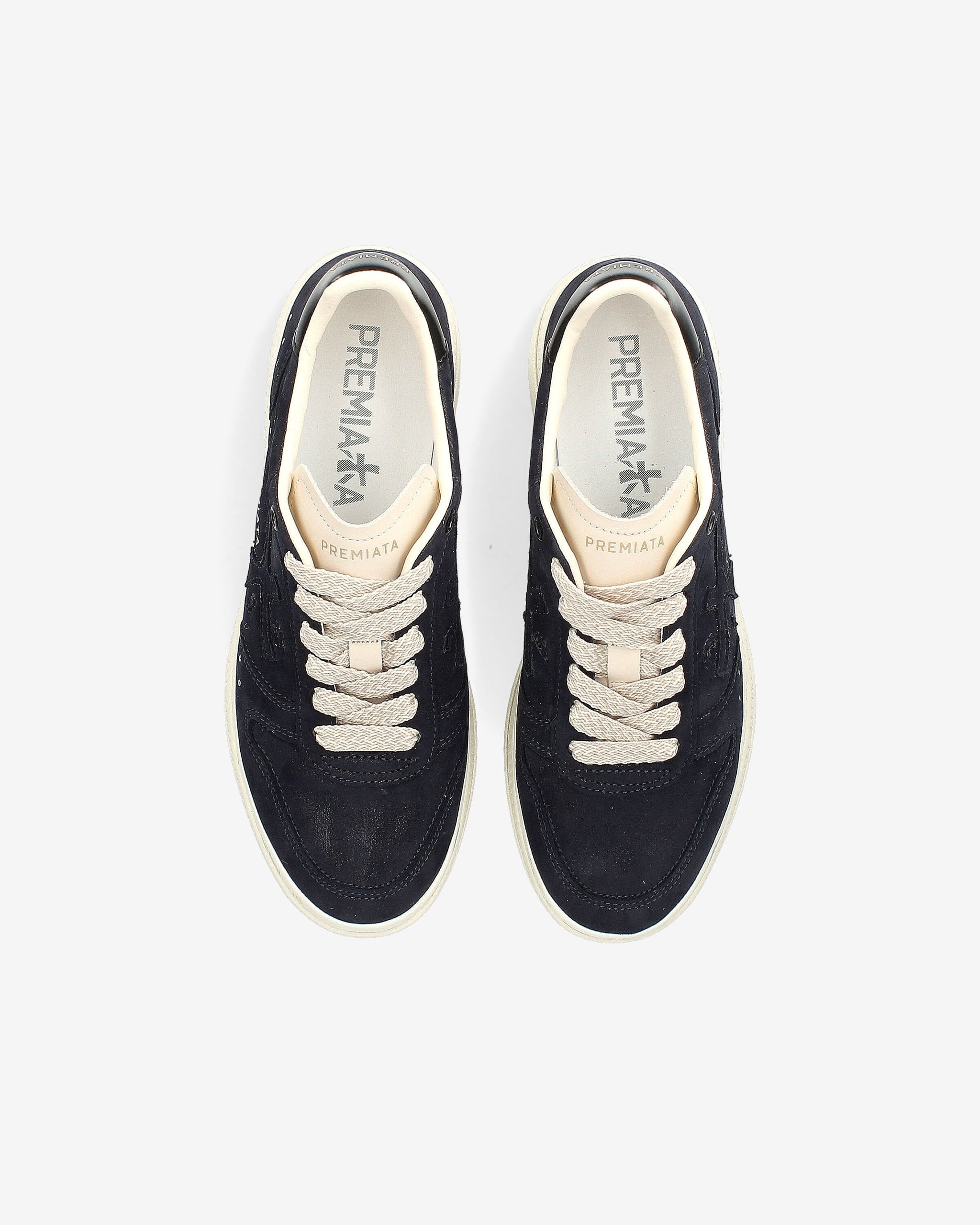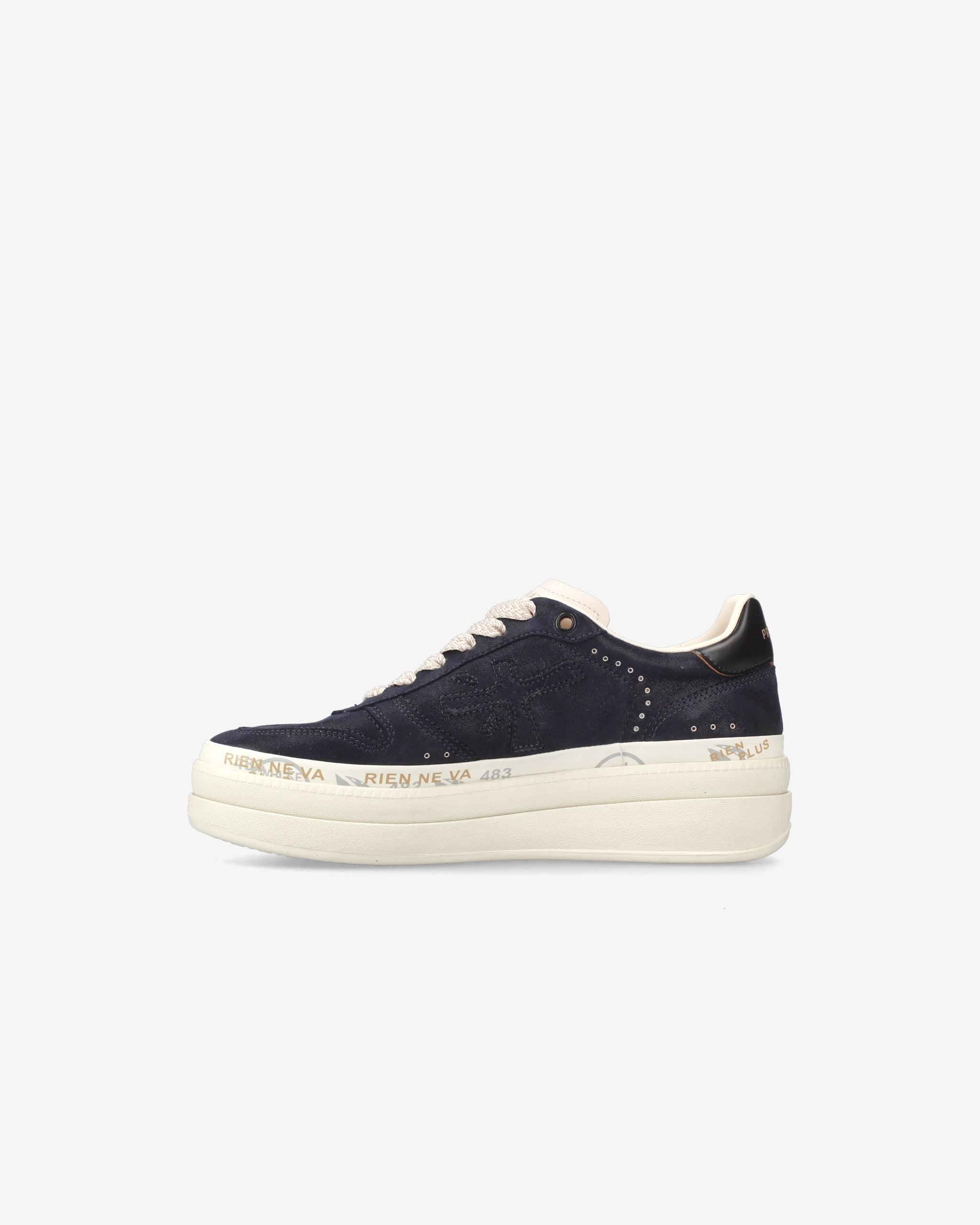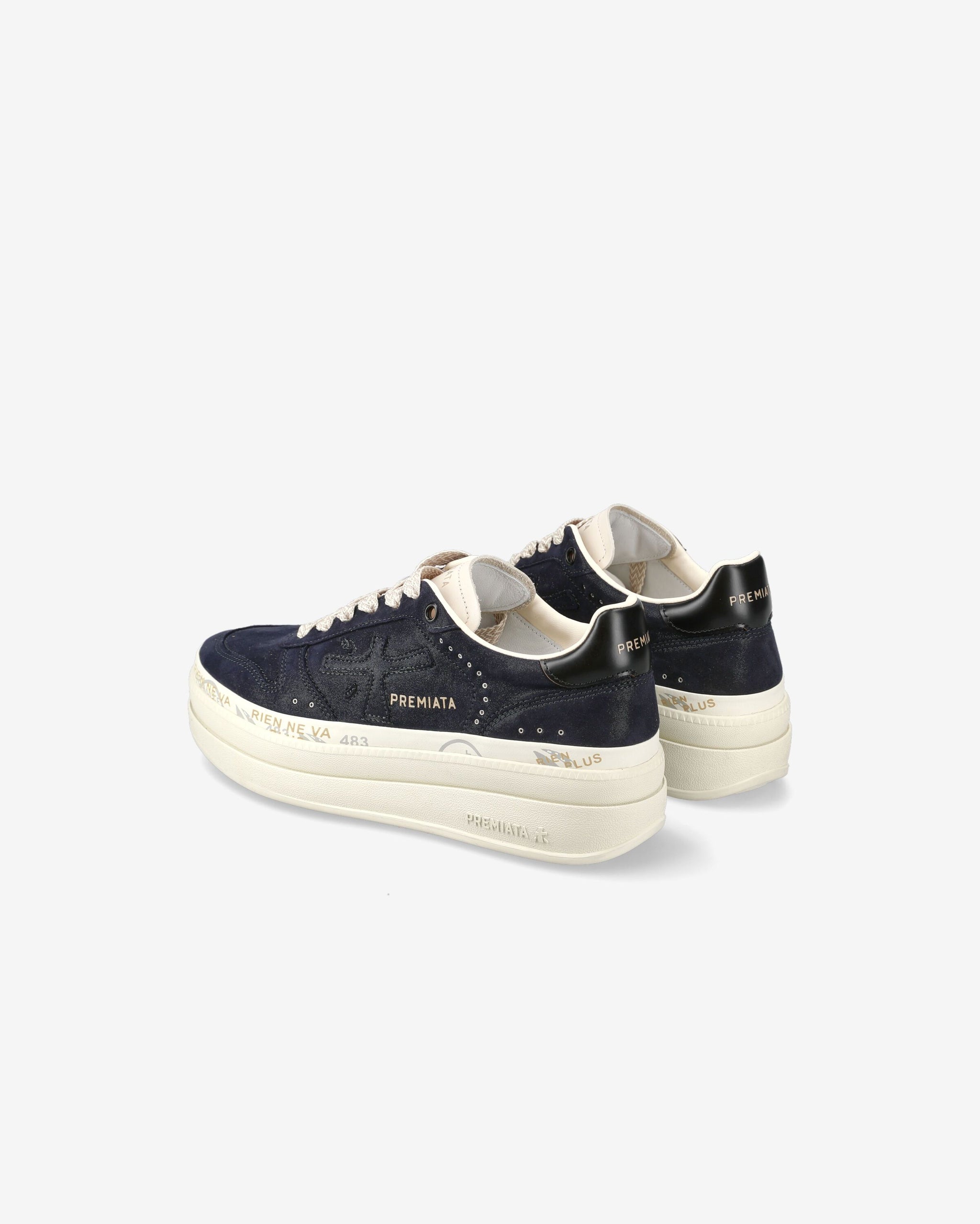 Among Premiata's new must-haves. Style reaches new heights, combining designs such as a double-layered platform sole with a midsole embellished with the brand's iconic stamps.