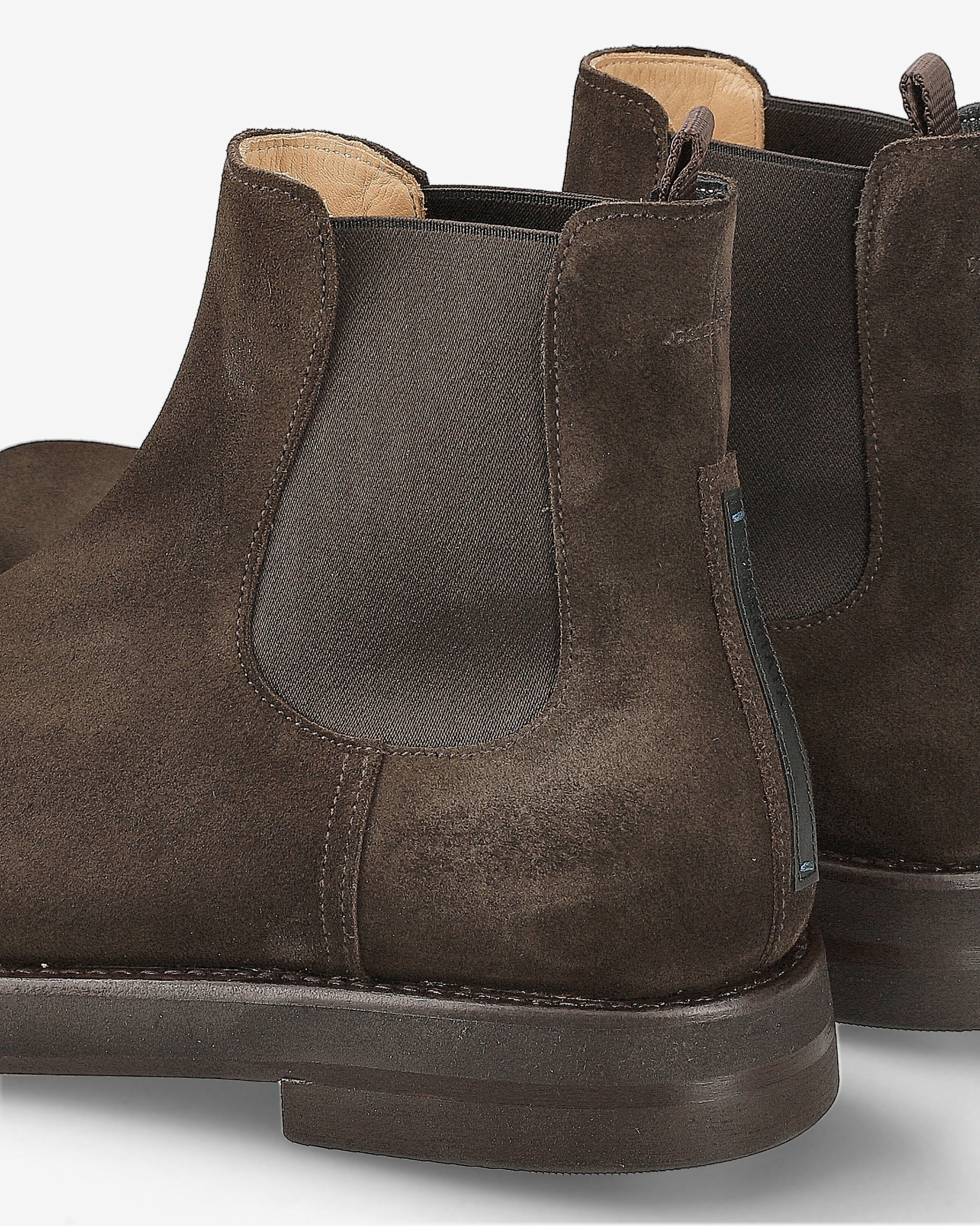 Questo stivaletto in camoscio si arricchisce per la sua lavorazione GoodYear. La combinazione tra la tomaia e la suola in cuoio crea il giusto mix tra modern e classic.