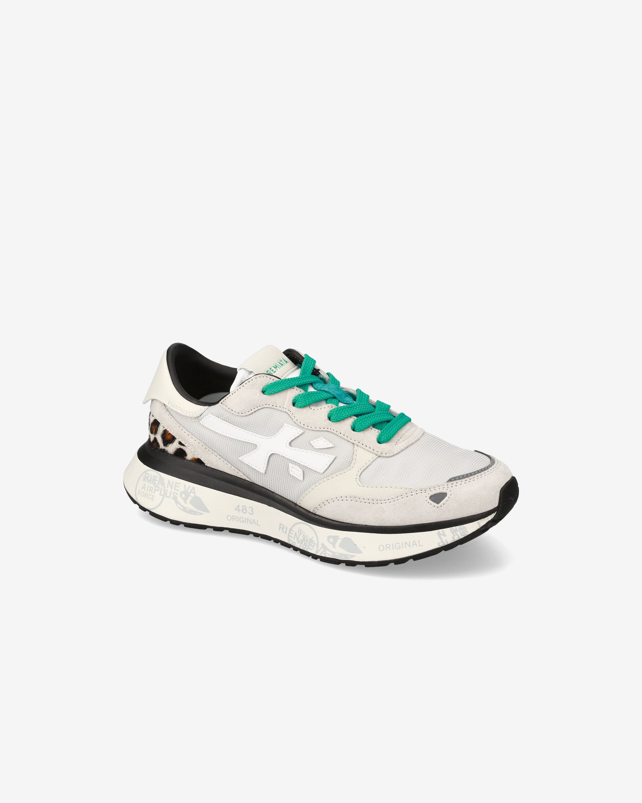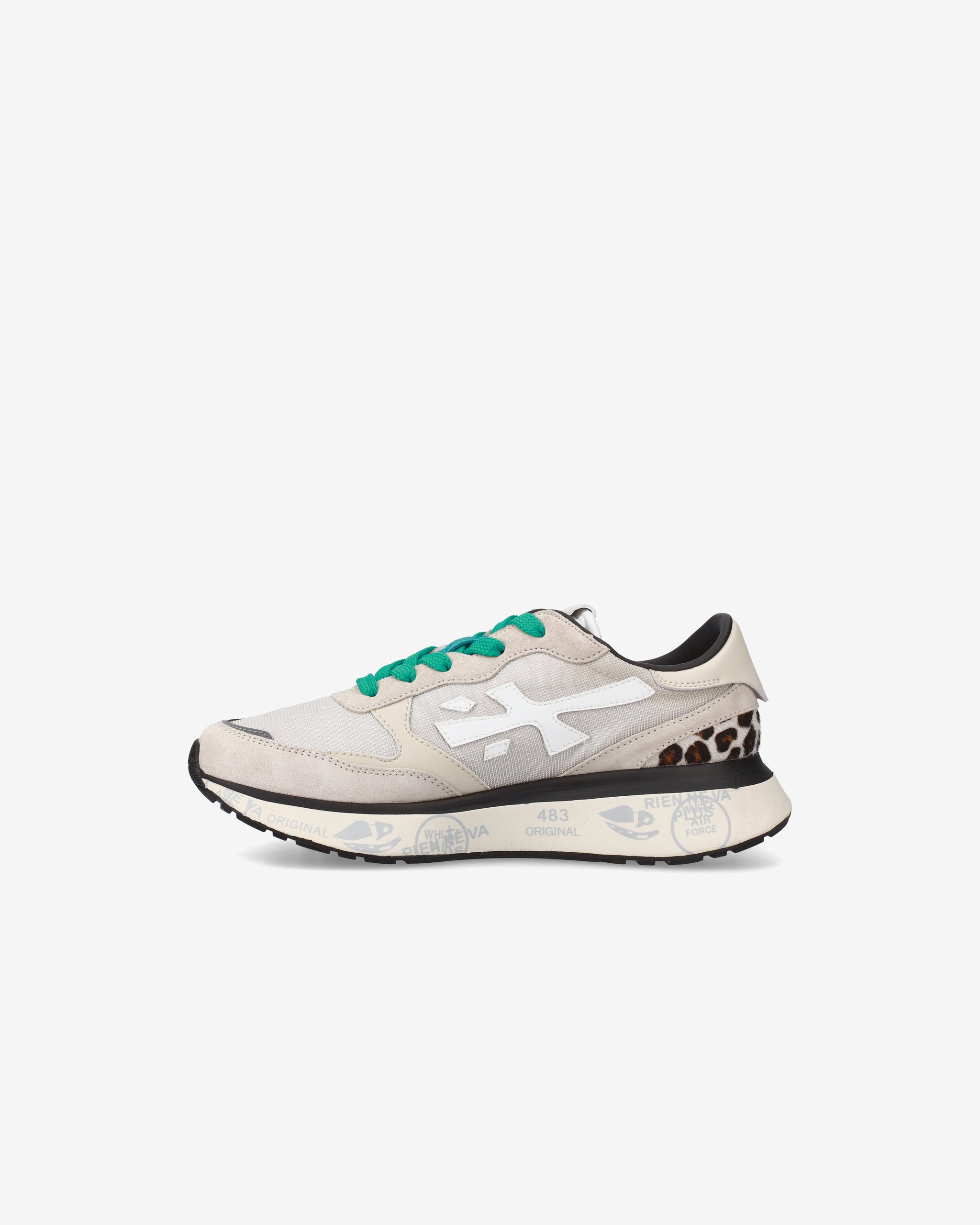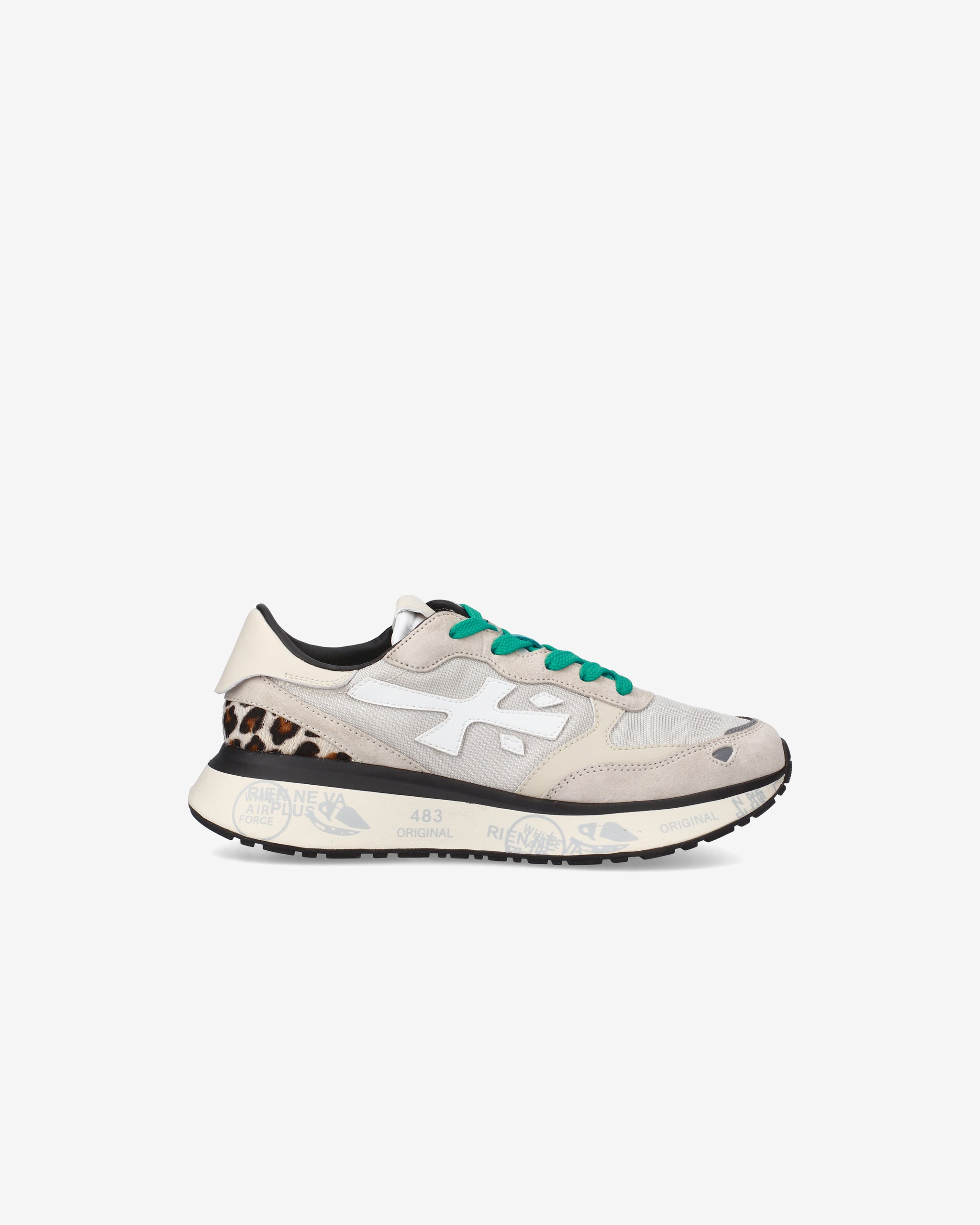 La suola, arricchita dagli iconici dettagli stile Premiata, esalta l'identità urban e casual-chic.