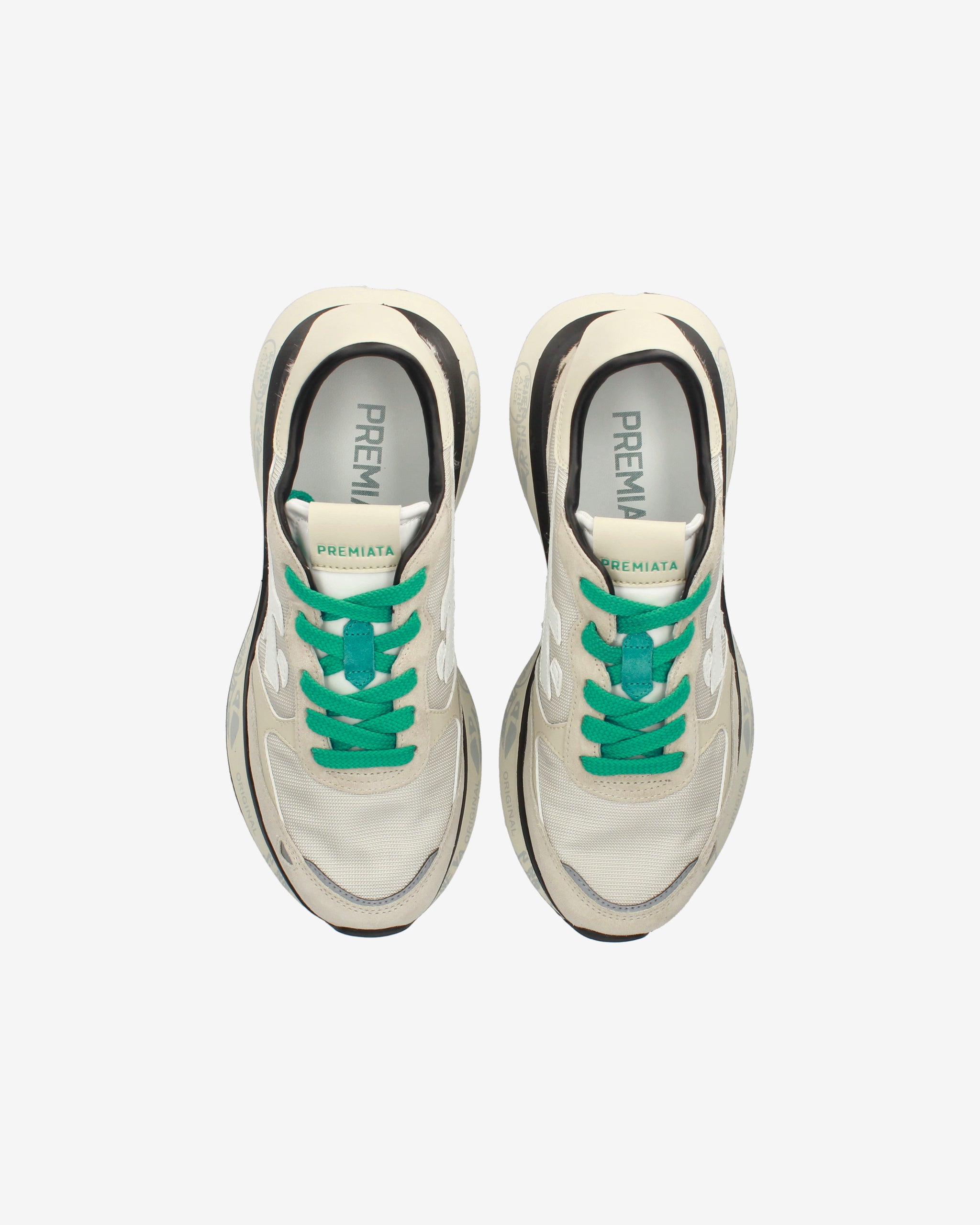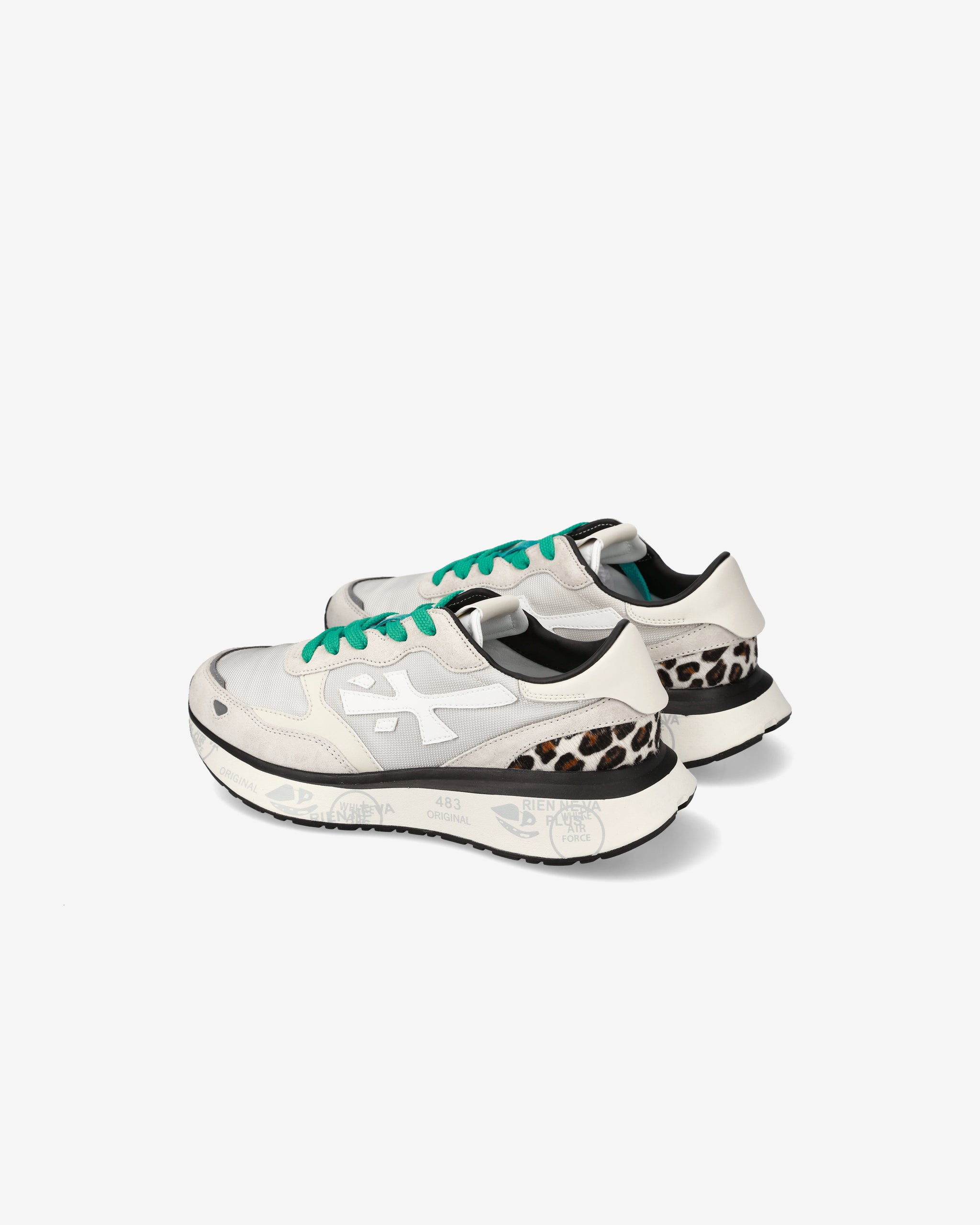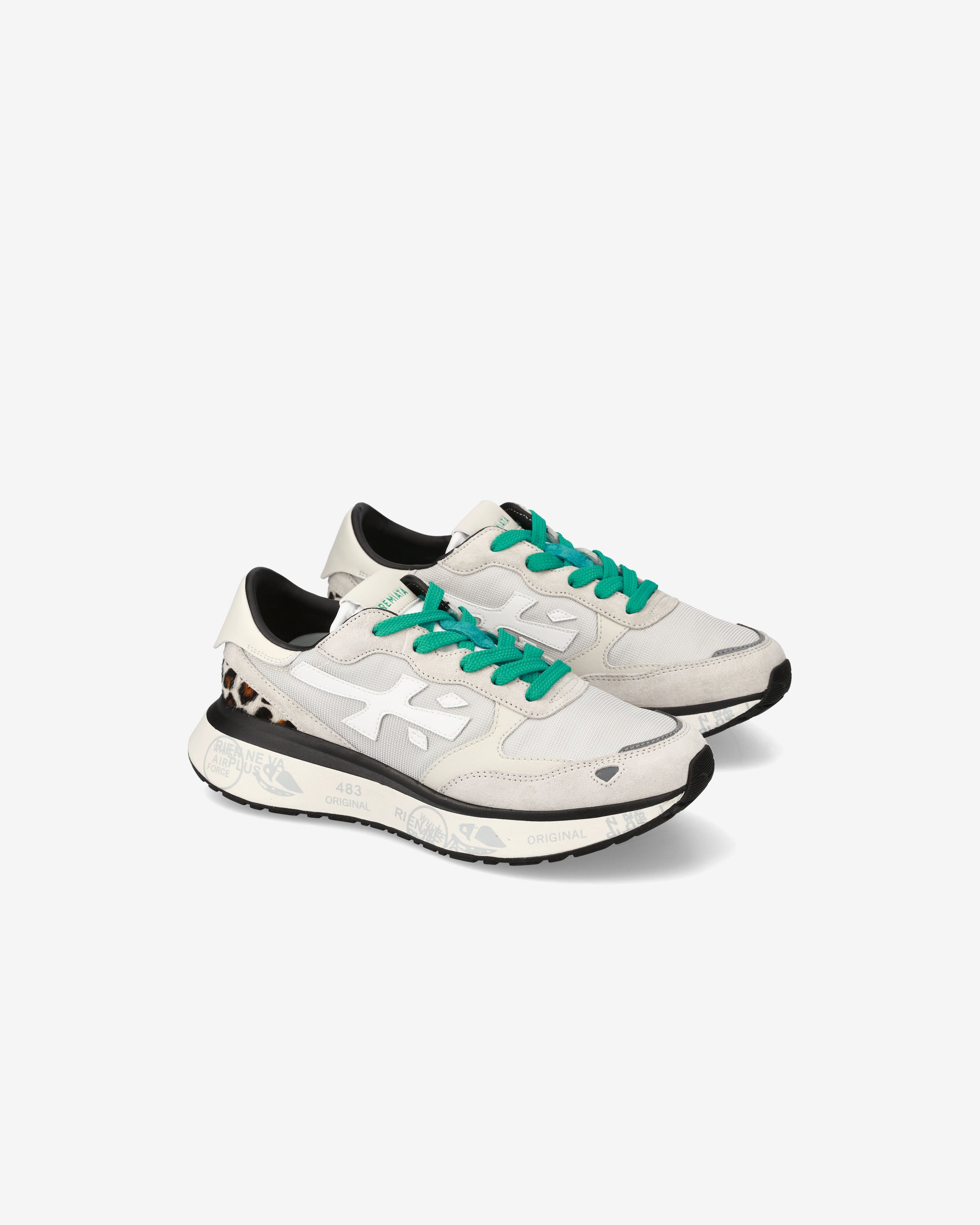 La suola, arricchita dagli iconici dettagli stile Premiata, esalta l'identità urban e casual-chic.