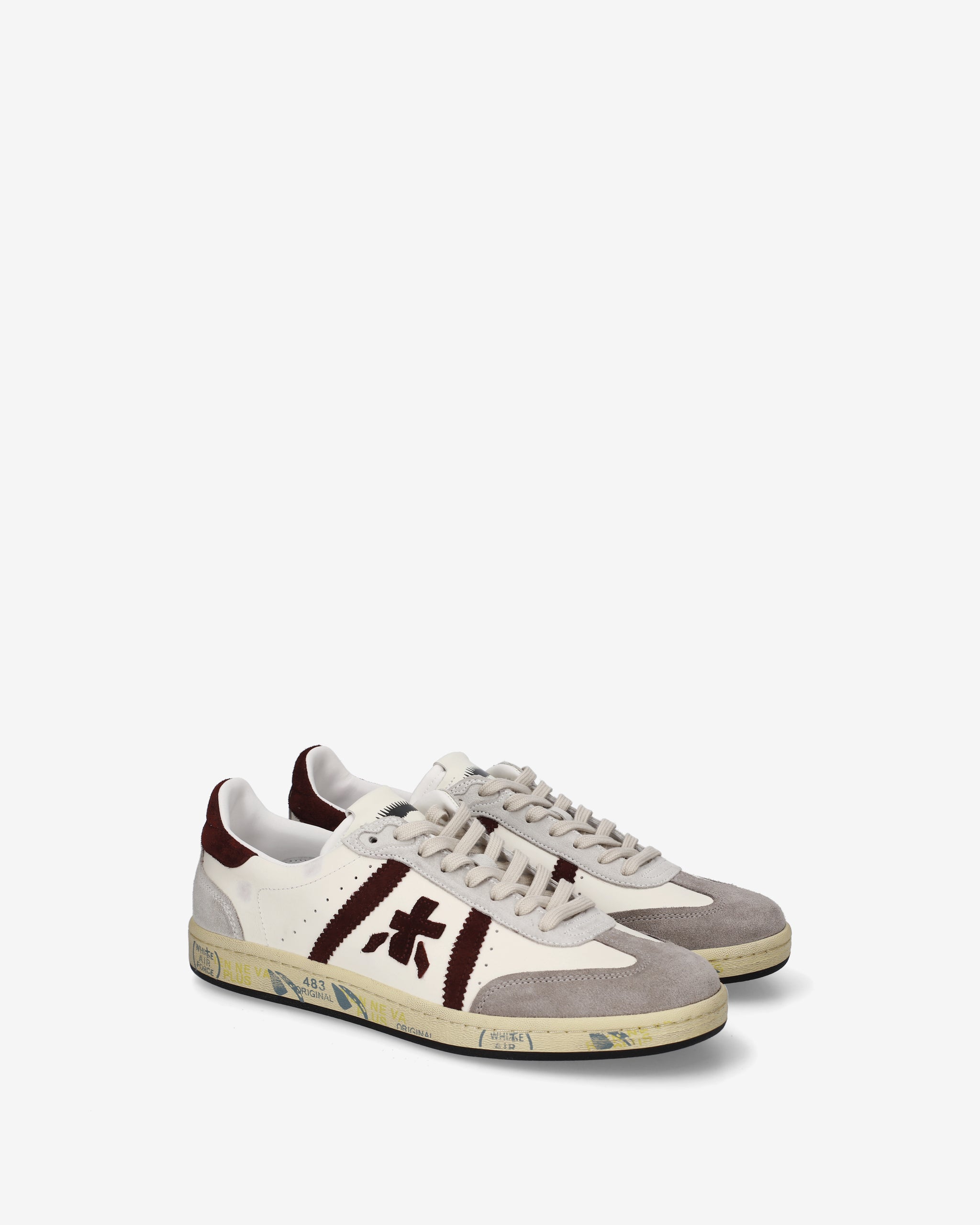 Bonnie con tomaia bianca, dettagli rossi a contrasto e suola off white. Un mix di colori classici per un’estetica pulita e sofisticata.