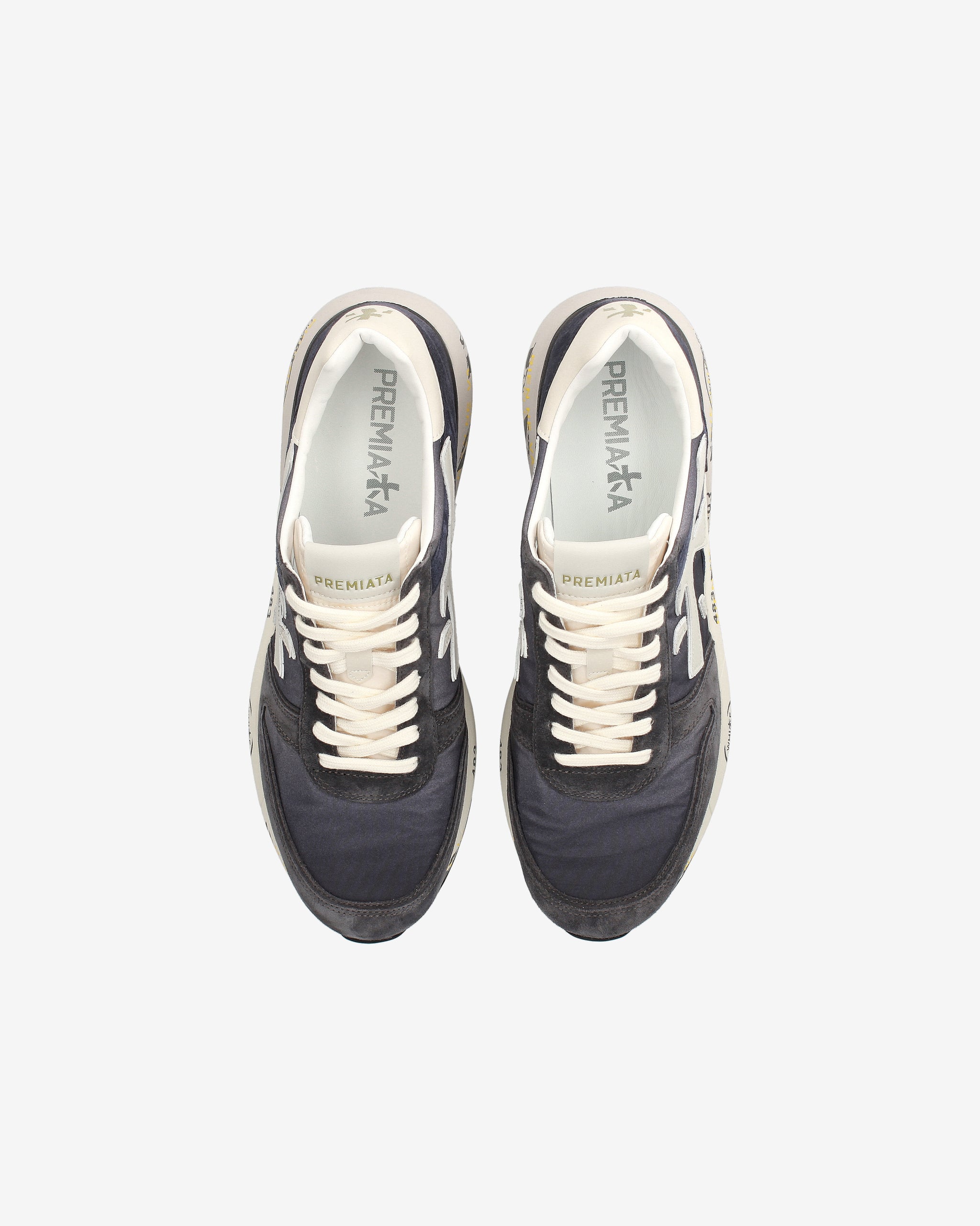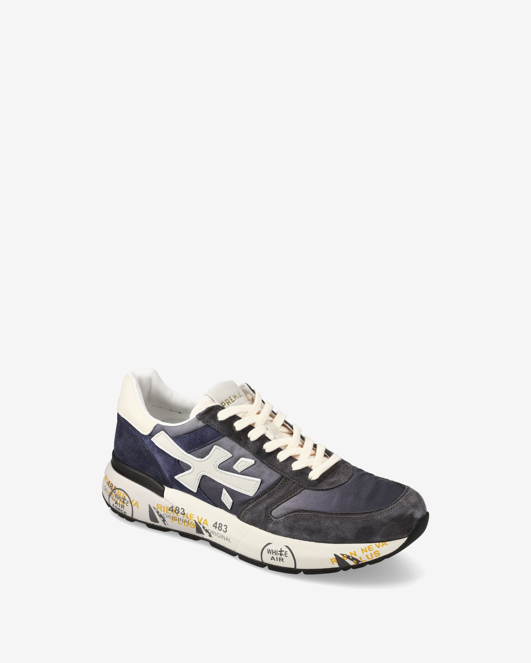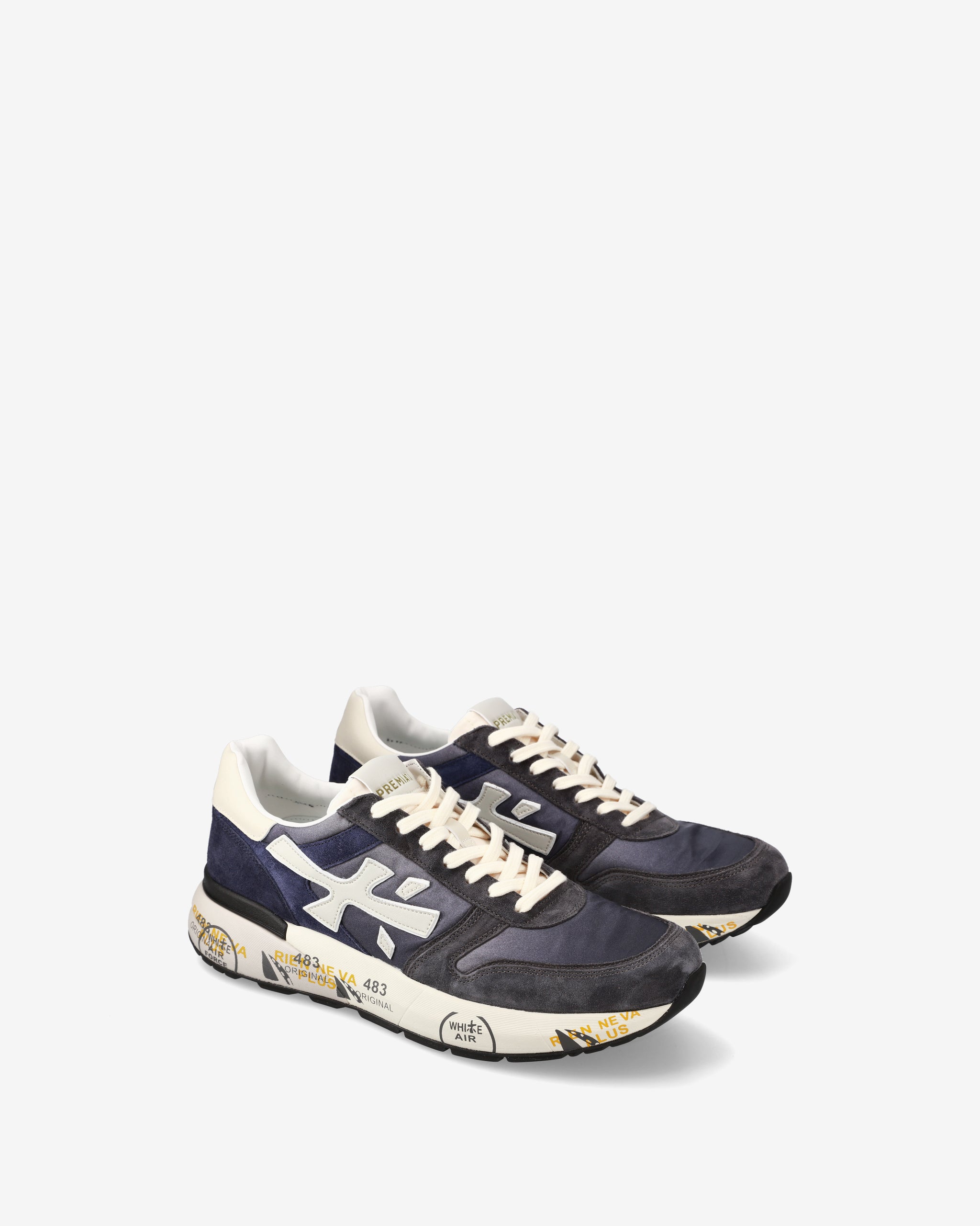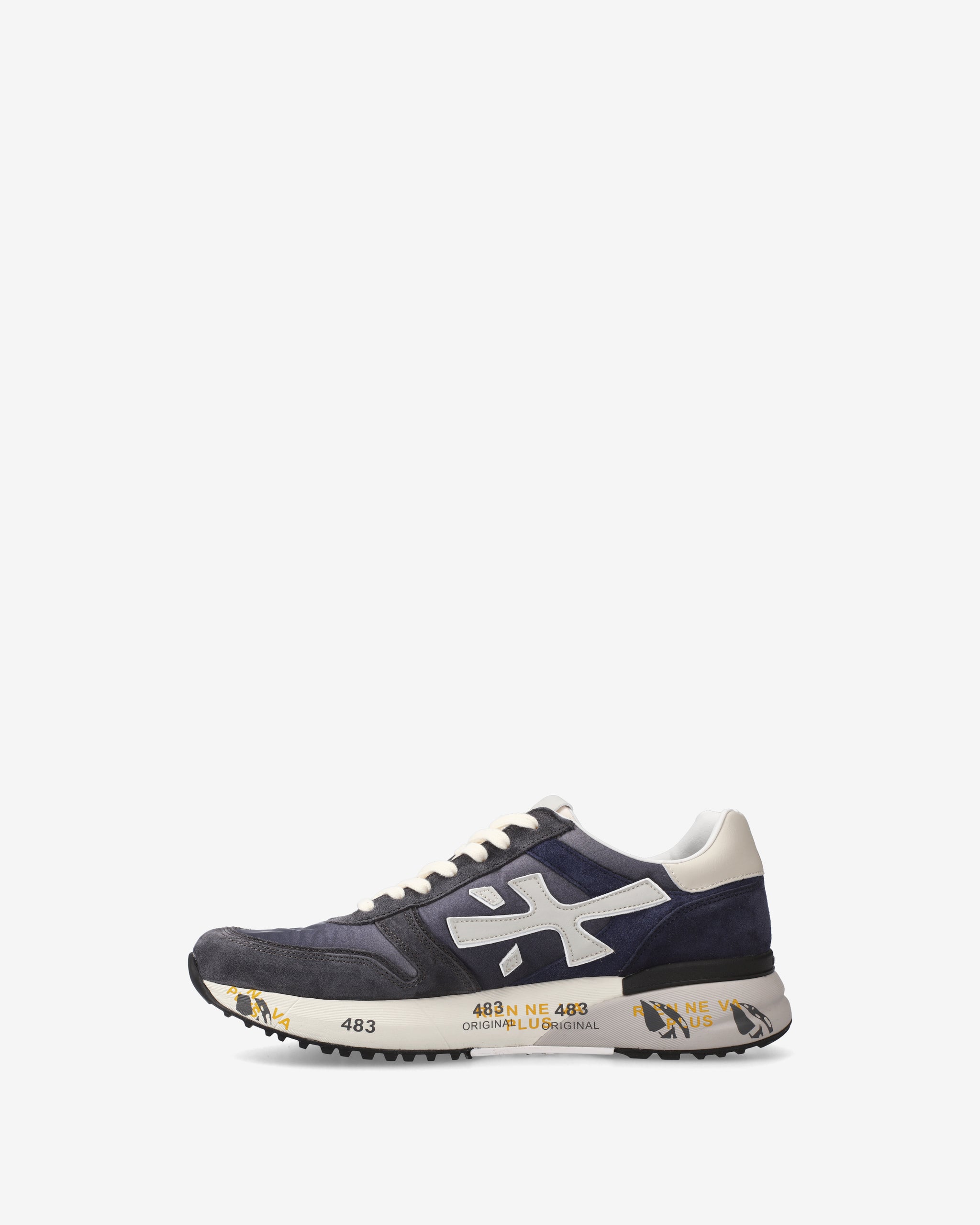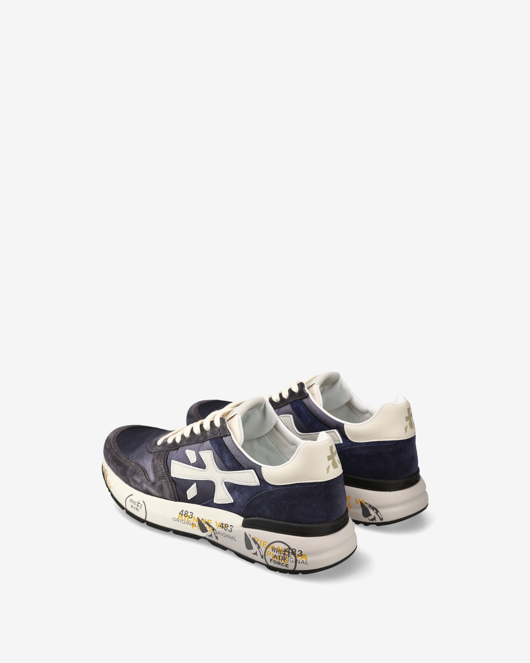 Un mix di materiali e pellami di qualità. La scarpa è realizzata nelle tonalità del blu per uno stile casual. L'iconica silhouette è arrichita dal logo Premiata.
