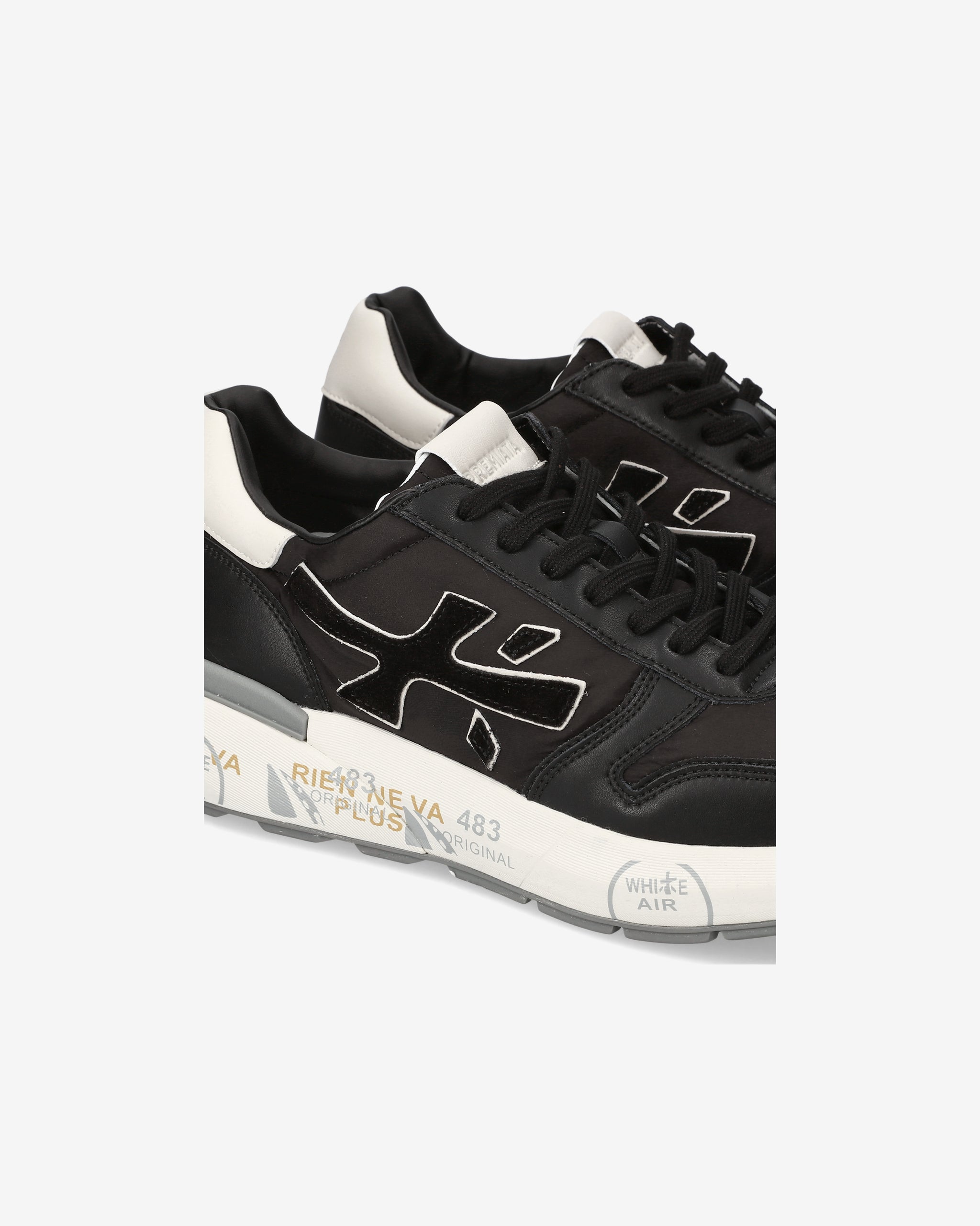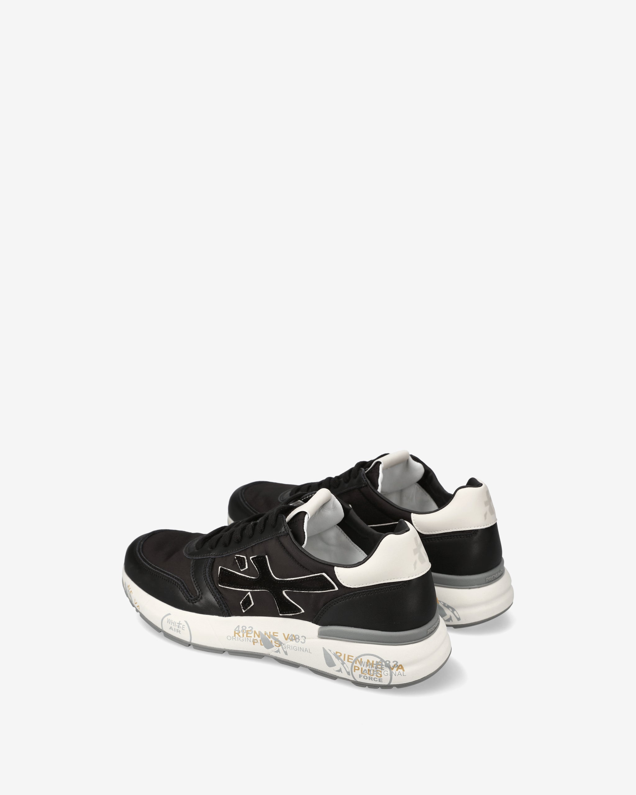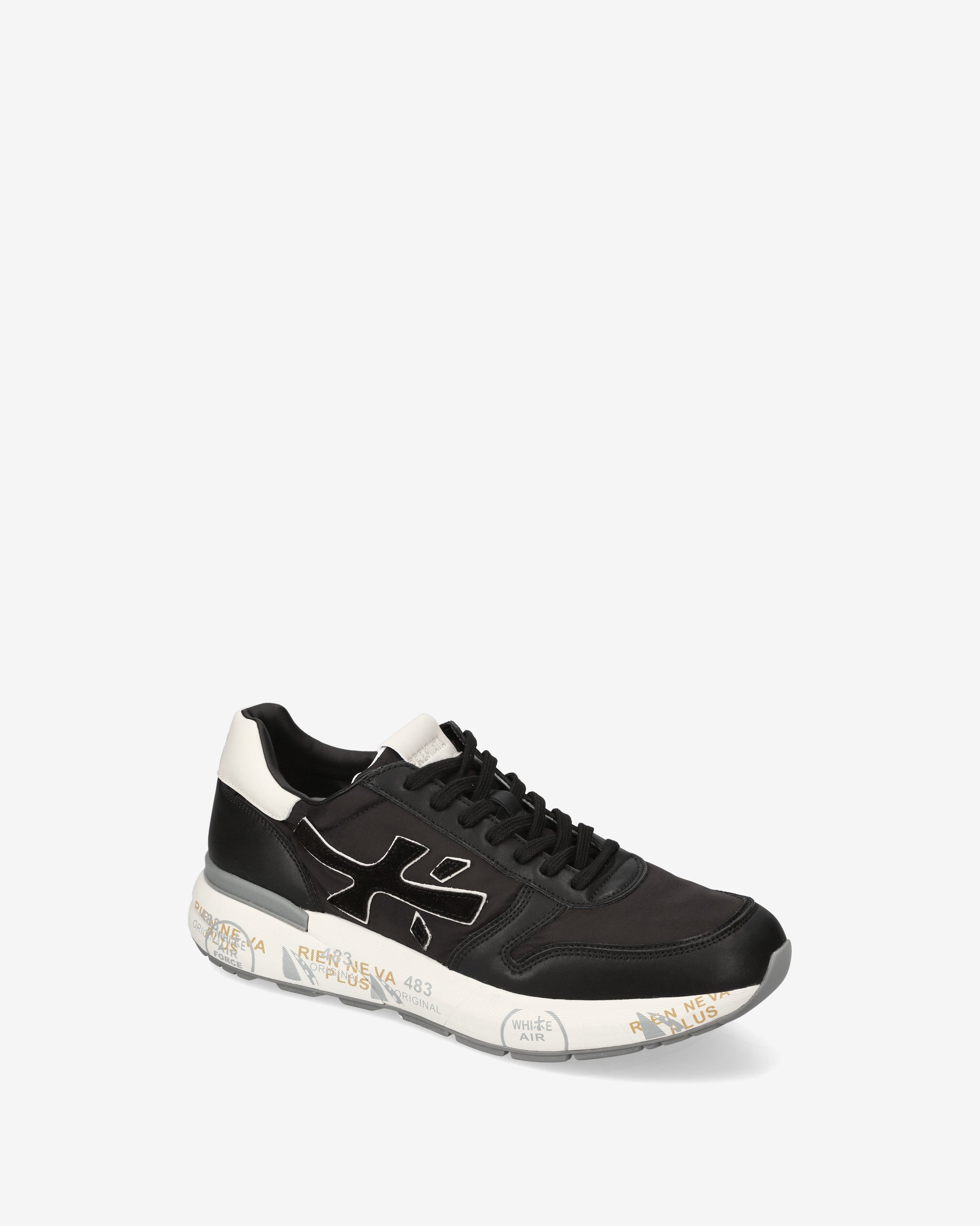 Un mix di materiali e pellami di qualità. La scarpa è realizzata in tonalità scure per uno stile casual. L'iconica silhouette è arrichita dal logo Premiata.