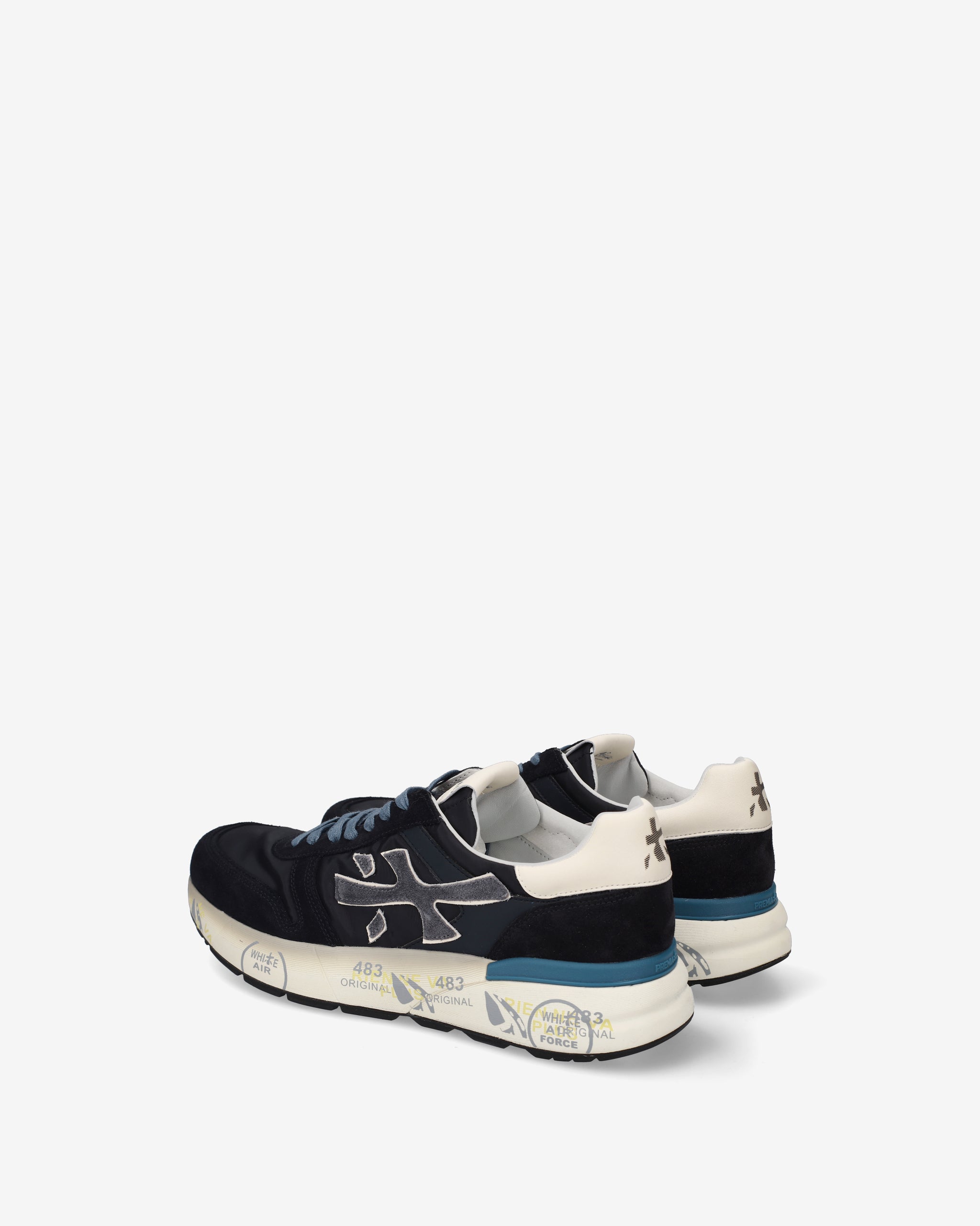 Un mix di materiali e pellami di qualità. La scarpa è realizzata nelle tonalità del blu per uno stile casual. L'iconica silhouette è arrichita dal logo Premiata.