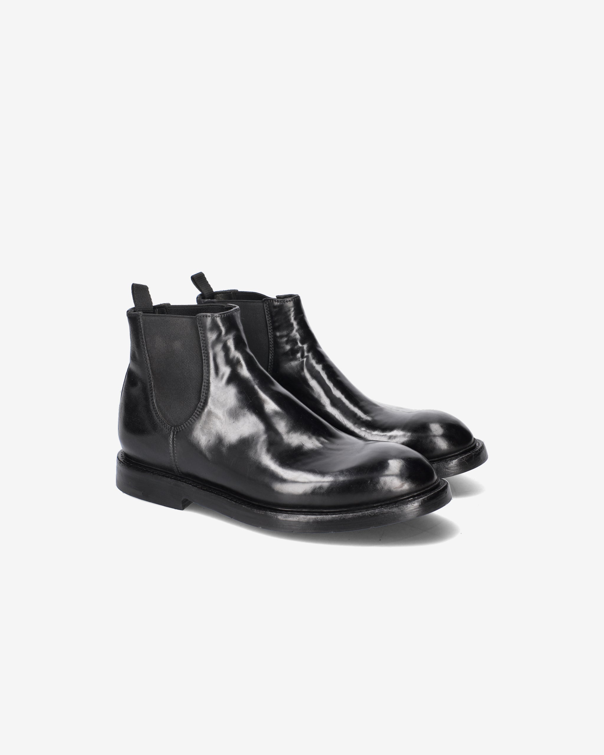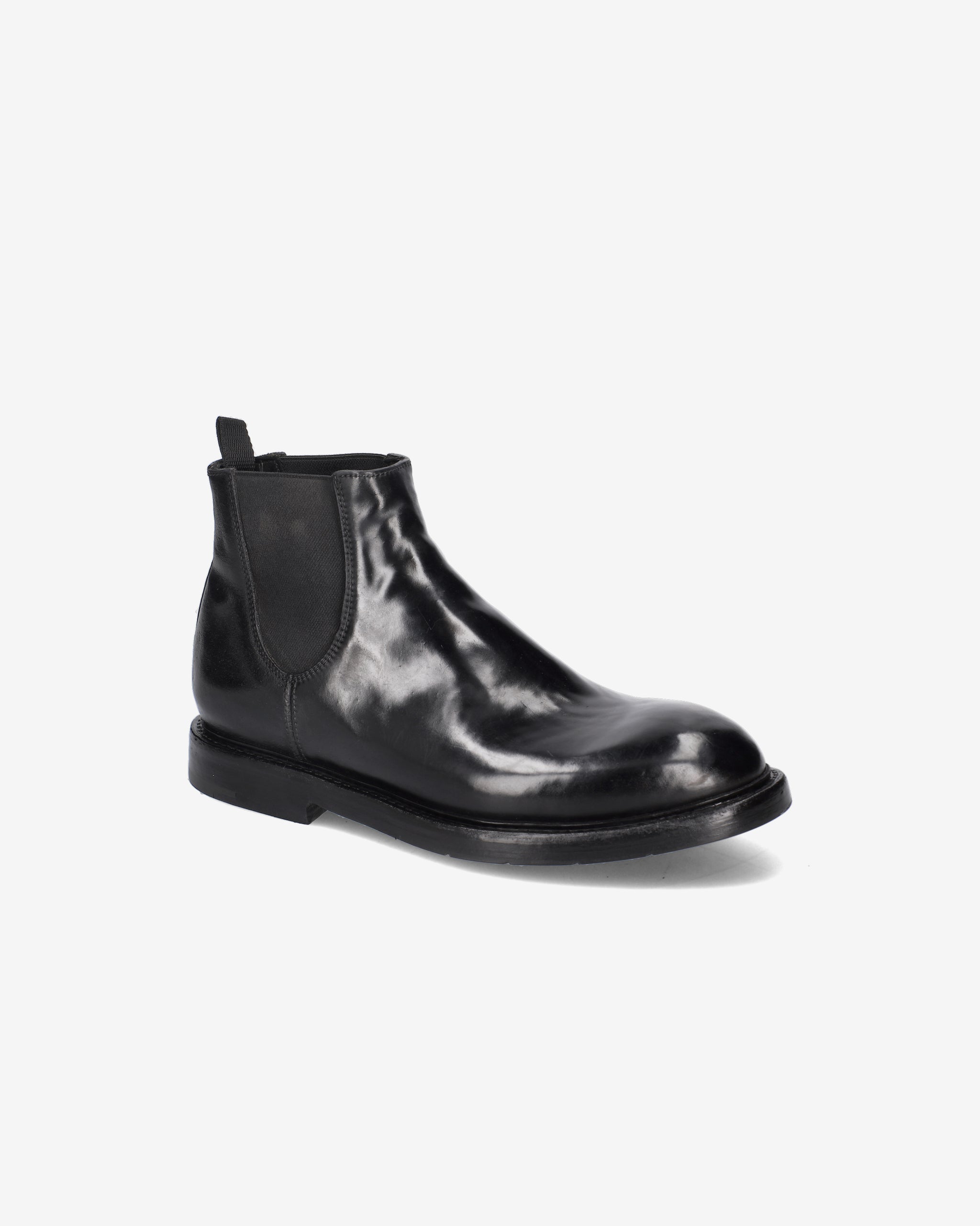 Linee classiche e affusolate per questi stivaletti in Cordovan, una caratteristica inconfondile del brand. Caratterizzati dagli elastici laterali e dalla suola in cuoio con sottotacco in gomma.