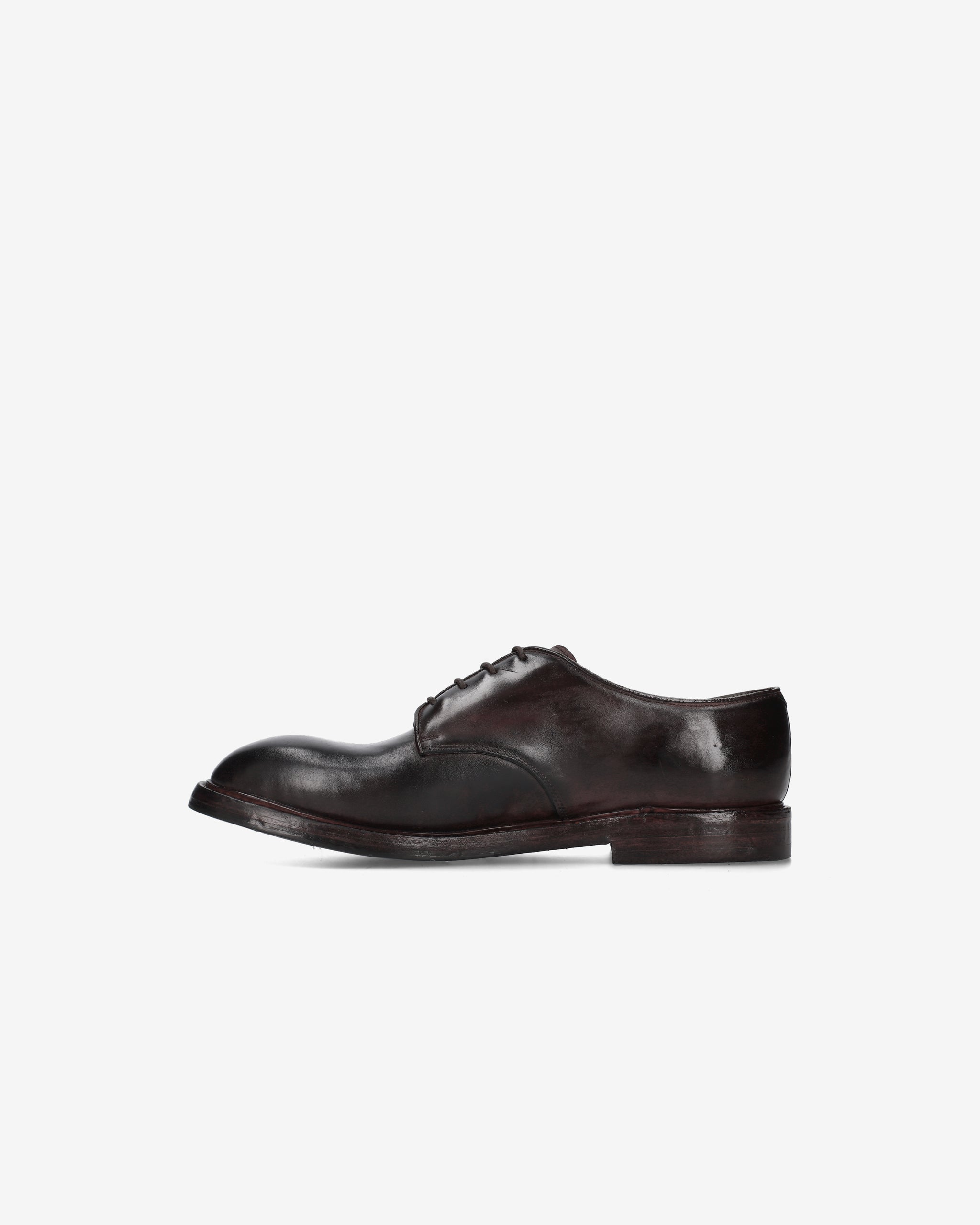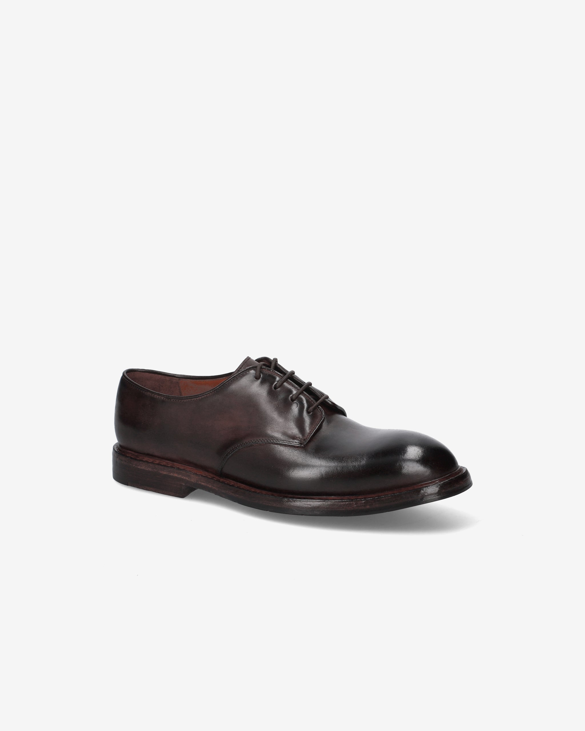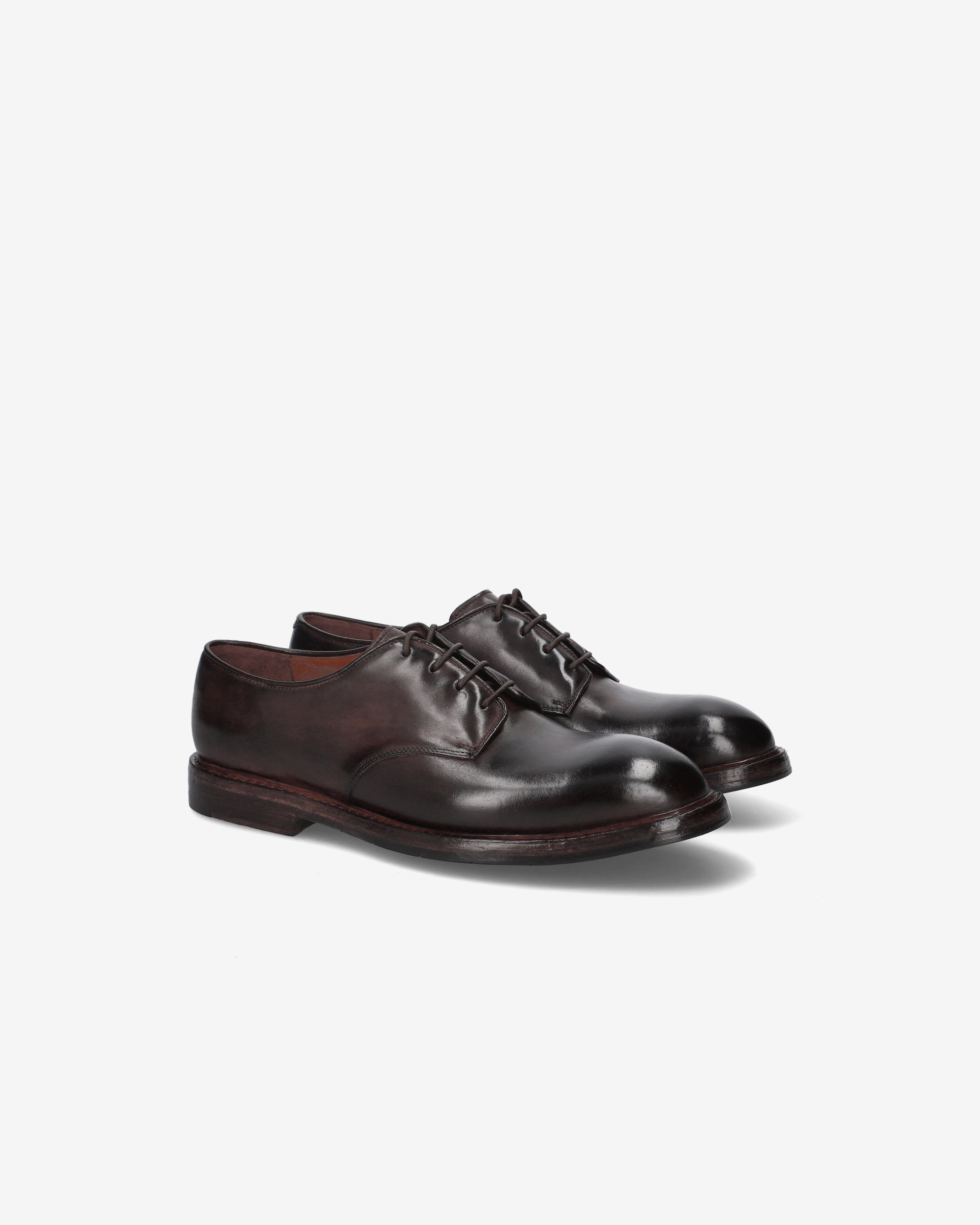 Calzatura classica e senza tempo, realizzata in pelle di cavallo tinta in capo, caratterizzata da una costruzione solida e dettagli curati. Le stringhe in cotone cerato e la suola in cuoio mezza piantina completano una lavorazione Goodyear pensata per durare nel tempo.