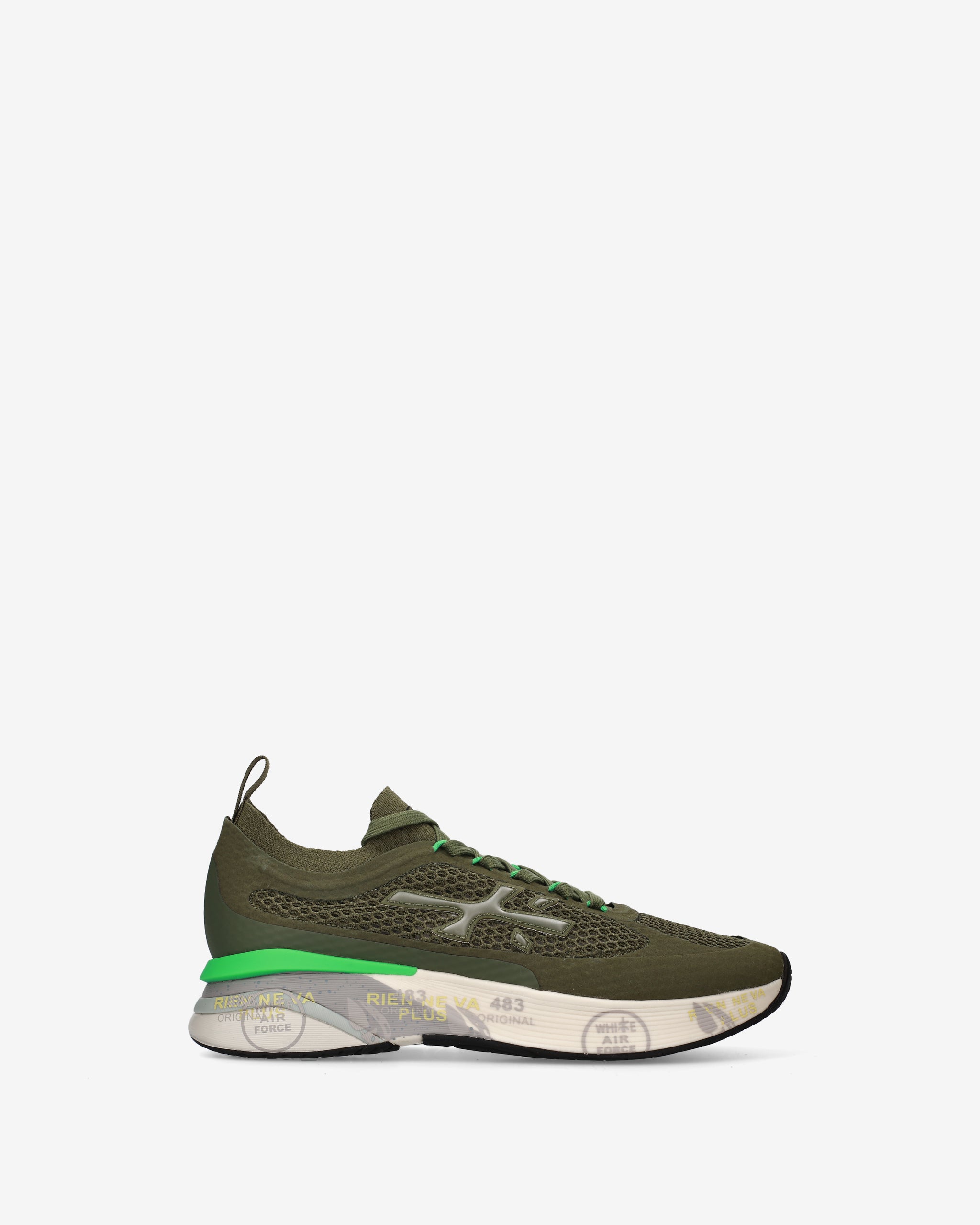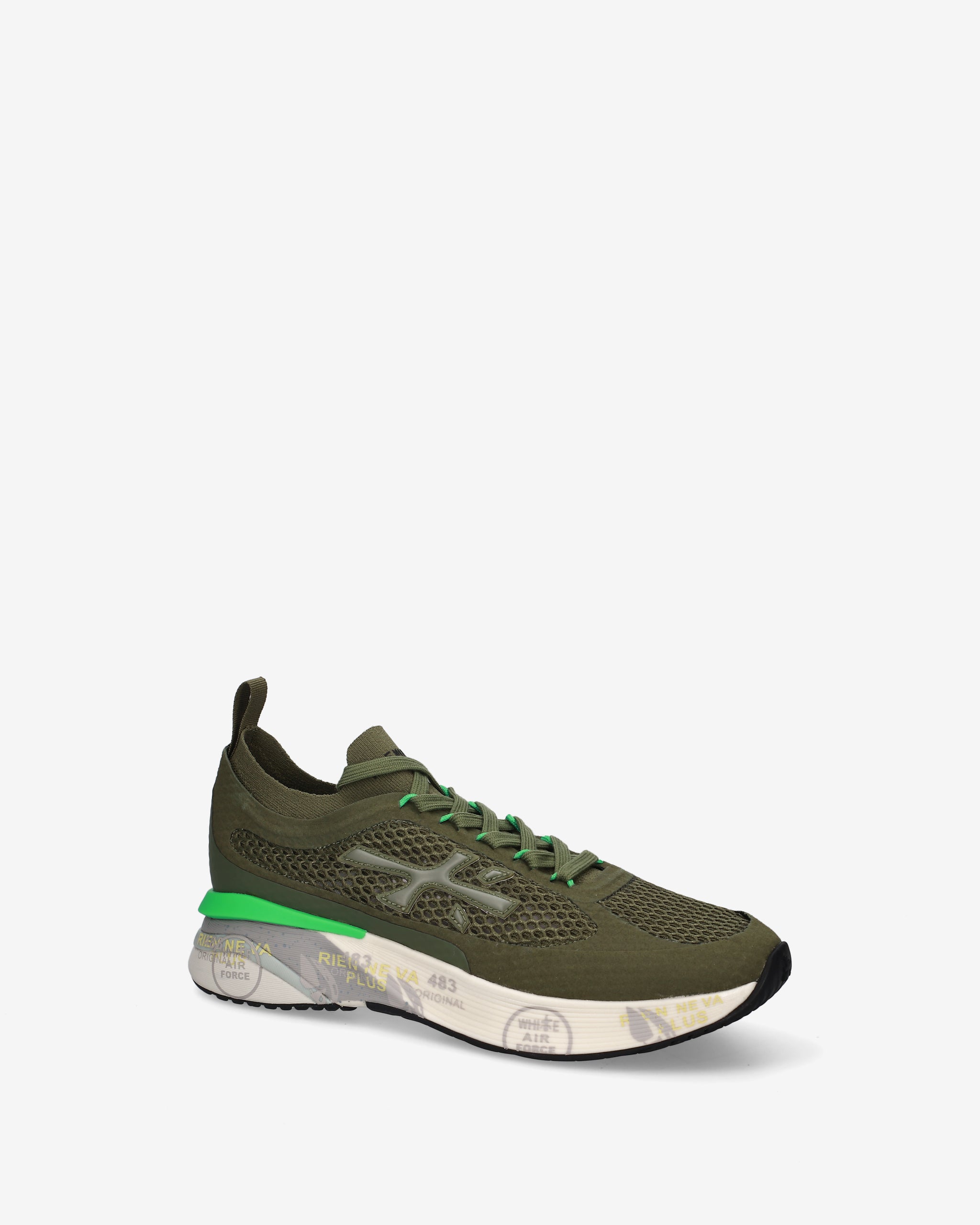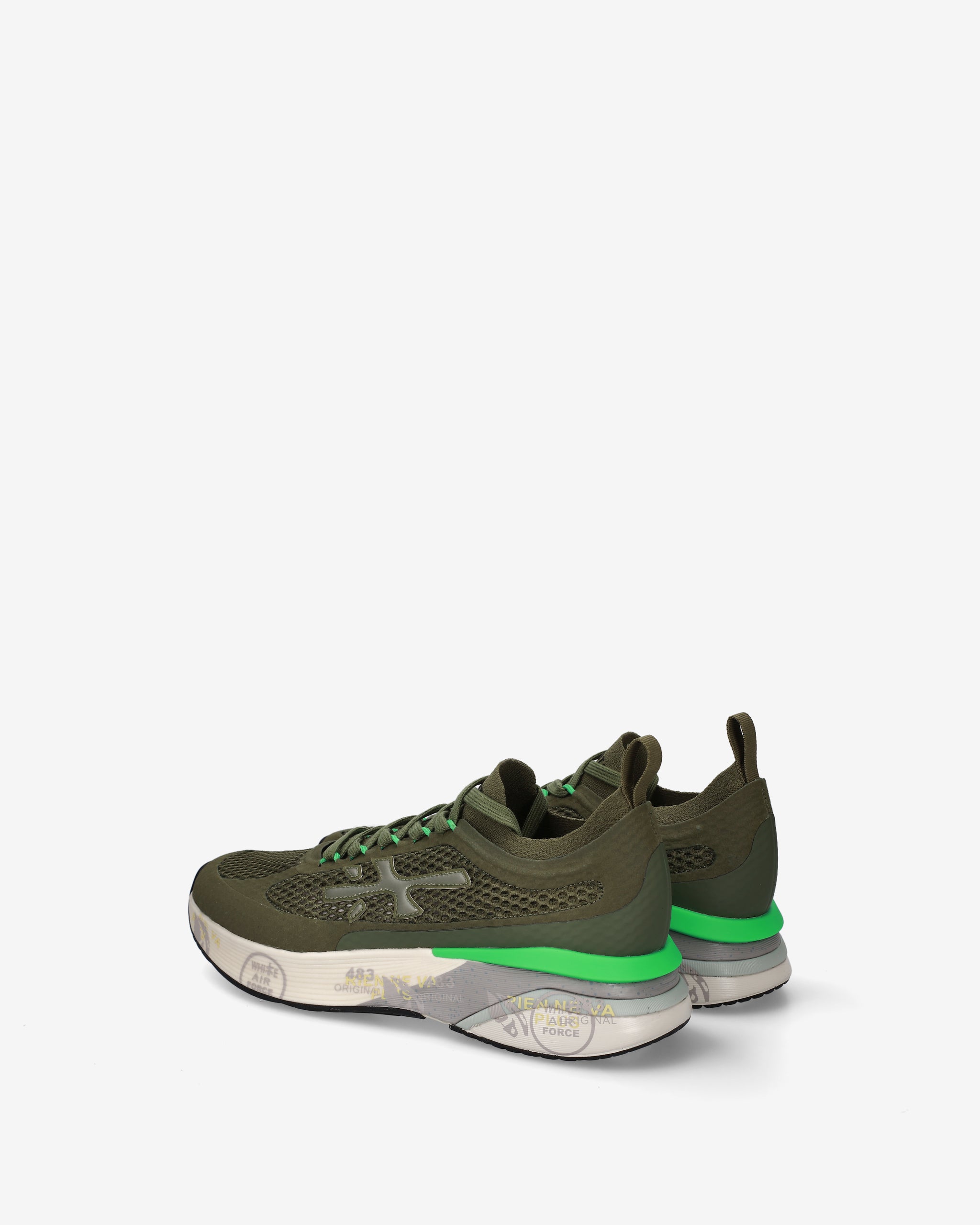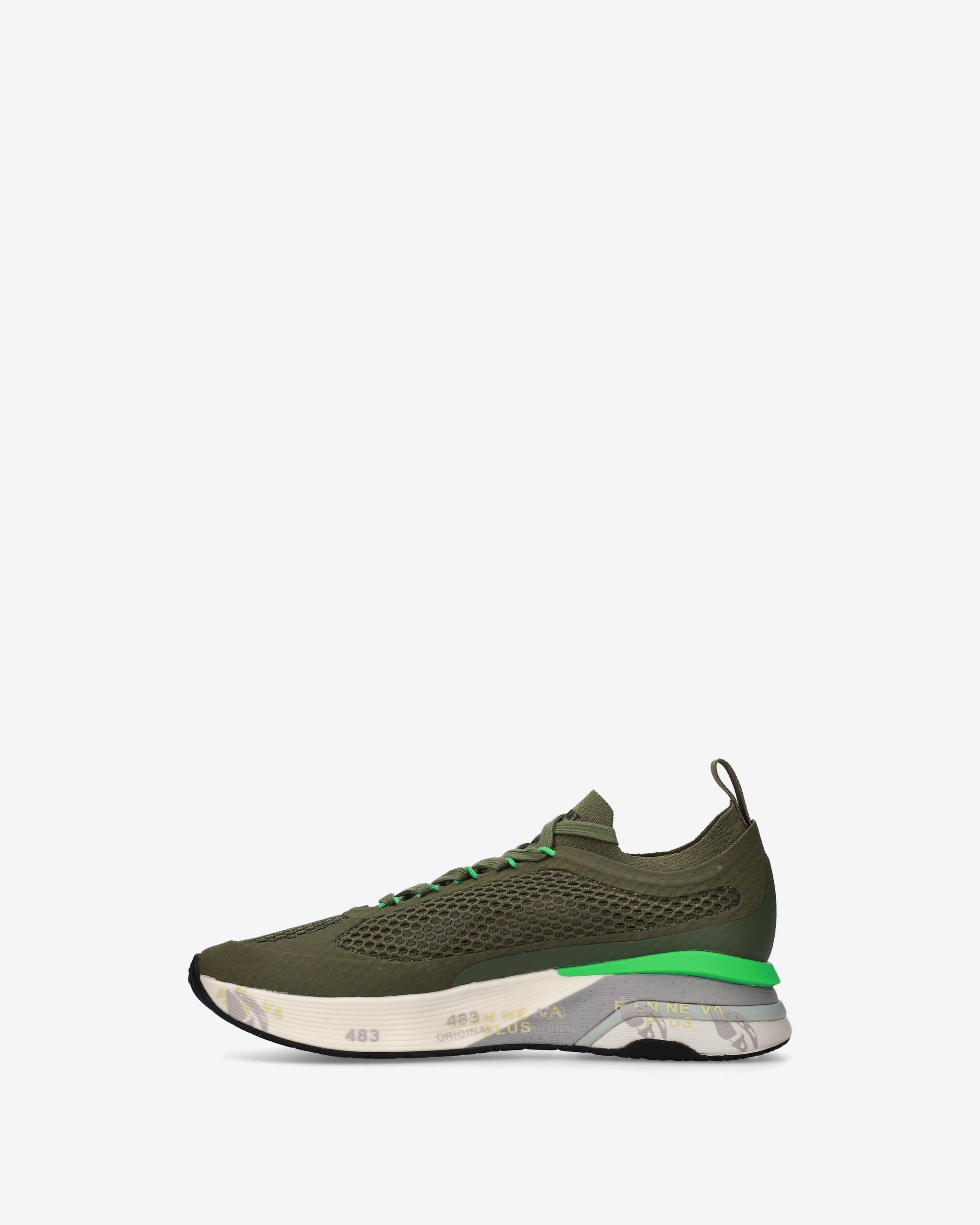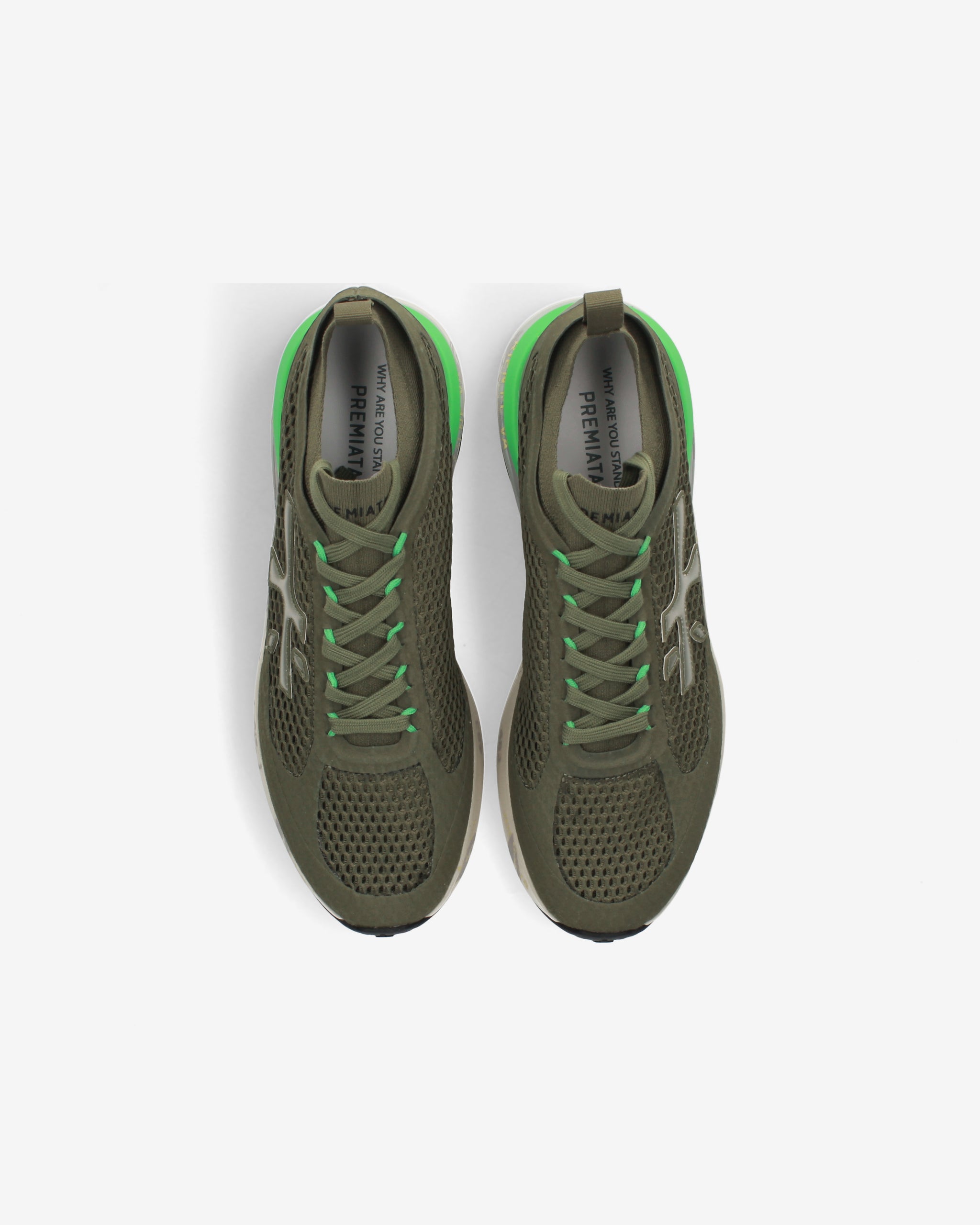 Ideate per stupire. La Moerun si basa sulla leggerezza del movimento, la stabilità e la sensazione ammortizzante data dall'innovazione del fondo. La nuova silhouette è ricca di dettagli: logo sul laterale esterno, scritta PREMIATA sul laterale interno e nome del modello sull'etichetta.