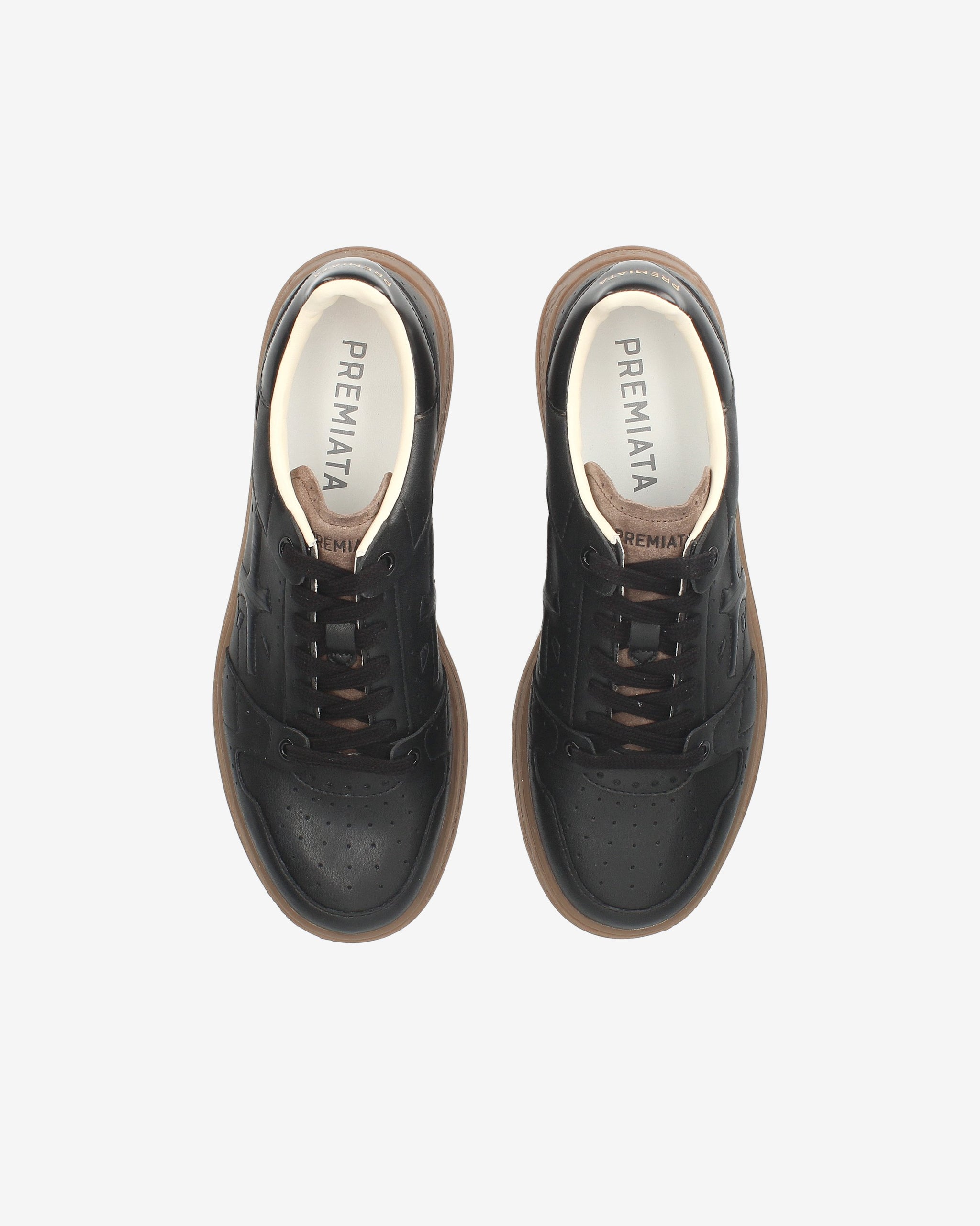 Creata per reinterpretare il mondo Sport in chiave couture, ricca di dettagli come, per esempio, i numerosi fori che ne caratterizzano il design. Fori che si ispirano alle lavorazioni “Brogue” del mondo classico in cui Premiata affonda le proprie radici.