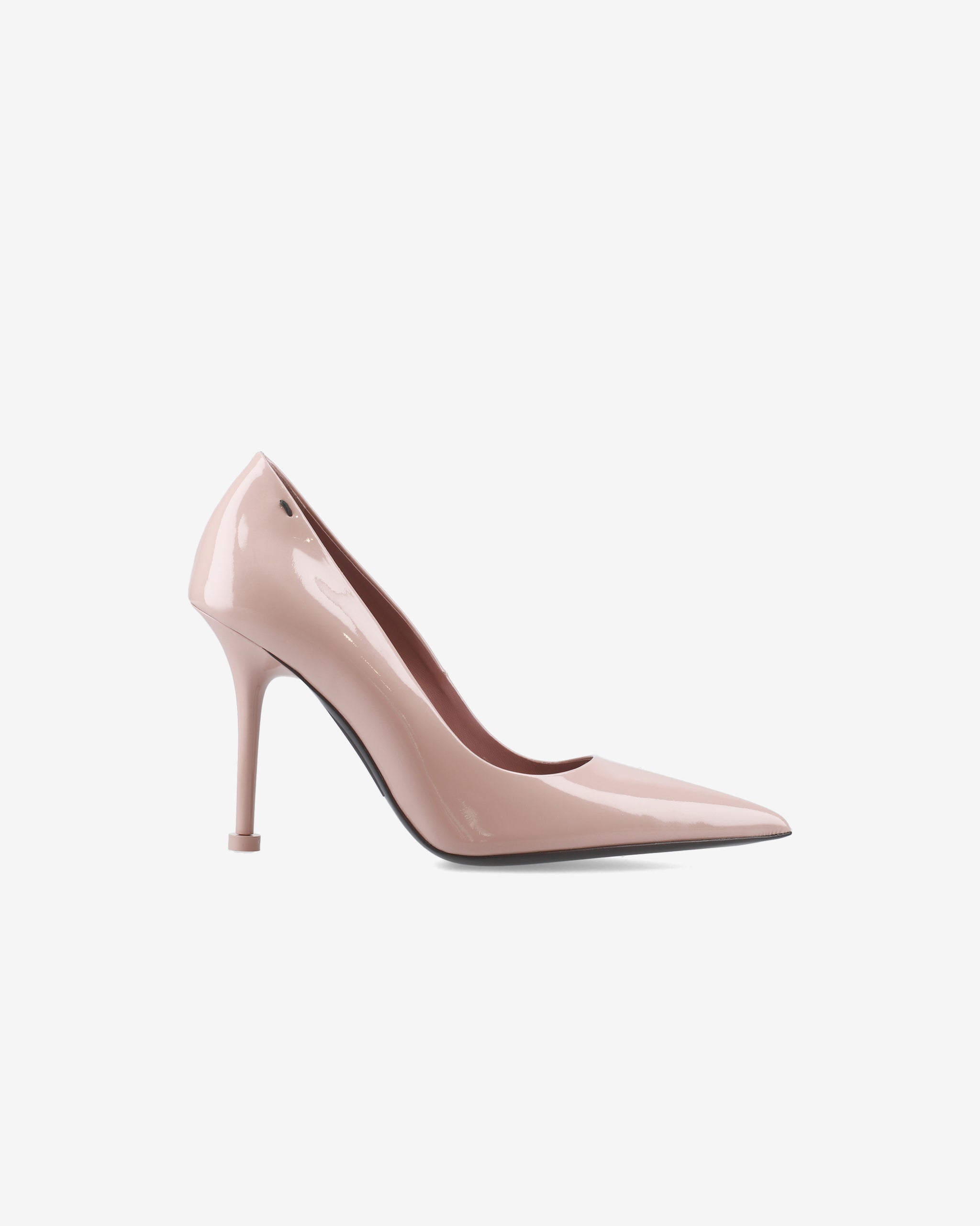 Un'eleganza senza tempo prende forma in questa décolleté in vernice dust, pensata per valorizzare ogni passo con grazia e raffinatezza. La silhouette affusolata e il tacco a spillo slanciano la figura, mentre la finitura lucida aggiunge un tocco di luce e modernità. Ideale per eventi formali o serate in cui distinguersi con stile.