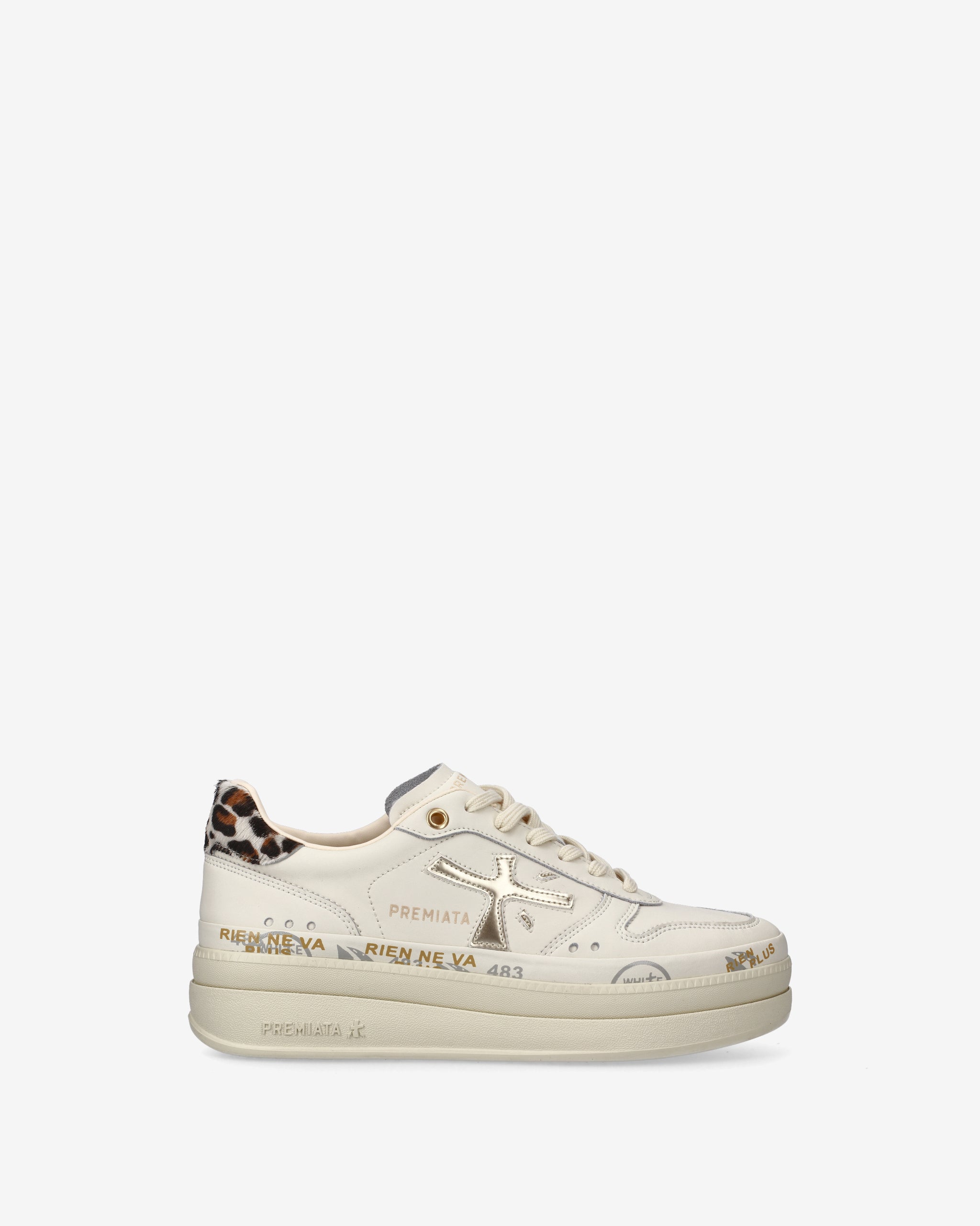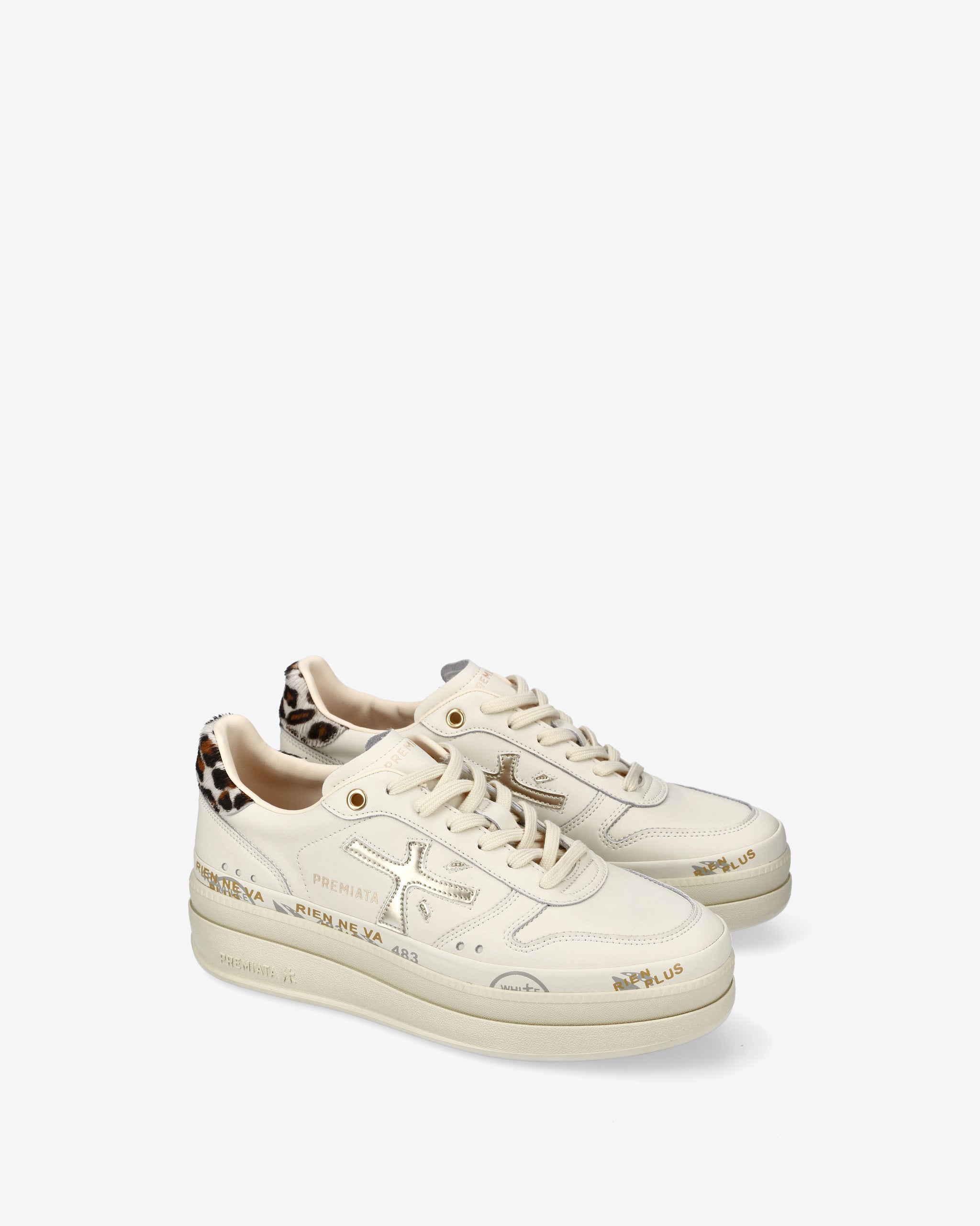 Tra i nuovi must have di Premiata. Lo stile raggiunge nuove vette, unendo design come la suola platform doppio strato con un’intersuola impreziosita dagli iconici timbri del brand.