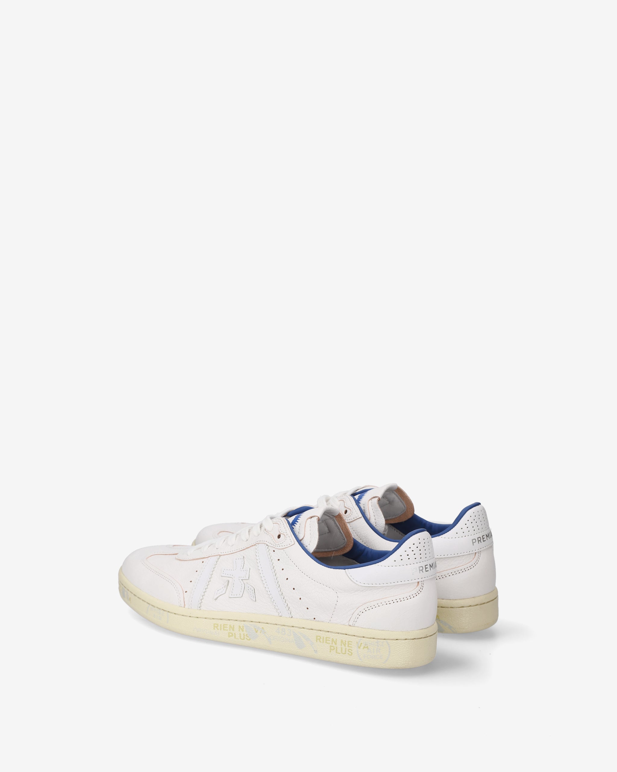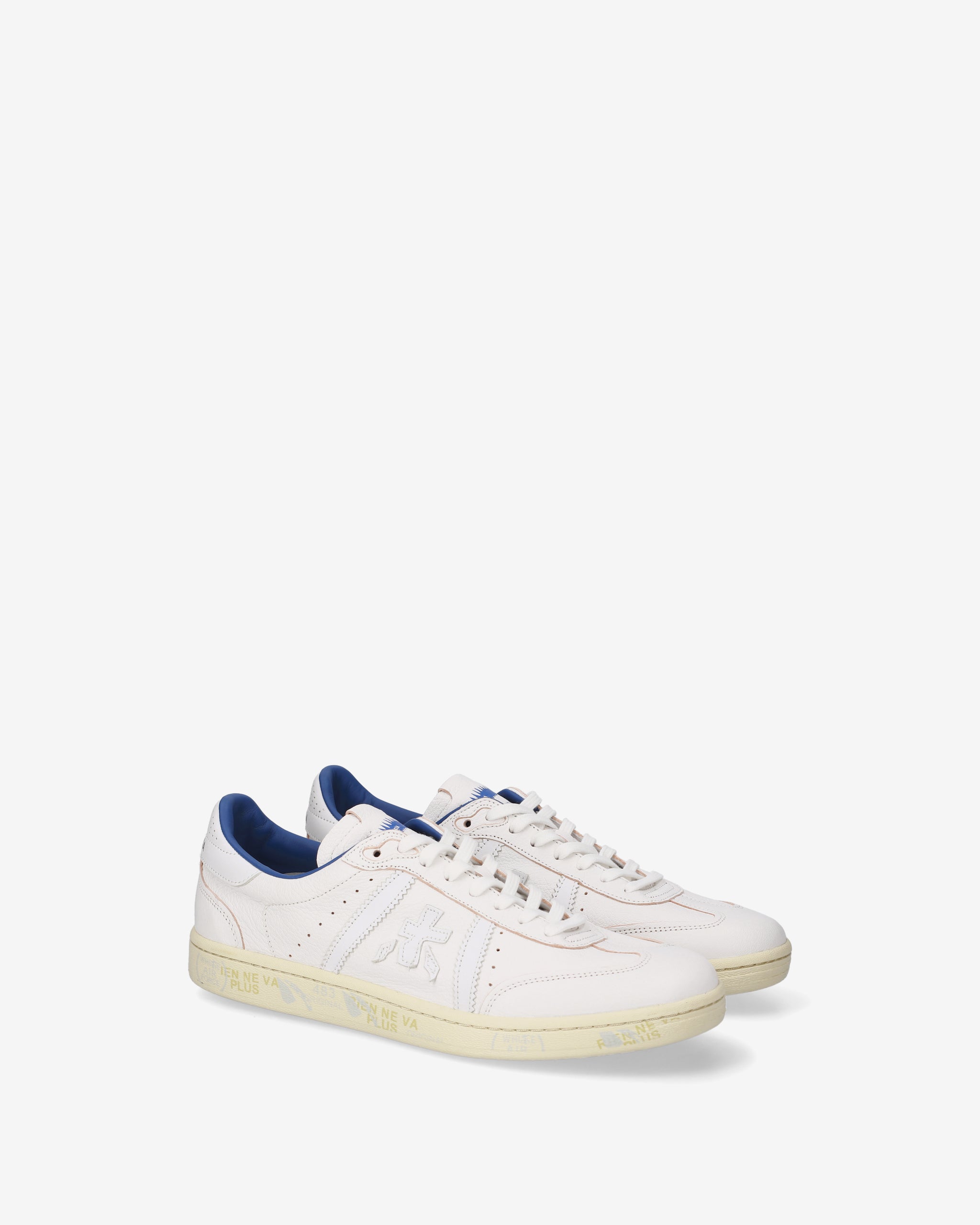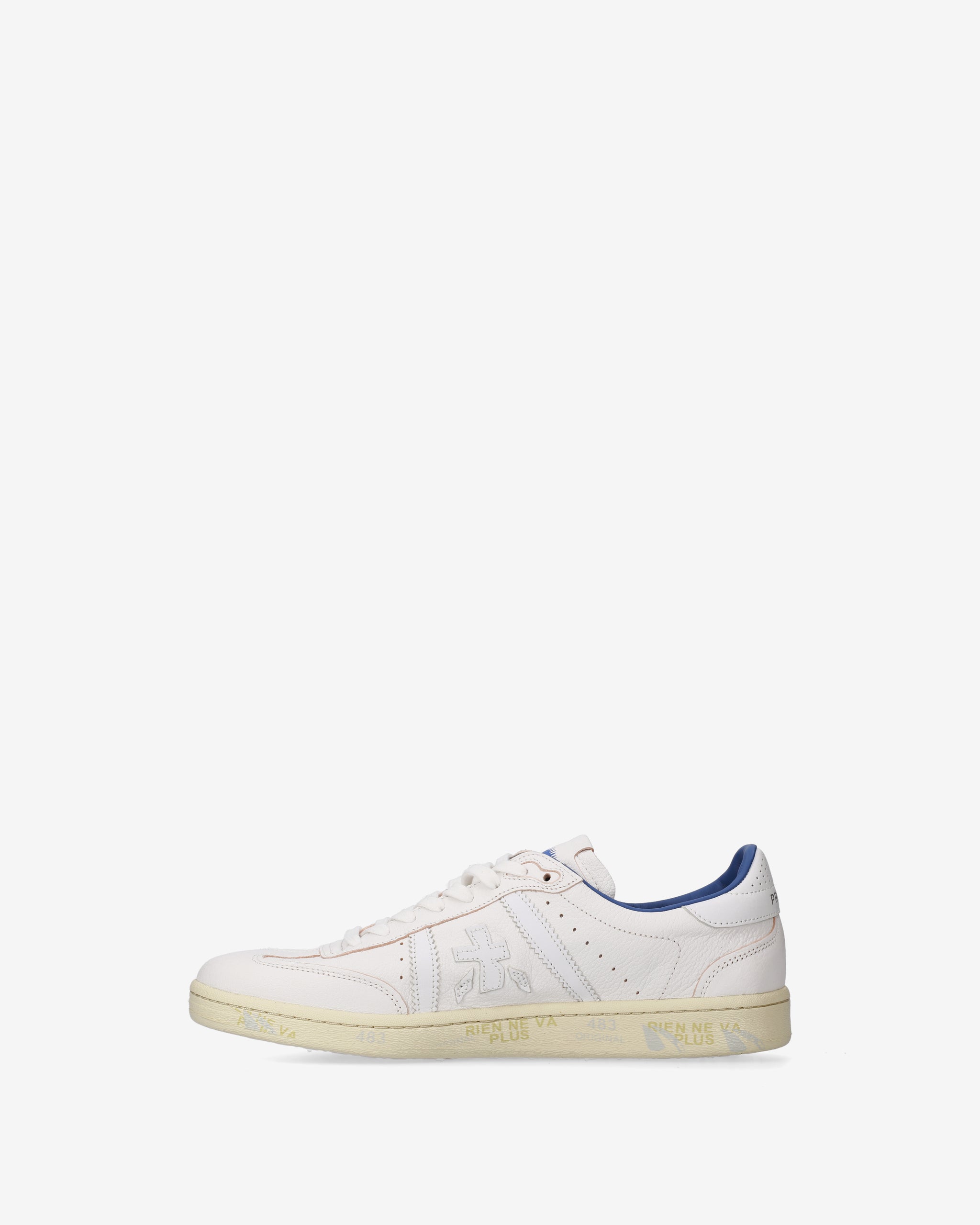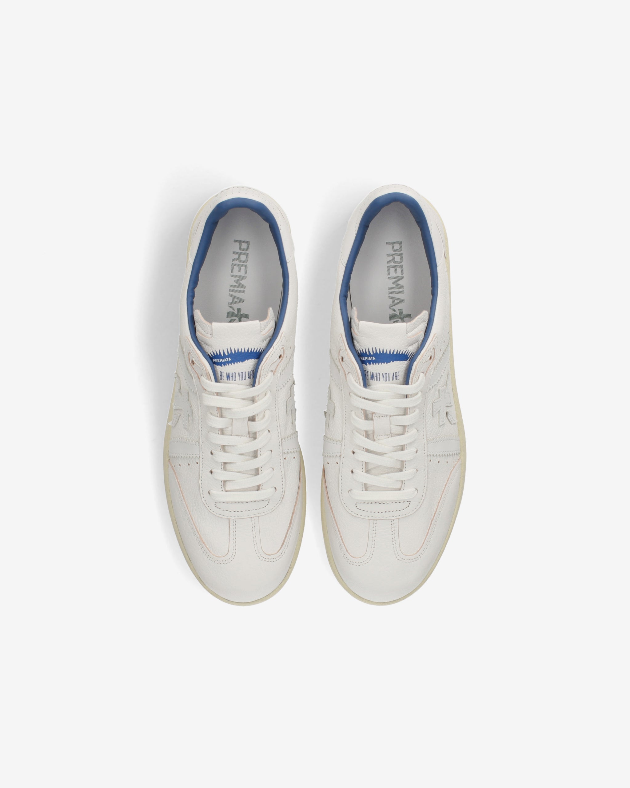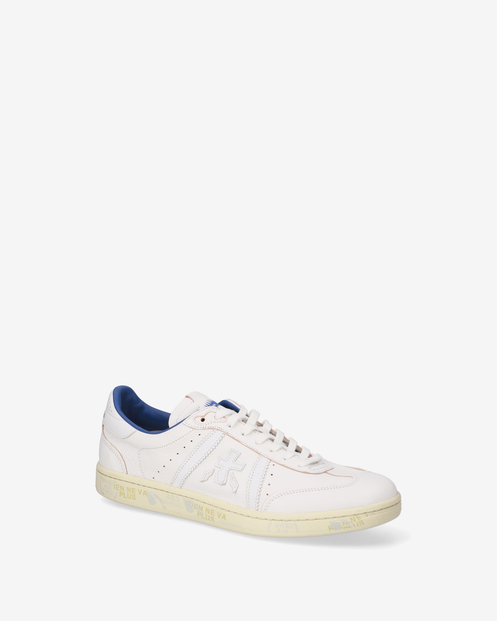 Bonnie bianca e suola off white con fodera blu a contrasto. Una sneaker bianca per un’estetica pulita e sofisticata.