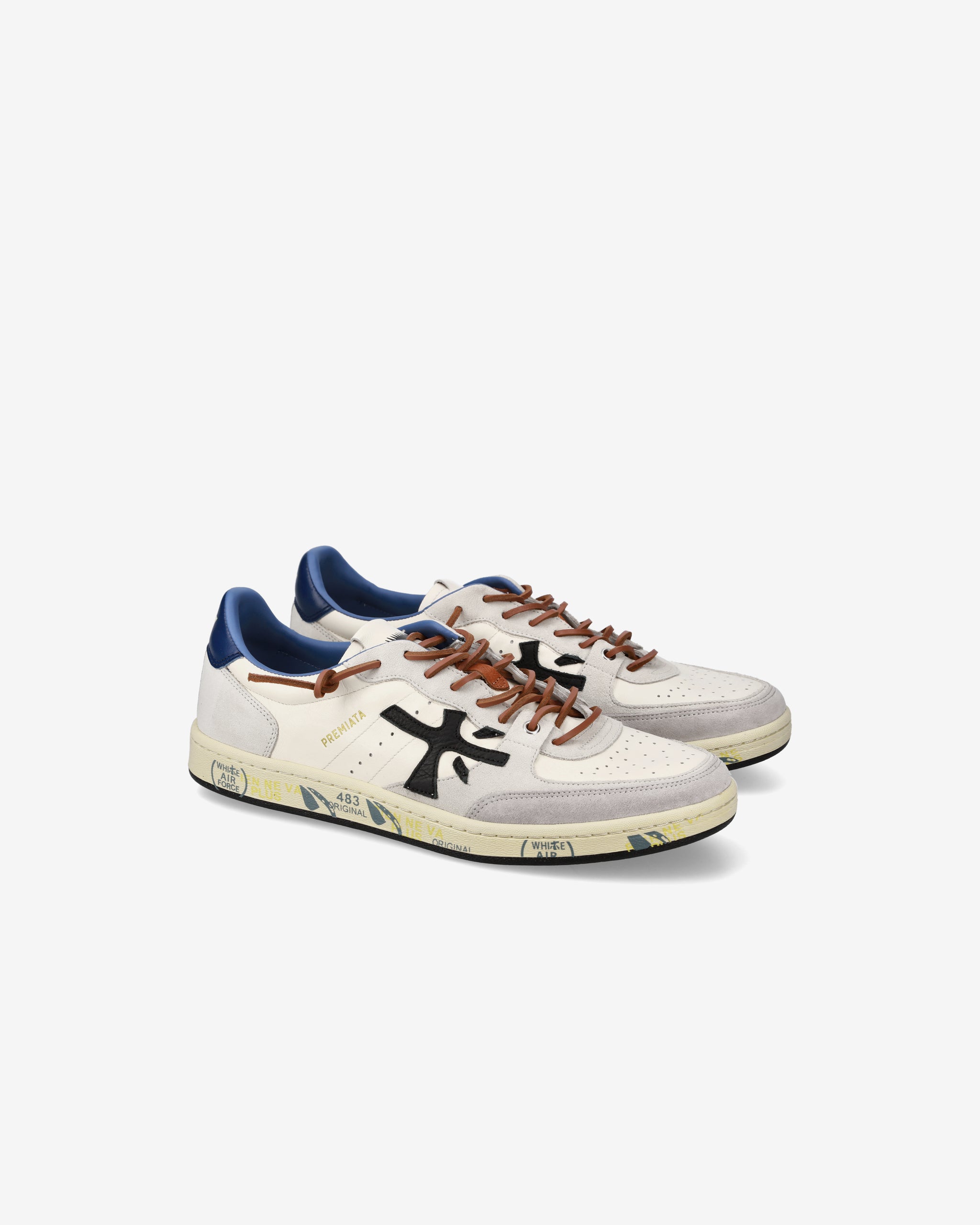 Estetica vintage e spirito contemporaneo. Questa sneaker combina linee essenziali e dettagli decisi, come il logo laterale oversize e la suola personalizzata Premiata. Un modello pensato per chi vuole distinguersi, senza rinunciare alla versatilità quotidiana.