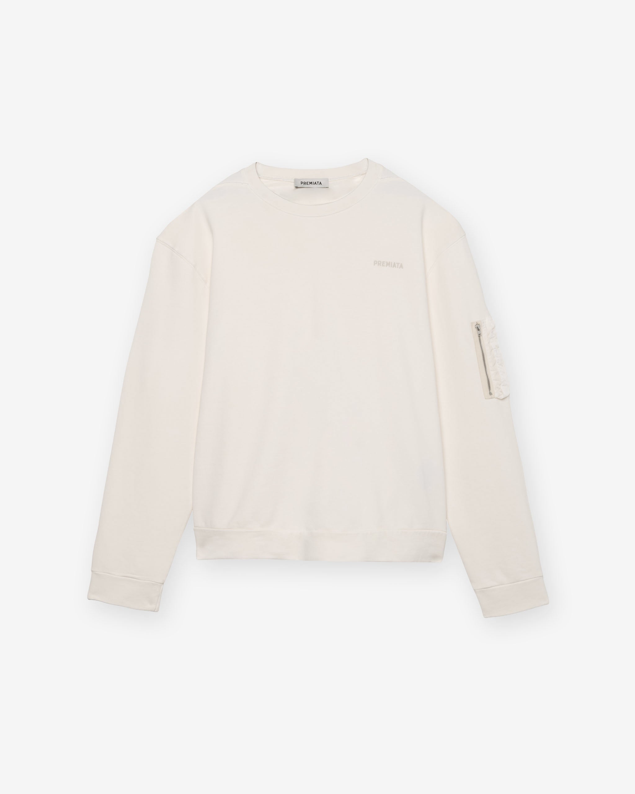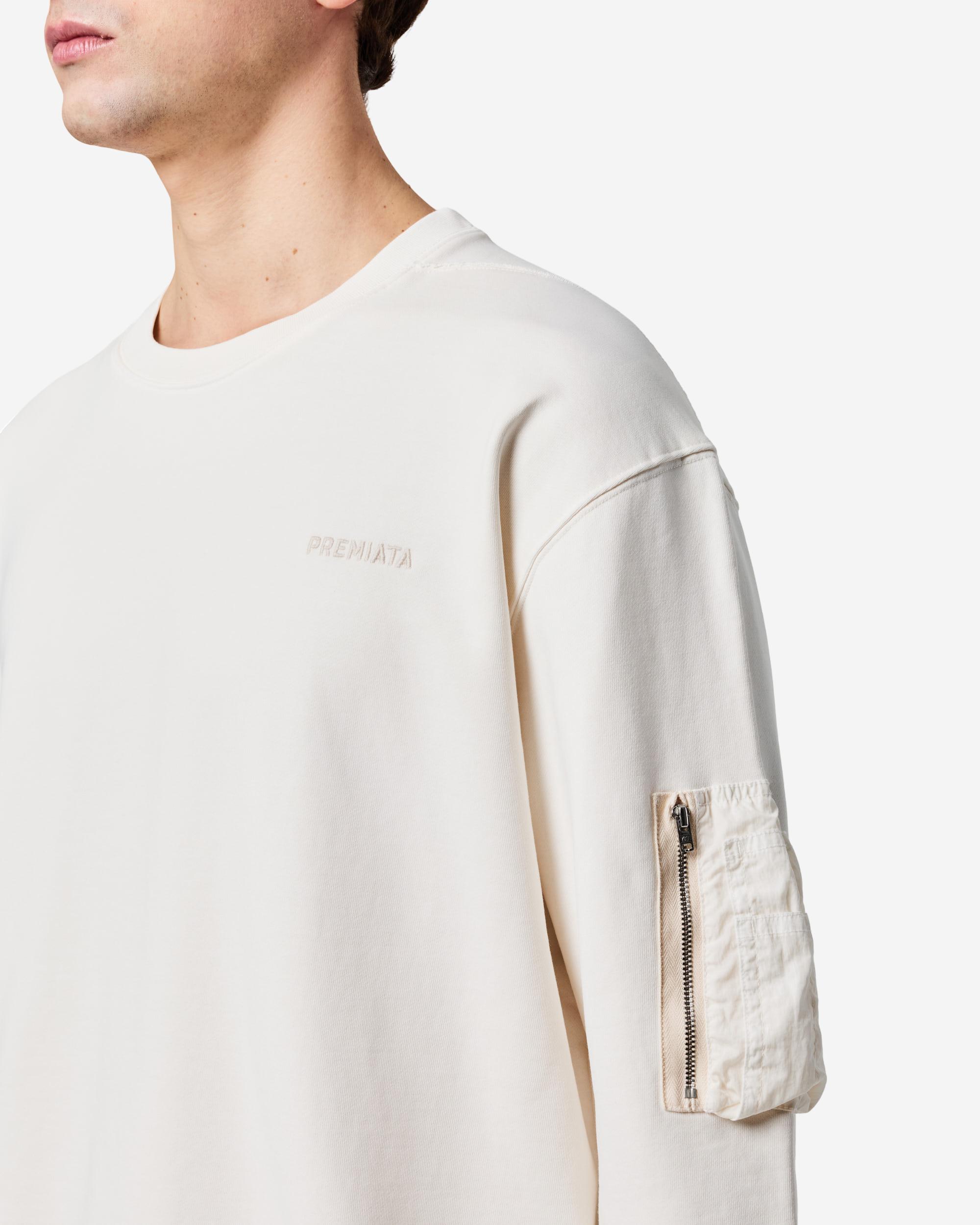 • Taschino stile "bomber" con zip in nylon applicato sul braccio sinistro