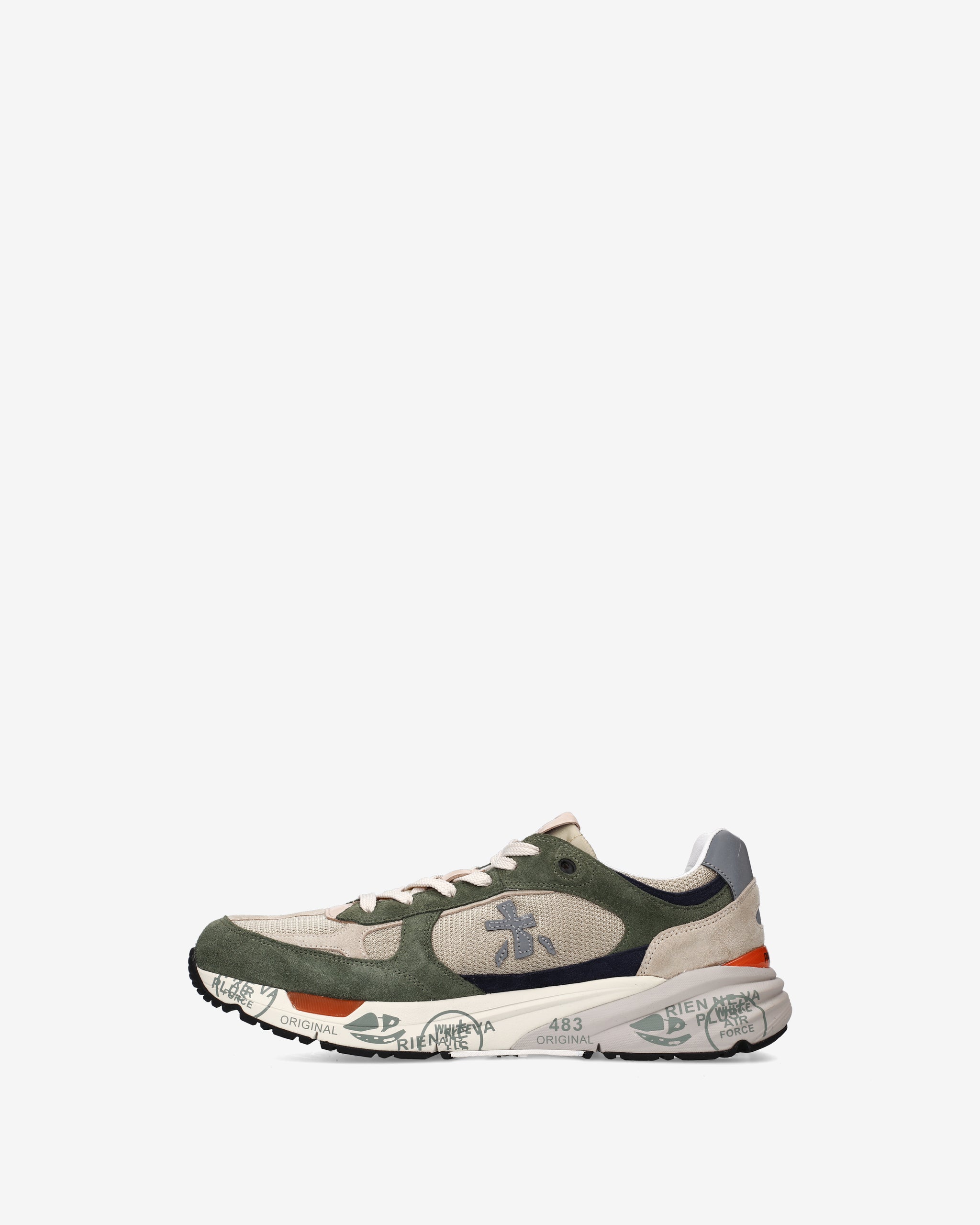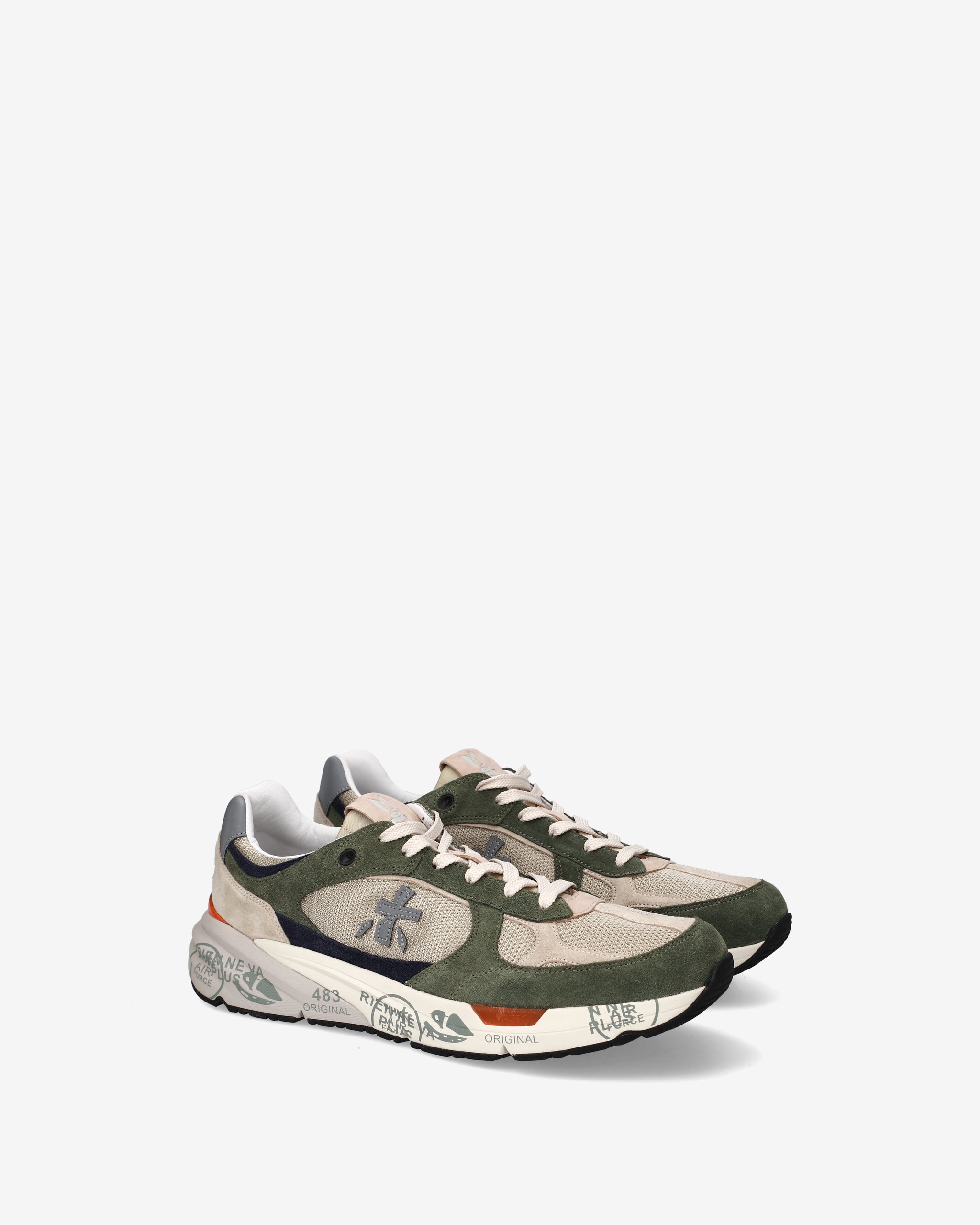 Risentono del mood nineties, combinano una silhouette moderna con materiali pregiati e dettagli vivaci. Fedeli al design Premiata, ne conservano tutti gli elementi chiave: il logo che decora i laterali, la scritta MASE che si evince sull’etichetta, trattamenti e dettagli a contrasto che ne risaltano la visibilità.