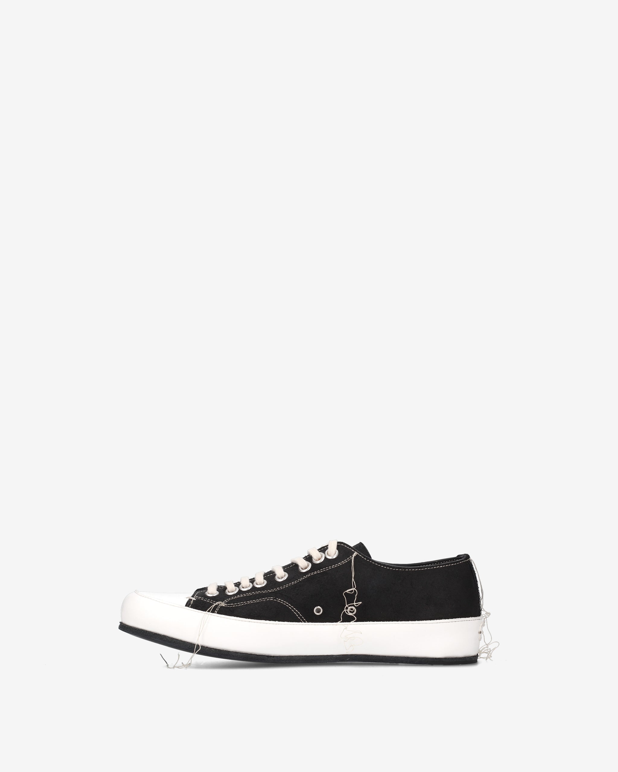 Una sneaker dal design avanguardista e deconstructed, che eleva il concetto di calzatura sportiva attraverso dettagli sartoriali unici. La finitura bi-cromatica bianca e nera ne esalta la struttura complessa e l'estetica urban-rebel