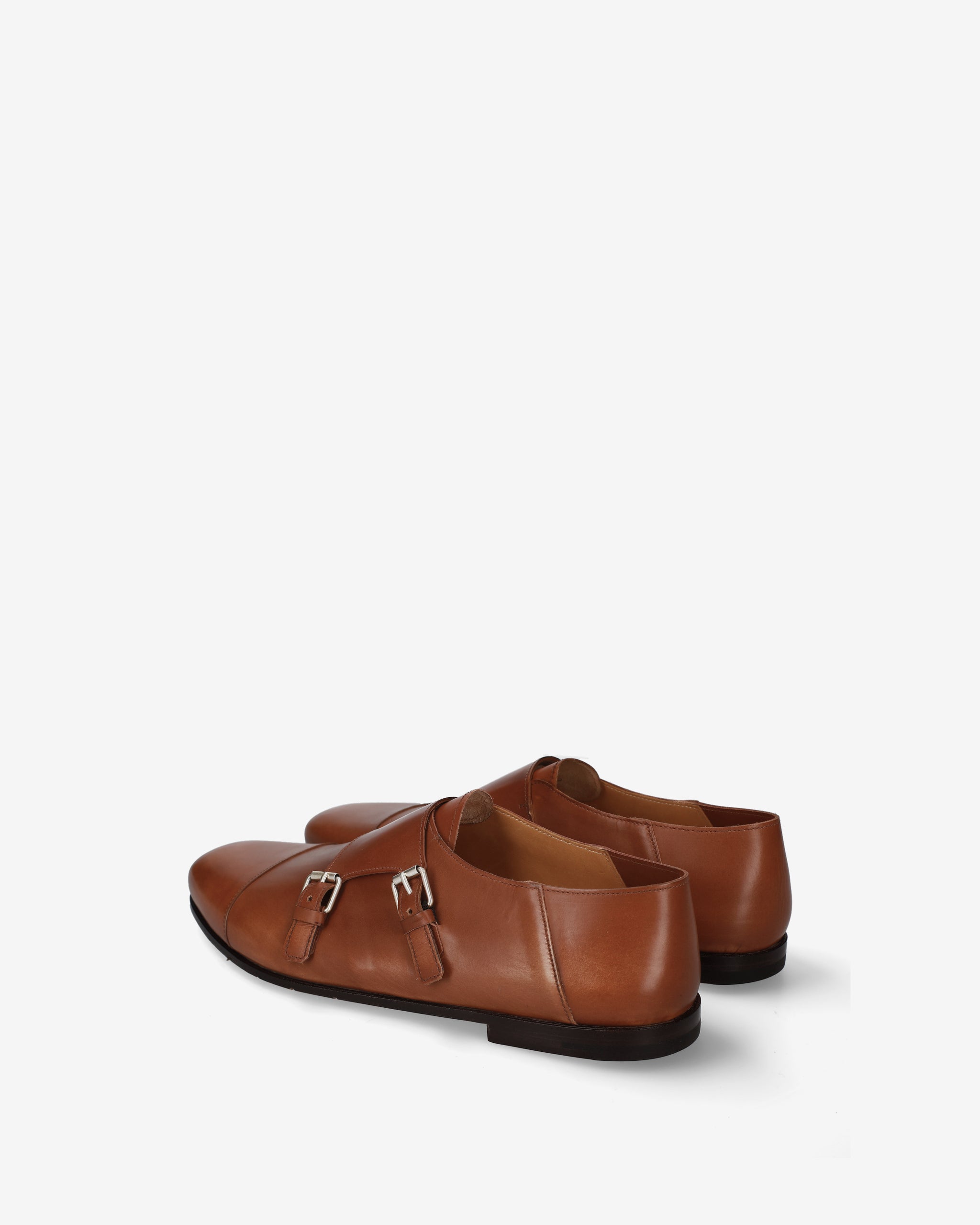 A refined take on the classic double-buckle shoe, featuring a sleek silhouette and a warm shade that highlights its fine craftsmanship