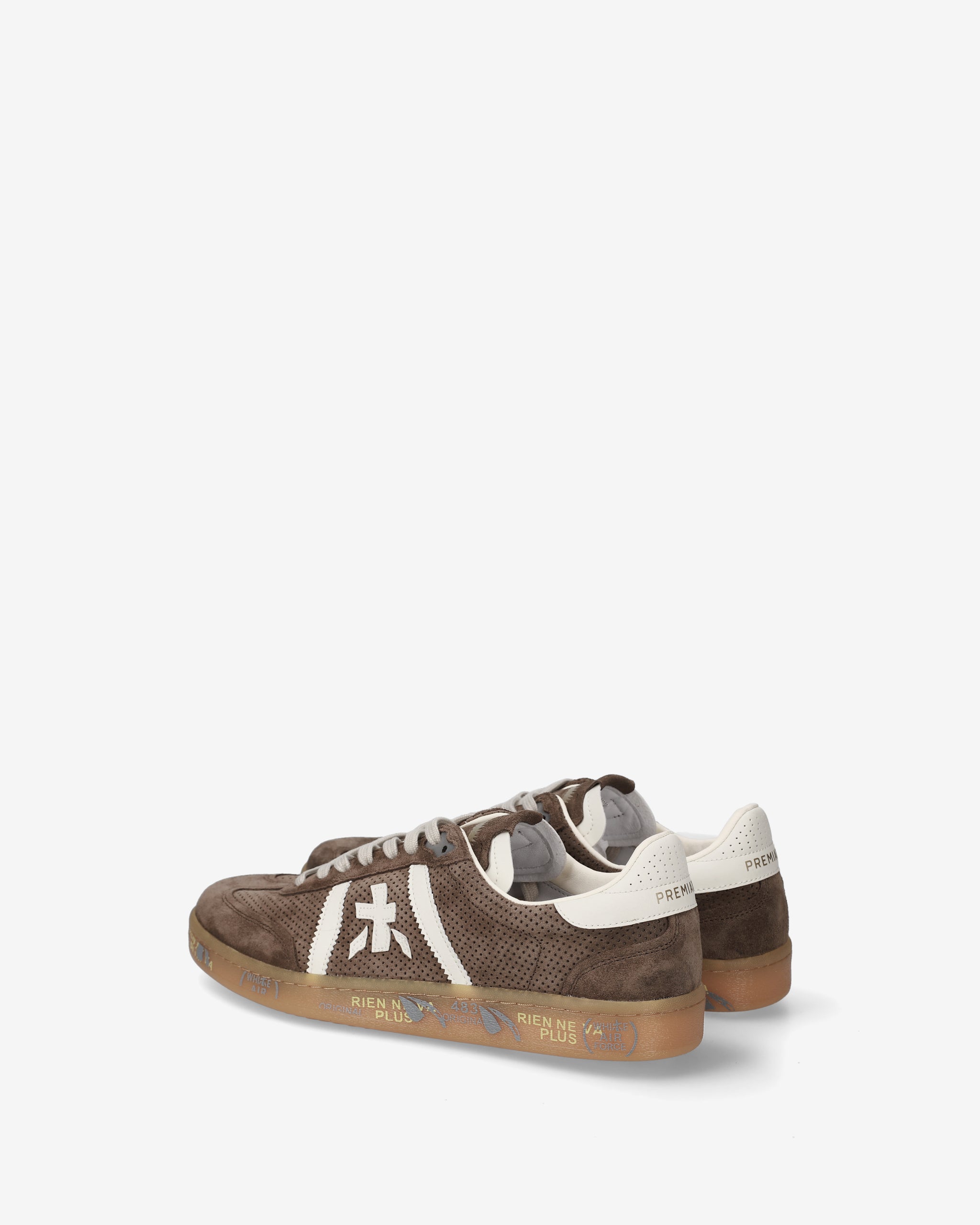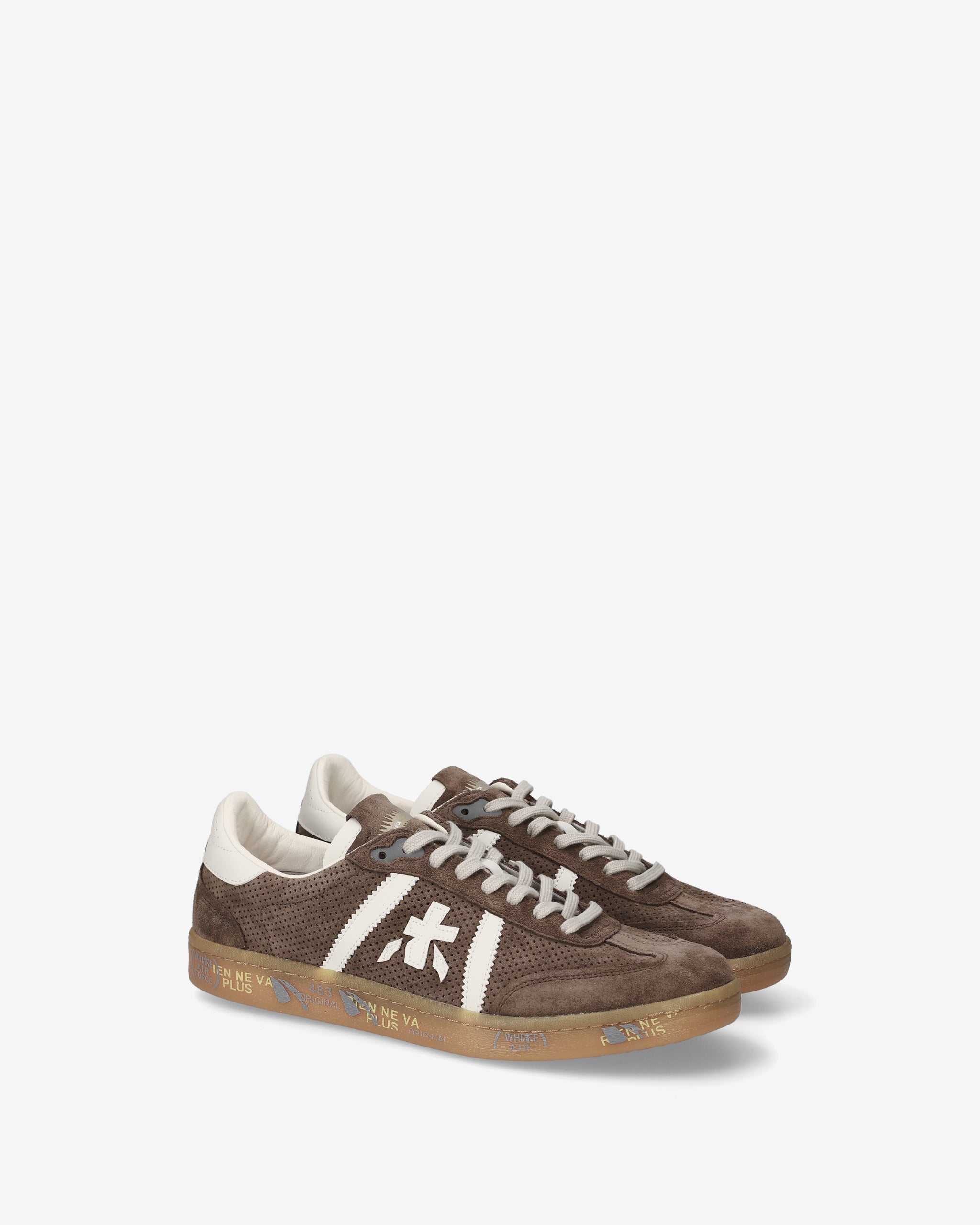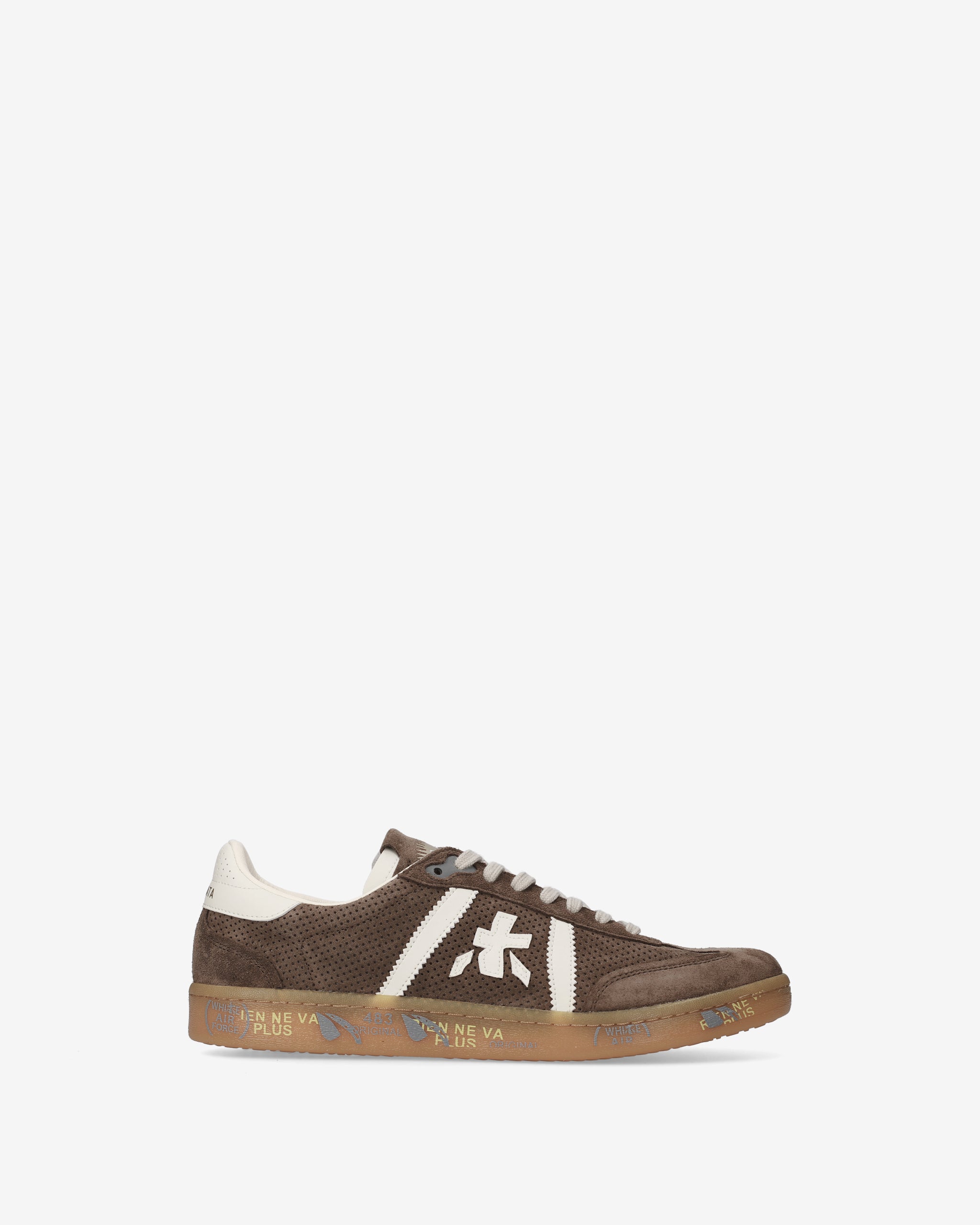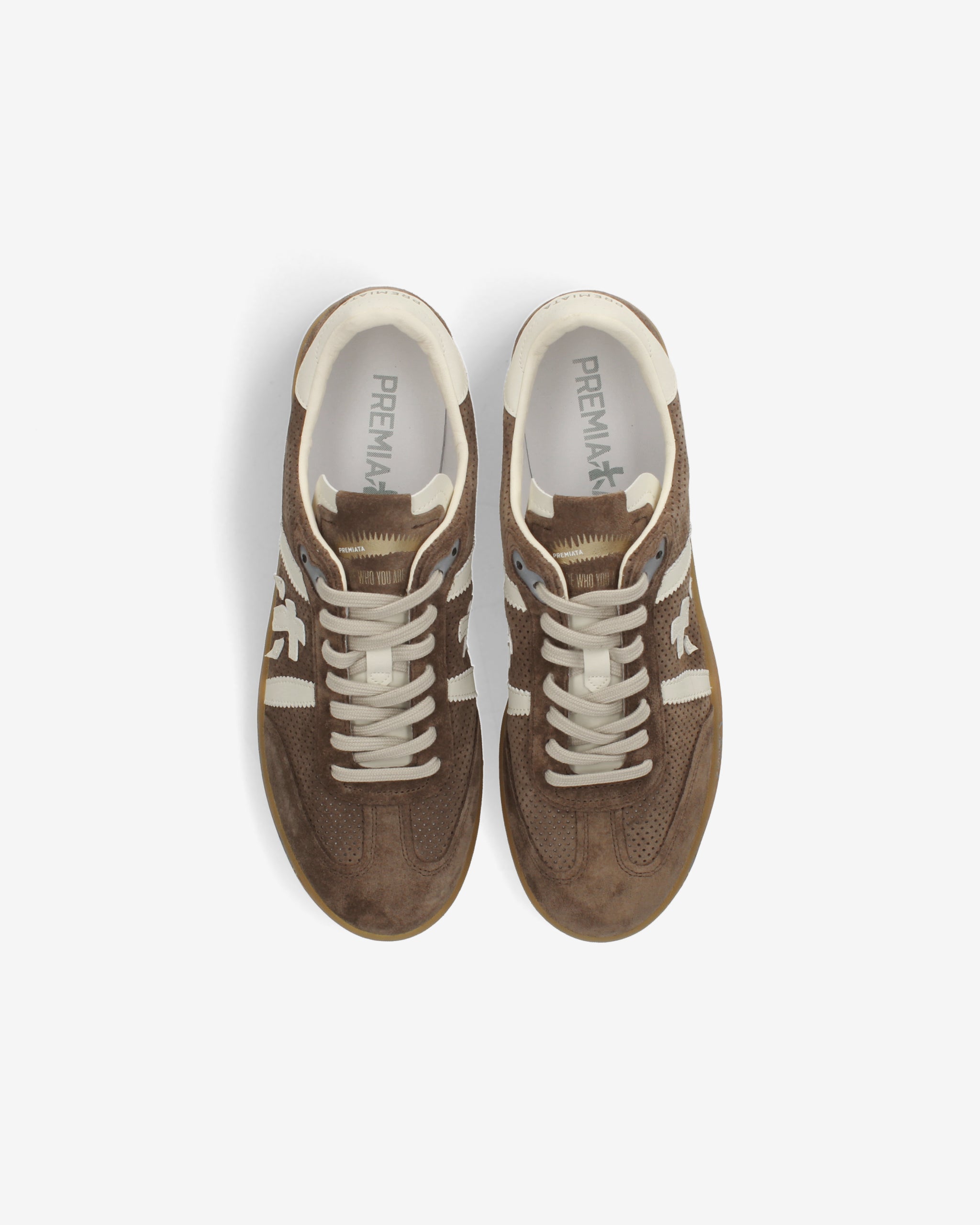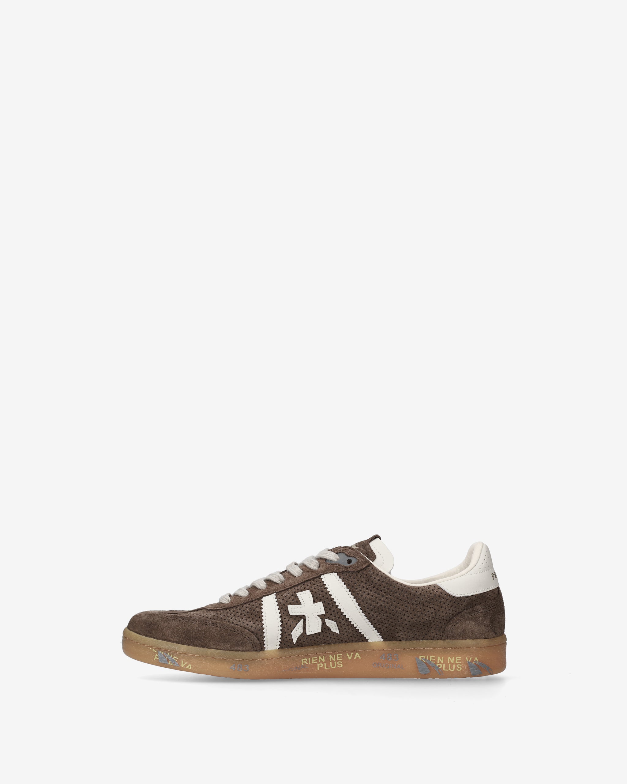 Bonnie features a brown suede upper, contrasting white details, and an off-white sole. A mix of classic colors for a clean, sophisticated look.
