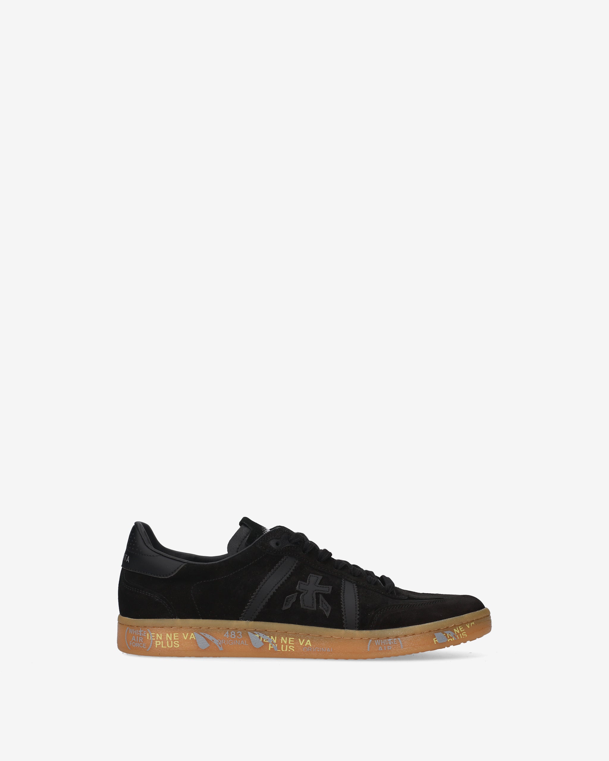 Bonnie with black suede upper, tone-on-tone black details, and gum sole. A mix of classic colors for a clean and sophisticated look.