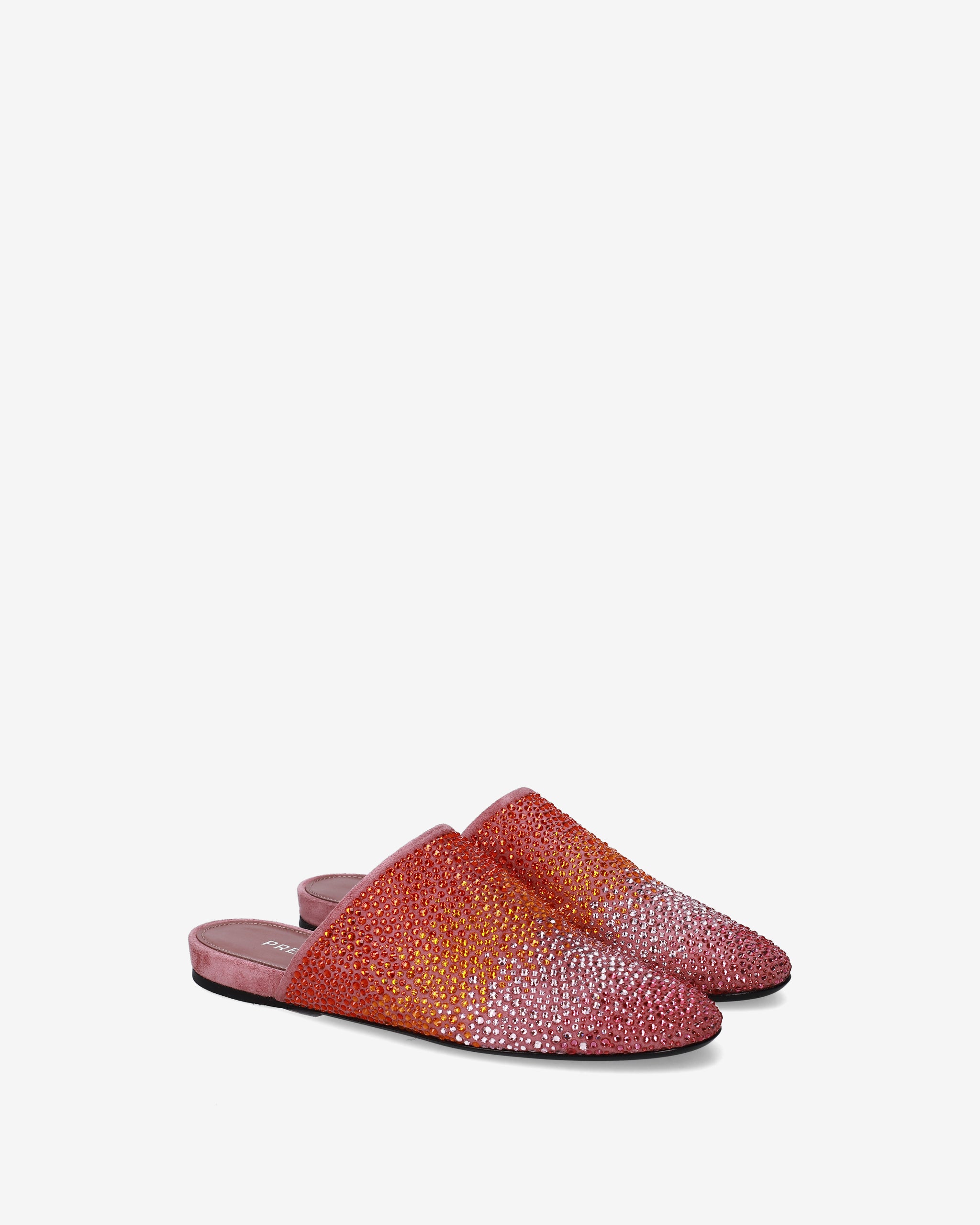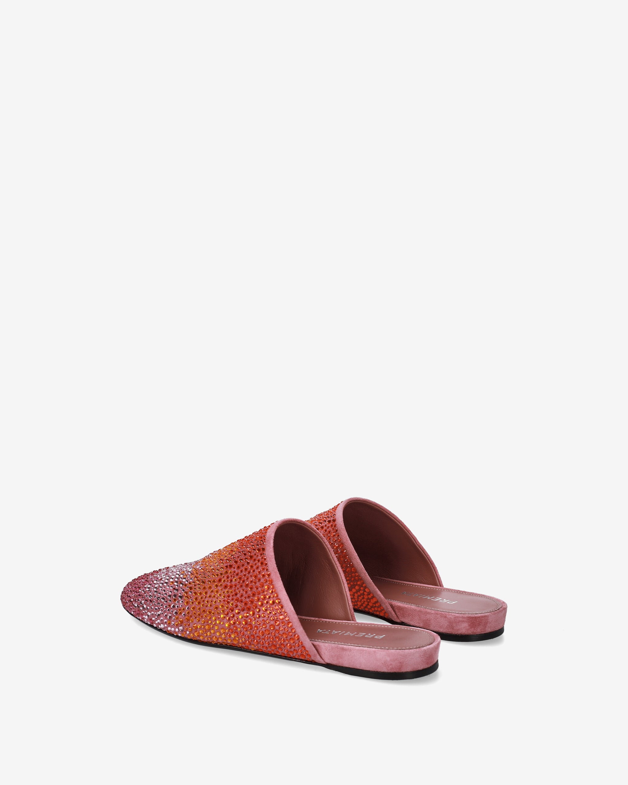 Leather clogs with pink gradient rhinestones